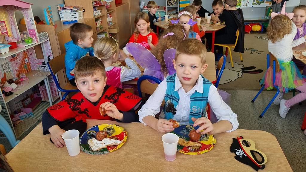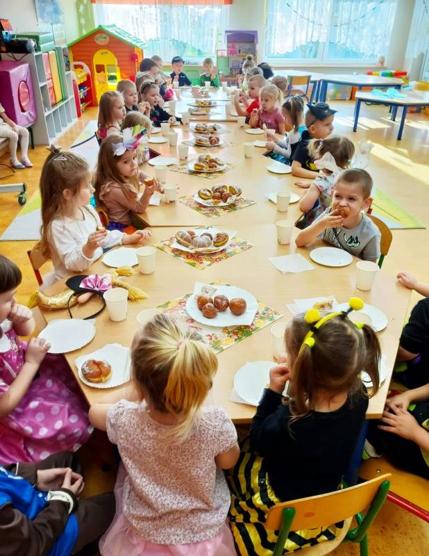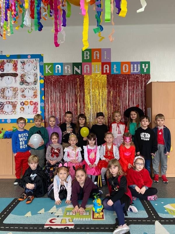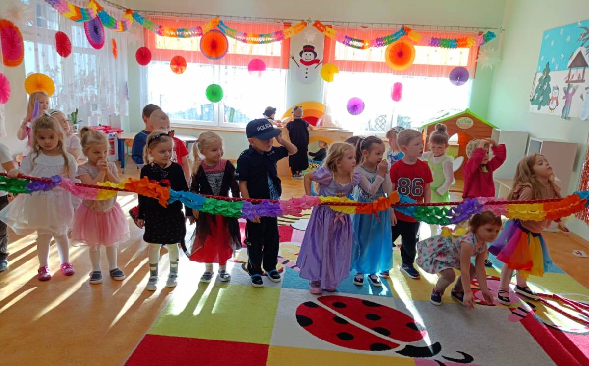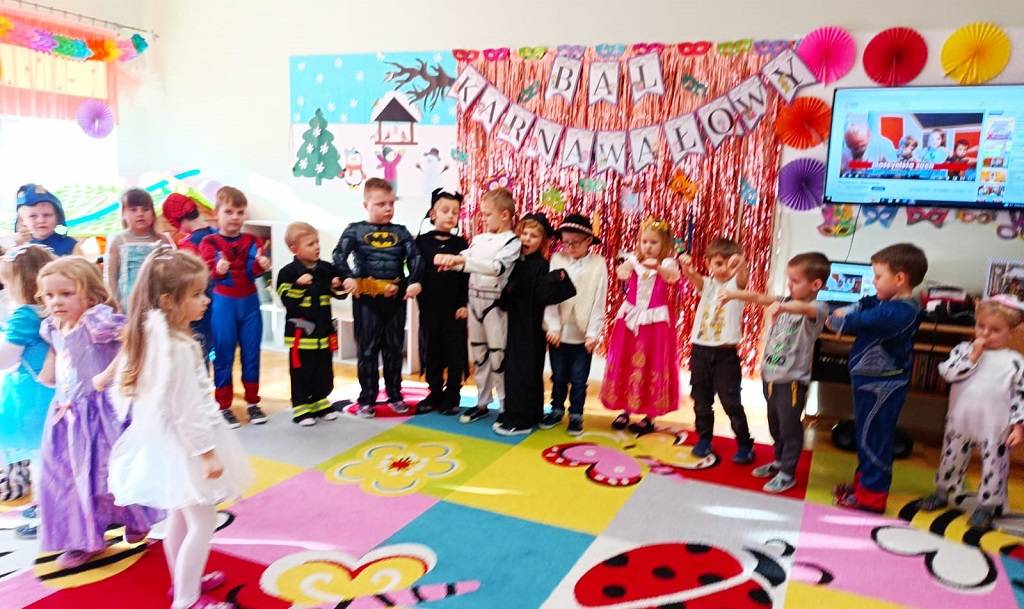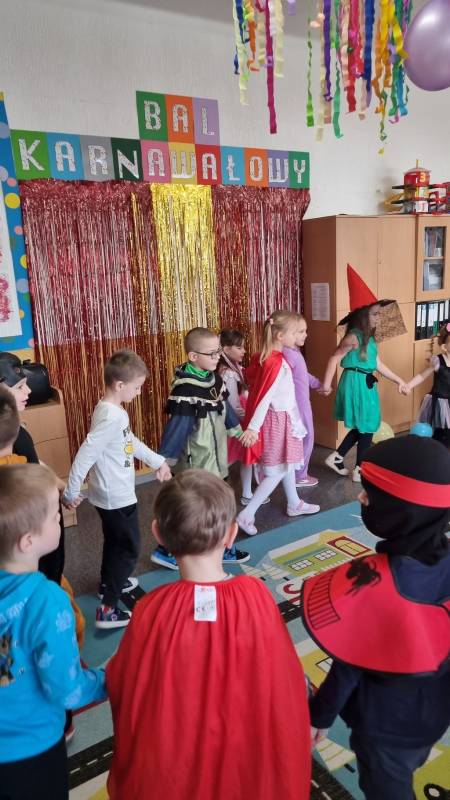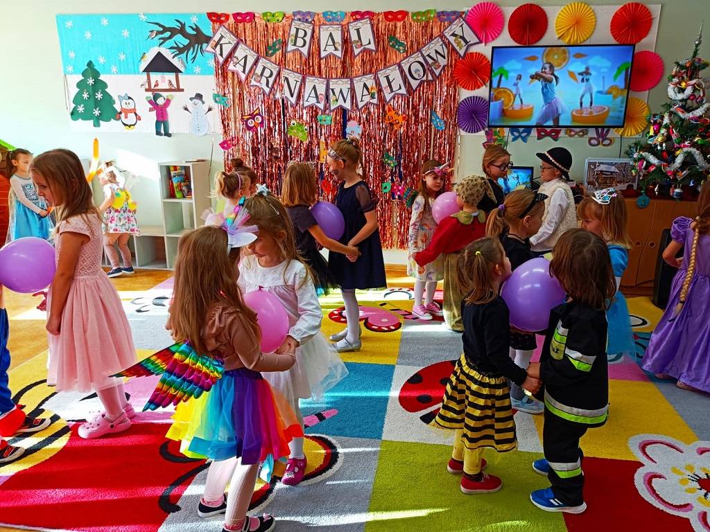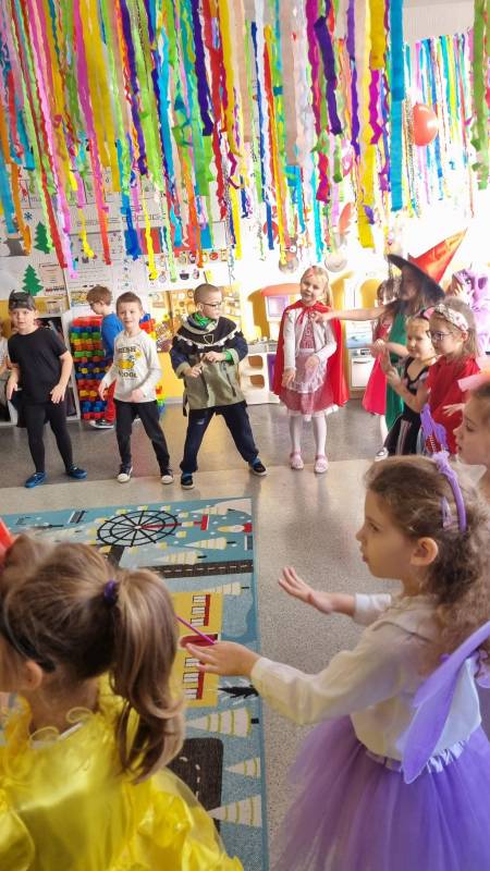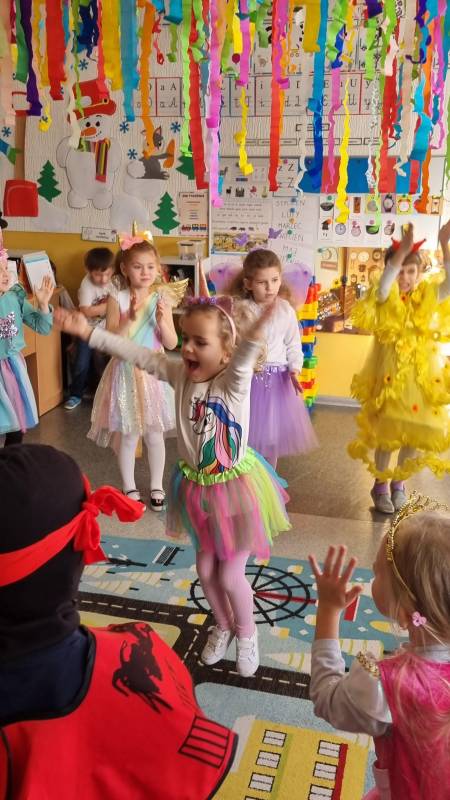 Bal Karnawałowy jest dla przedszkolaków niezwykłym wydarzeniem i wielką atrakcją bardzo lubianą przez dzieci. Zawsze dostarcza wszystkim wiele radości, przyjemności i niezapomnianych chwil, które na długo pozostają w ich pamięci. W naszym przedszkolu bal odbył się w dniu 11.01.2023r. Tego dnia już od rana pojawiały się w salach kolorowe postacie. Dzieci mogły być super bohaterami, wróżkami, księżniczkami lub tym kim sobie wymarzyły. W radosny nastrój wprowadził wszystkich kolorowy wystrój sal. Wesołą zabawę przy muzyce uatrakcyjniły liczne zabawy i konkursy, nie zabrakło również słodkiego poczęstunku. Bal umożliwił dzieciom spędzenie czasu w miłej atmosferze, a wspólna zabawa przyniosła wszystkim wiele radości.