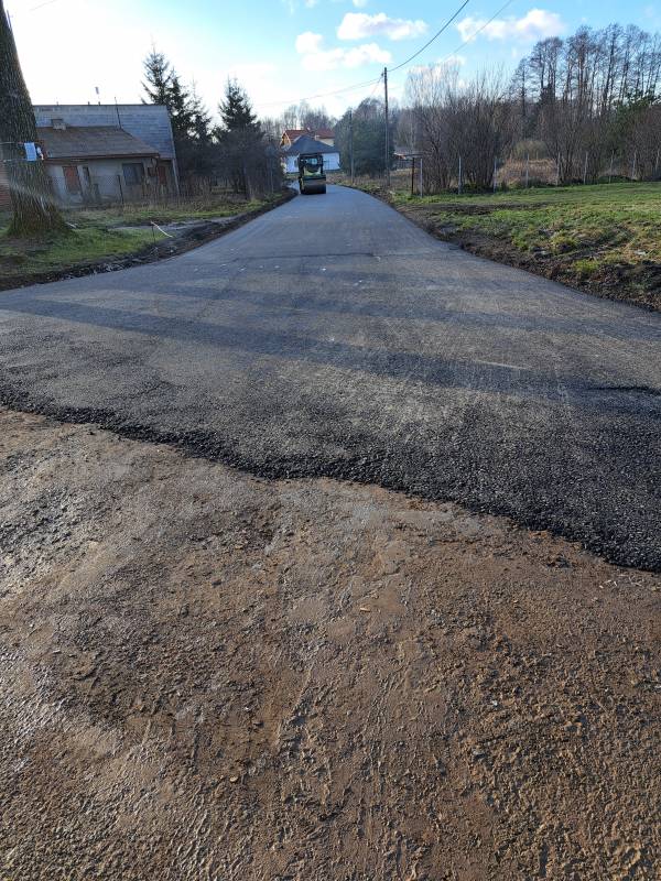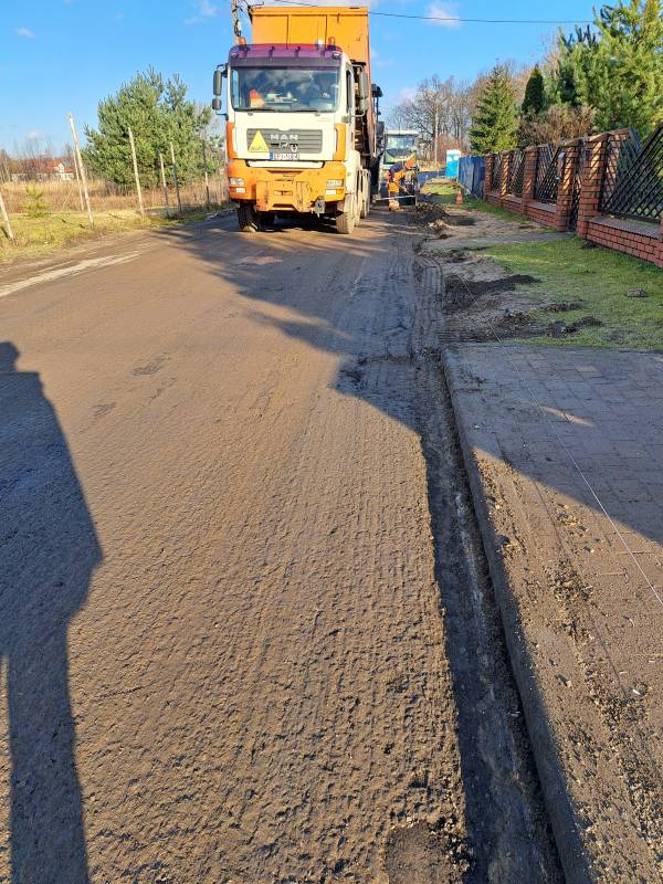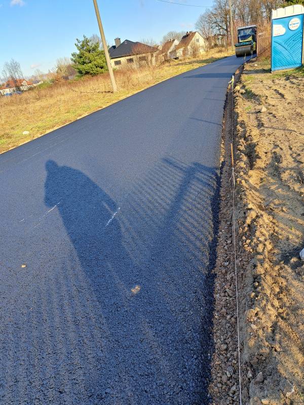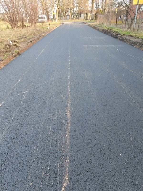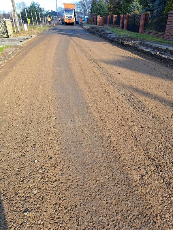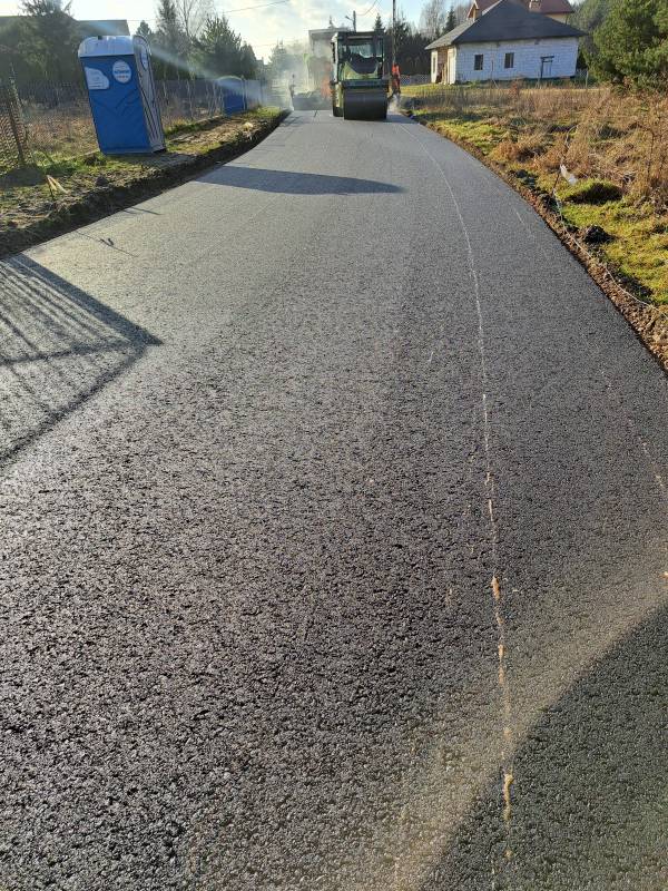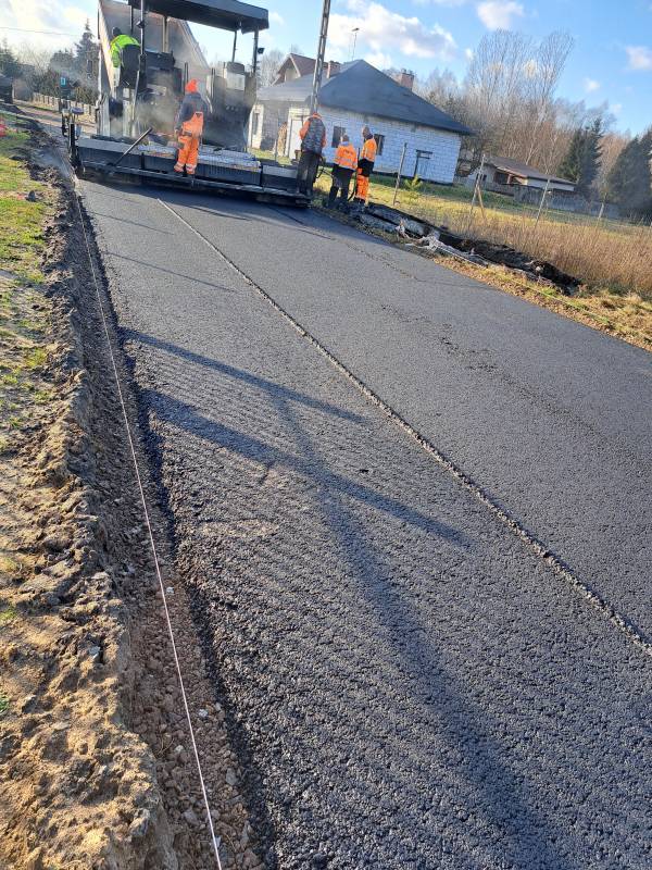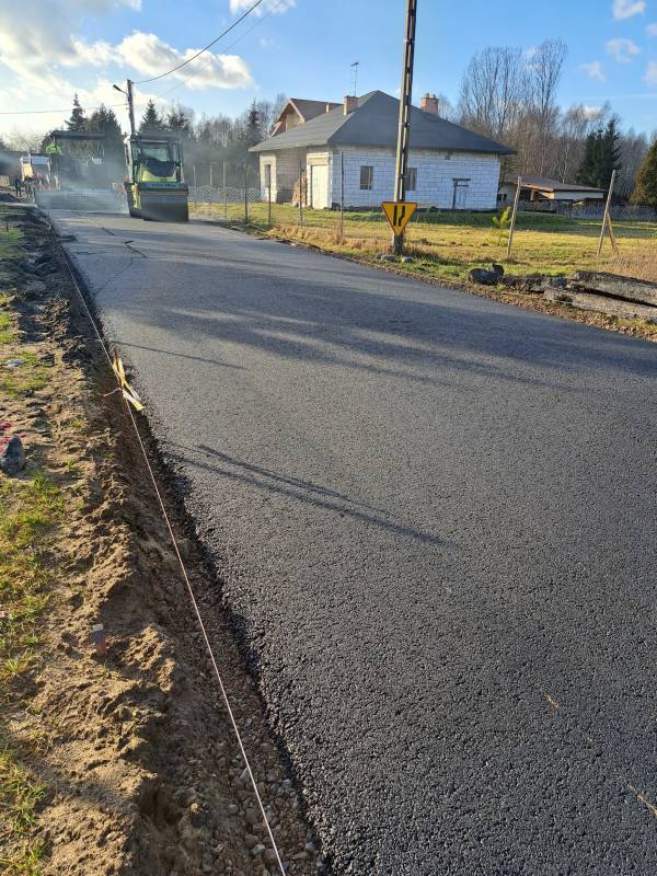 Zakończyły są roboty w zakresie dolnej warstwy wiążącej z mieszkanki asfaltowej. Do wykonania pozostało wykonanie górnej warstwy ścieralnej, regulacja wysokościowa zjazdów i studzienek oraz pobocza.