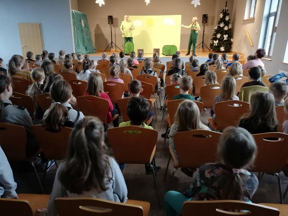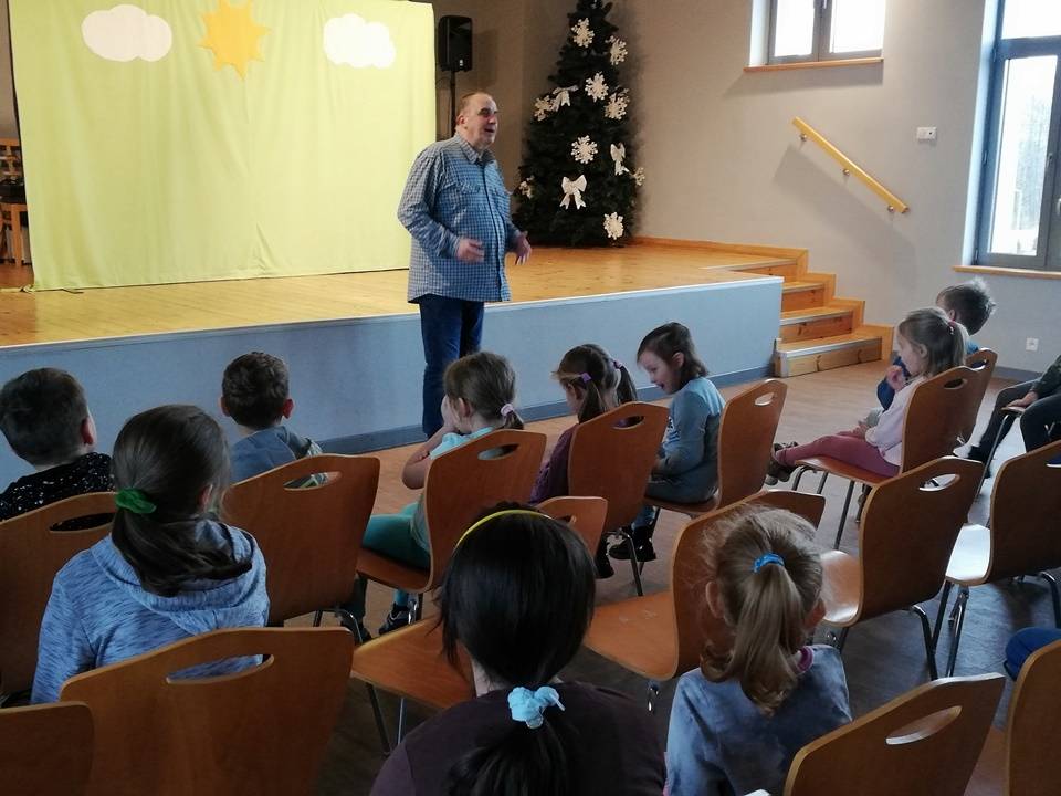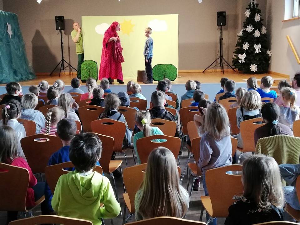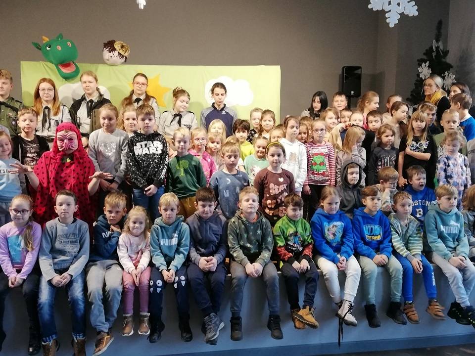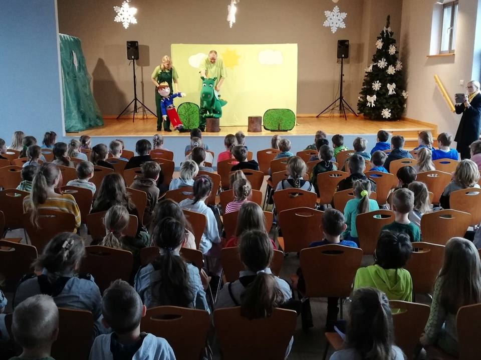 We wtorek, 17 stycznia 2023 roku dzieci biorące udział w bibliotecznych smoczych warsztatach odwiedzili aktorzy Teatru Promyk, którzy wystawili na scenie Domu Kultury sztukę pt. ,,Baśń o księciu Bolku i smoku Wartusiu”. Jest to historia przygód młodego księcia Bolka, pragnącego zasiąść na królewskim tronie. By osiągnąć cel, musi sprostać wielu wyzwaniom. W trakcie wędrówki spotyka dobrego i wesołego smoka Wartusia. Obaj zaprzyjaźniają się. Odtąd wędrują razem. Jak to jednak w bajkach bywa pojawia wiele nieprzewidzianych przeszkód. Szczęśliwe zakończenie było możliwe tylko przy pomocy widzów. Po spektaklu dzieci wzięły udział w warsztatach teatralnych. Poznały różne rodzaje lalek, które są wykorzystywane w przedstawieniach. Miały możliwość poruszania nimi, poznały zasady animacji, pracę aktora i organizację teatru.