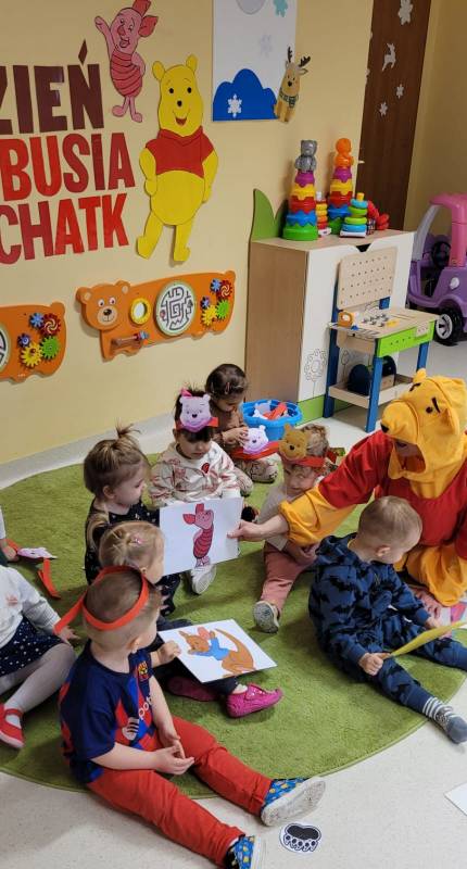 18 stycznia 1882 roku urodził się pisarz Alan Aleksander Milne. Rocznica urodzin autora „Misia o bardzo małym rozumku” stała się okazją do ustanowienia 18 stycznia Międzynarodowym Dniem Kubusia Puchatka. Nasze Maluszki postanowiły uczcić ten dzień i poświętować wspólnie z Kubusiem Puchatkiem. W tym wesołym dniu dzieci poznały przyjaciół ze Stumilowego Lasu. Główki dzieci przyozdobione były w Kubusiowe opaski. Cały dzień był pełen atrakcji.