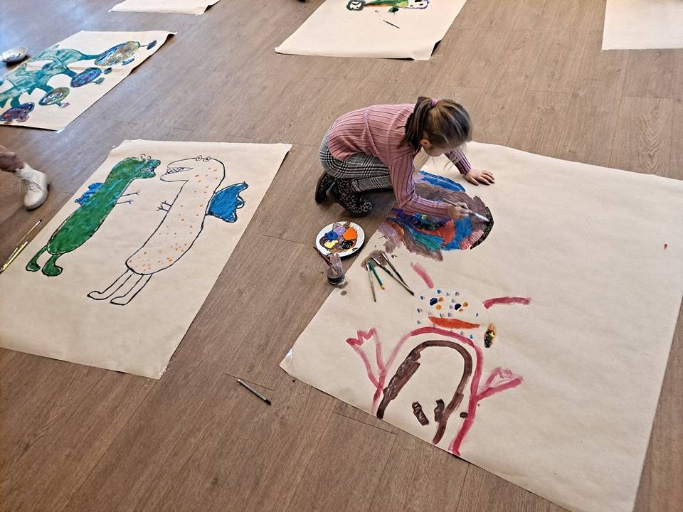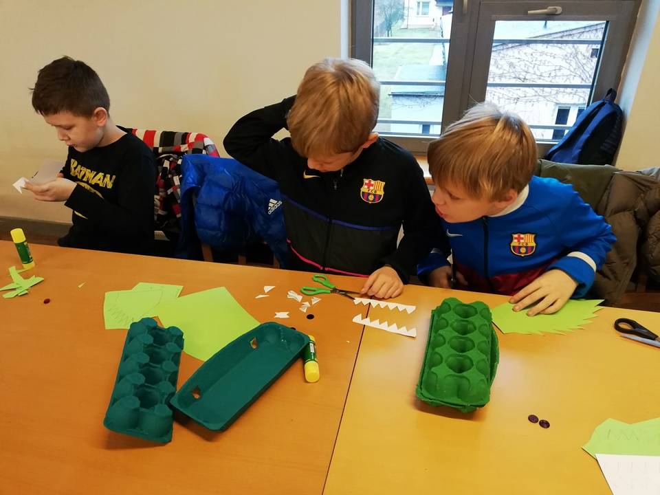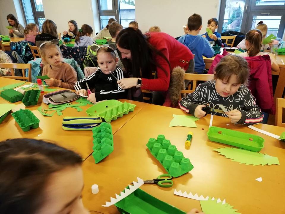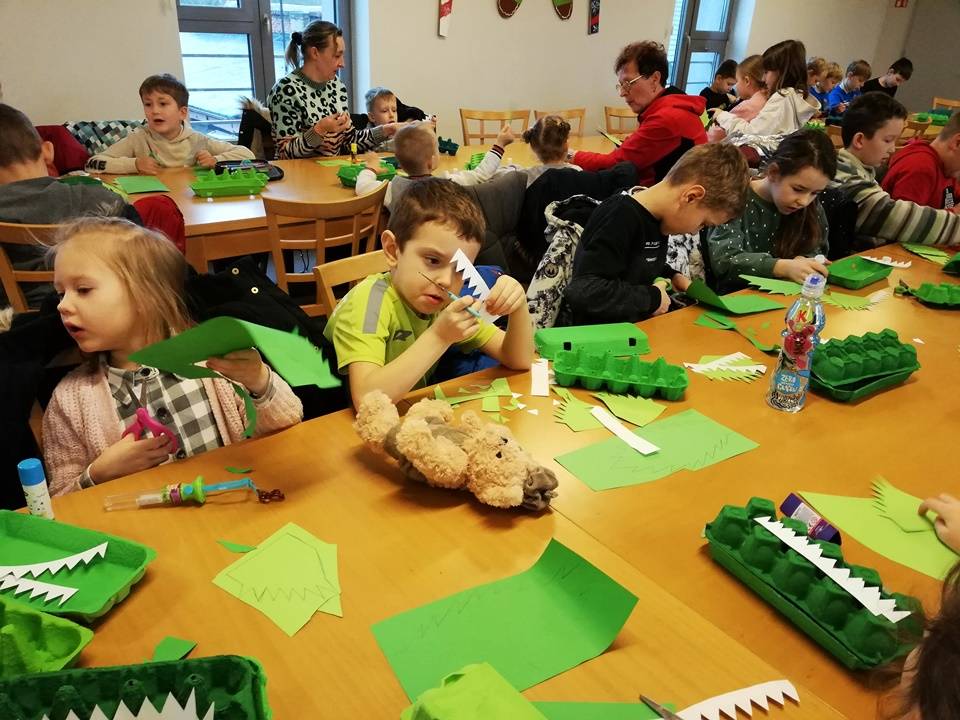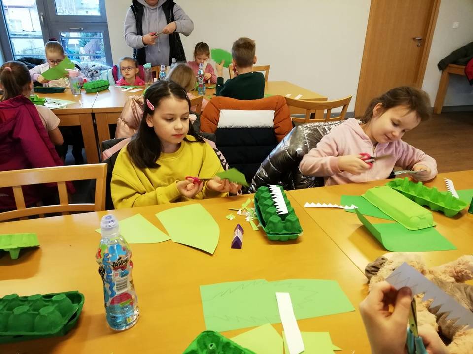 Smoczą środę uczestnicy warsztatów rozpoczęli od wysłuchania opowieści o czterogłowym smoku. Warsztaty poprowadziła Małgorzata Gadecka - dyrektor biblioteki. Na zajęciach dzieci wykonały smoki z wytłoczek, a następnie wcieliły się w rolę ilustratorów bajek, projektowały i malowały smoczych bohaterów. Były smoki dwu, trzy a nawet czterogłowe, kolorowe, łagodne lub ziejące ogniem. Uczestnicy wykazali się niezwykłą kreatywnością.