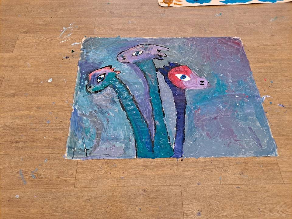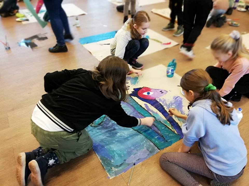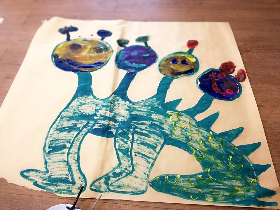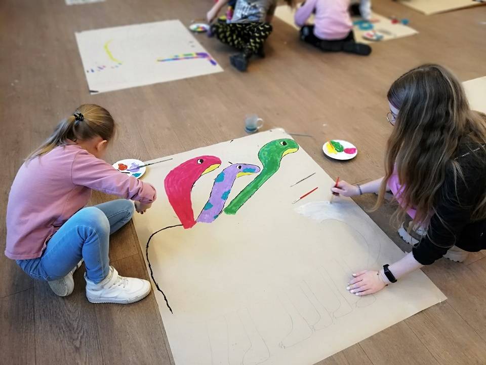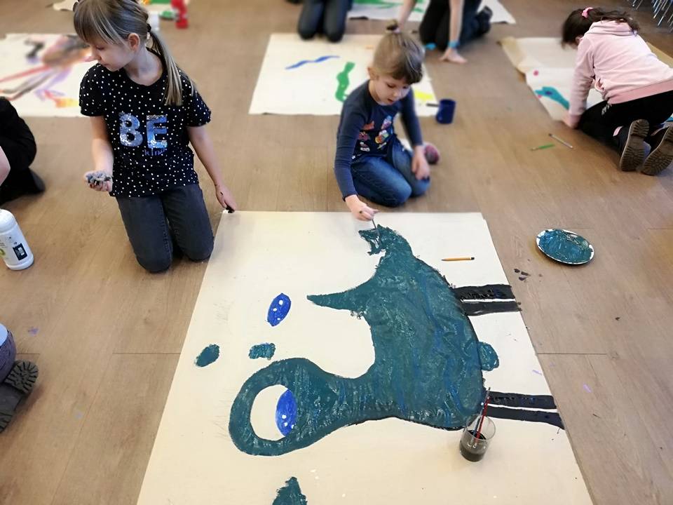 Smoczą środę uczestnicy warsztatów rozpoczęli od wysłuchania opowieści o czterogłowym smoku. Warsztaty poprowadziła Małgorzata Gadecka - dyrektor biblioteki. Na zajęciach dzieci wykonały smoki z wytłoczek, a następnie wcieliły się w rolę ilustratorów bajek, projektowały i malowały smoczych bohaterów. Były smoki dwu, trzy a nawet czterogłowe, kolorowe, łagodne lub ziejące ogniem. Uczestnicy wykazali się niezwykłą kreatywnością.
