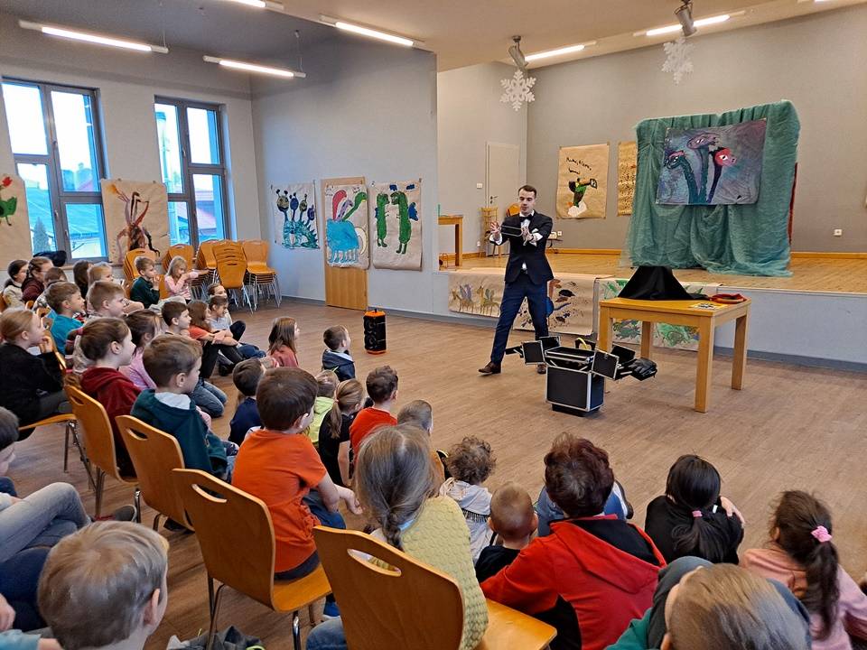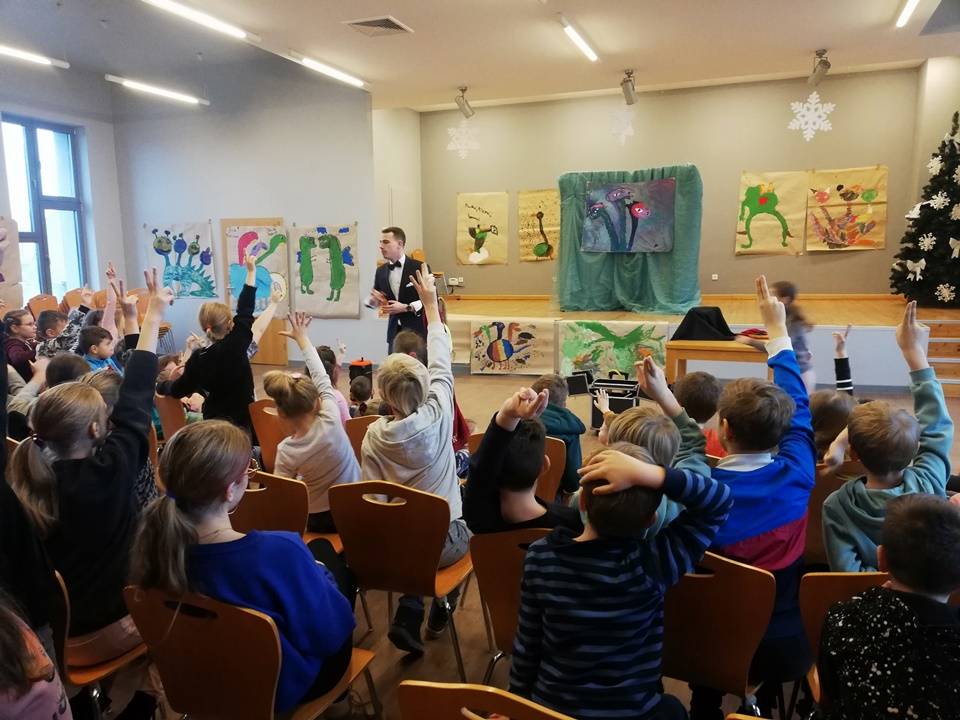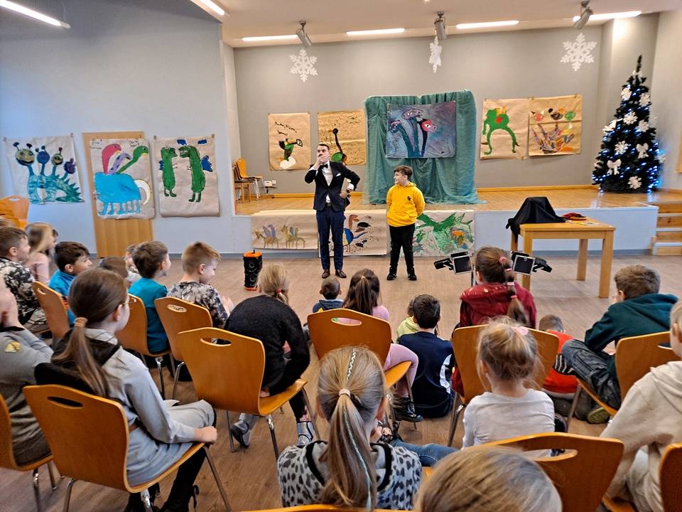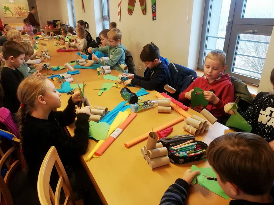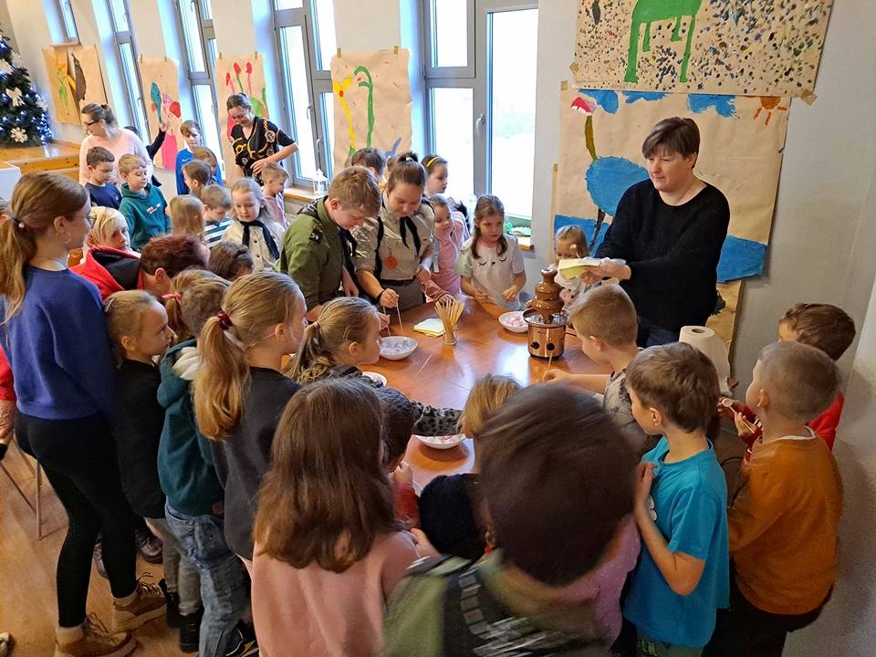 Czwartek był ostatnim dniem smoczych warsztatów bibliotecznych. Jak zawsze zajęcia rozpoczęliśmy od wysłuchania bajki pt. "W krainie dobrych czarów". Przed pokazem magii dzieci odwiedził Pan Alojzy Włodarczyk Wójt Gminy Gorzkowice, który zapewnił naszym uczestnikom super niespodziankę - czekoladową fontannę z piankami. Powstały też kolejne smoki, jak zawsze bardzo ciekawe, kolorowe i zabawne.