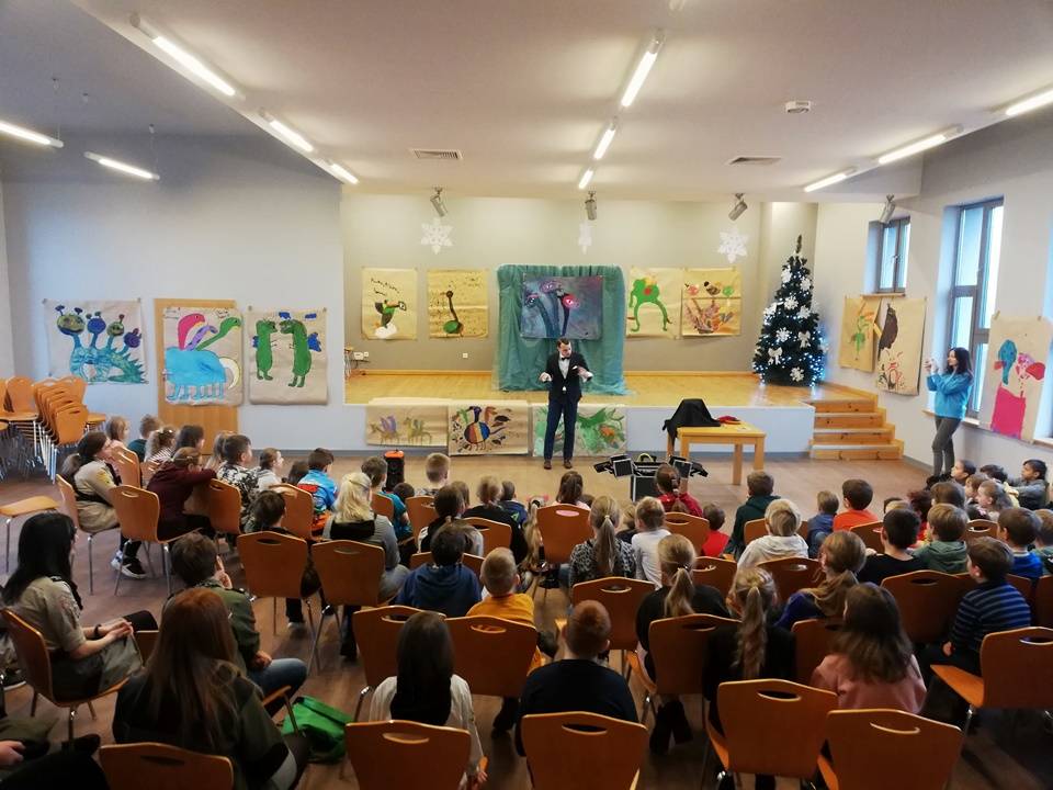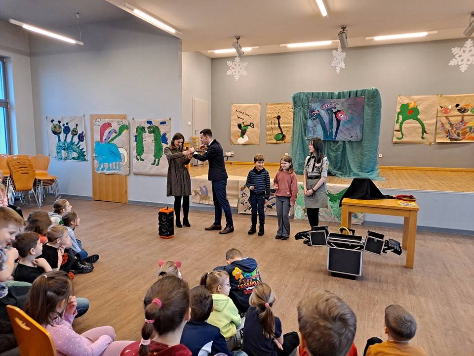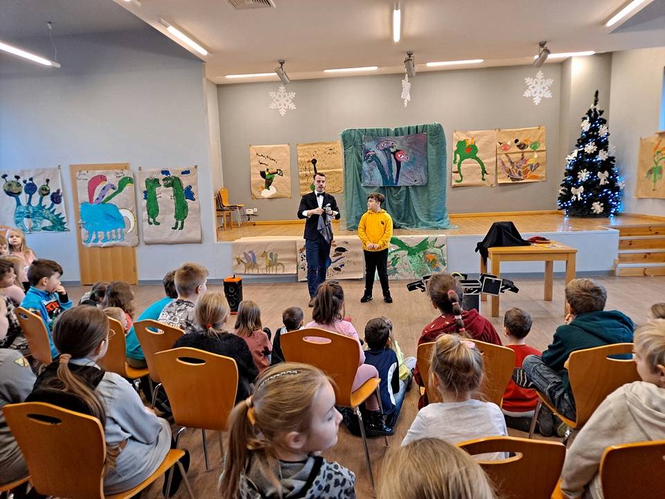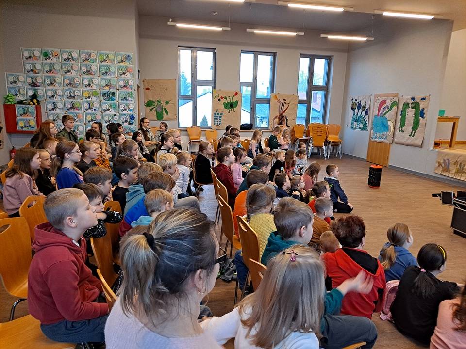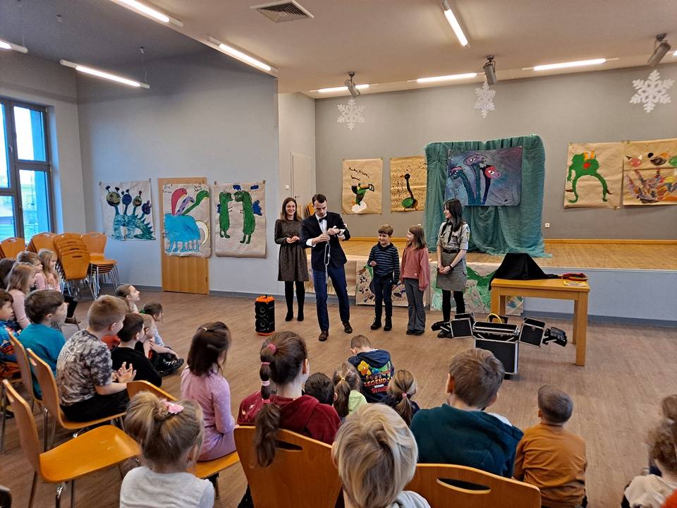 Czwartek był ostatnim dniem smoczych warsztatów bibliotecznych. Jak zawsze zajęcia rozpoczęliśmy od wysłuchania bajki pt. "W krainie dobrych czarów". Przed pokazem magii dzieci odwiedził Pan Alojzy Włodarczyk Wójt Gminy Gorzkowice, który zapewnił naszym uczestnikom super niespodziankę - czekoladową fontannę z piankami. Powstały też kolejne smoki, jak zawsze bardzo ciekawe, kolorowe i zabawne.