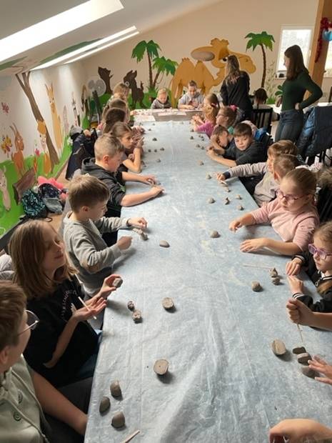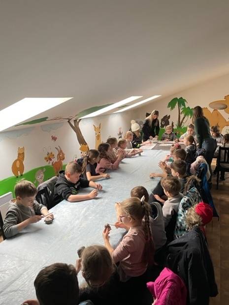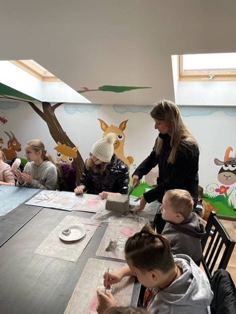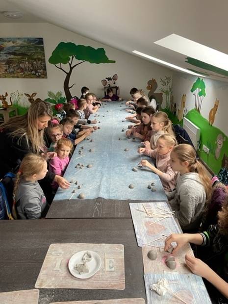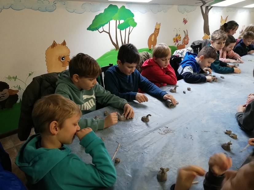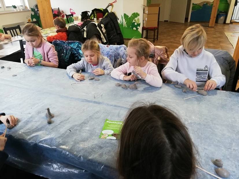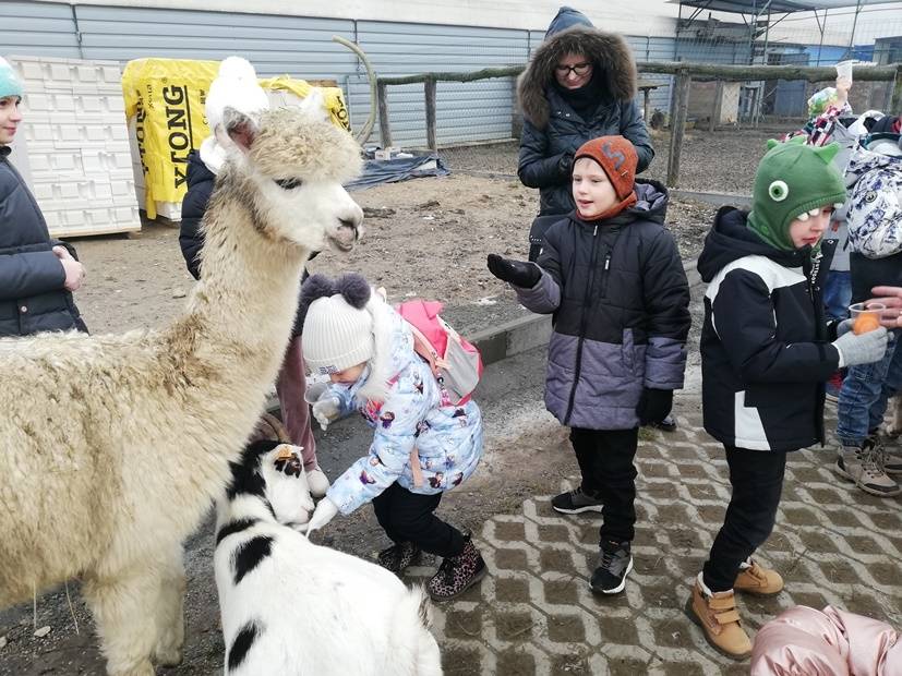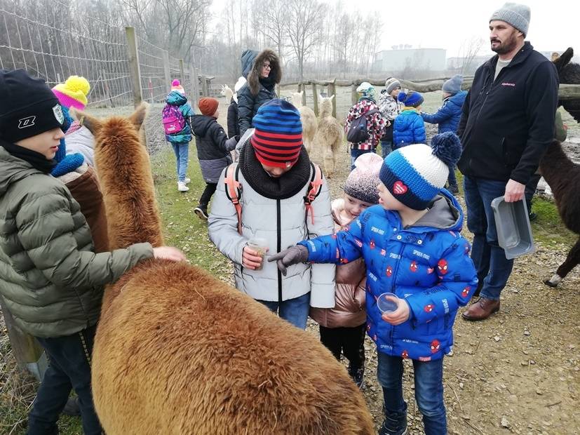 Cykl smoczych warsztatów, które przygotowałyśmy dla dzieci w okresie ferii zakończyłyśmy wyprawą do wspaniałego miejsca - Alpakarni w Poczesnej. Dzieci mogły przytulać i karmić zwierzęta, zarówno te na wybiegach zewnętrznych jak i te, które przebywają na dużej hali. Wszyscy bardzo chętnie wzięli także udział w warsztatach tworzenia alpak z gliny. To był bardzo udany wyjazd, a wszystkie gliniane zwierzątka można odebrać w bibliotece.