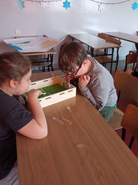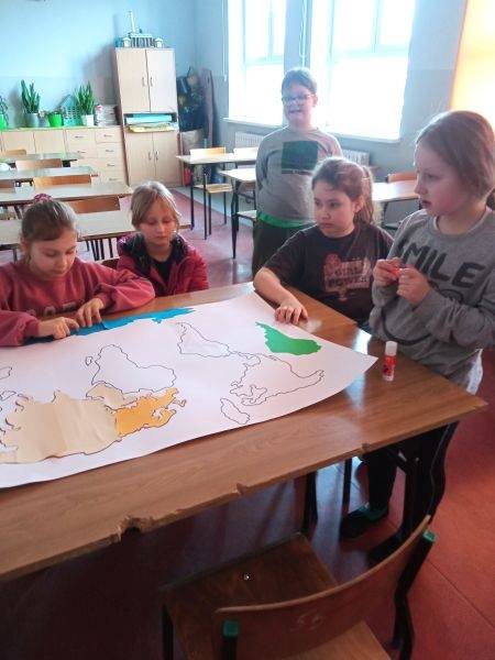 Dzieci poznały kulturę Ameryki Południowej, położenie geograficzne - w tym m.in. jakie oblewają ją oceany, jakim językiem posługują się jej mieszkańcy oraz jaką mają walutę, klimat , a także florę i faunę.