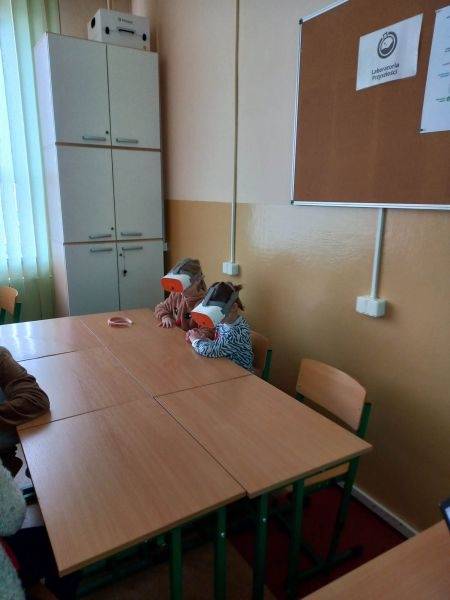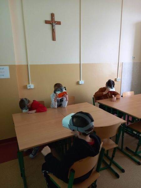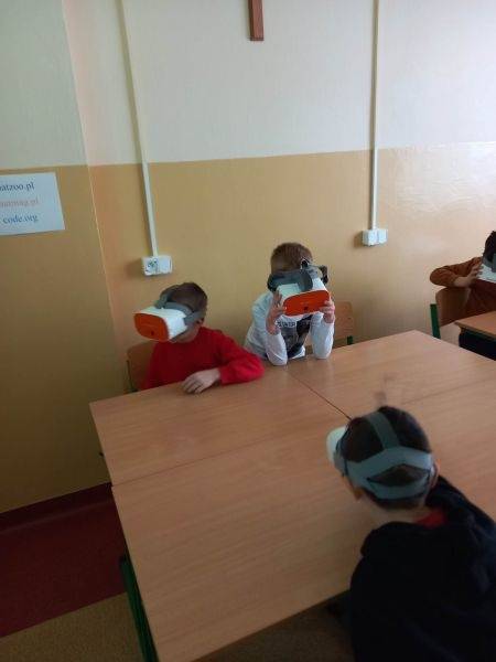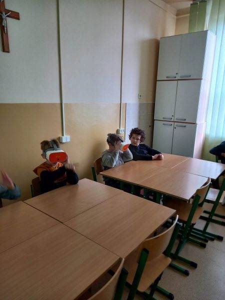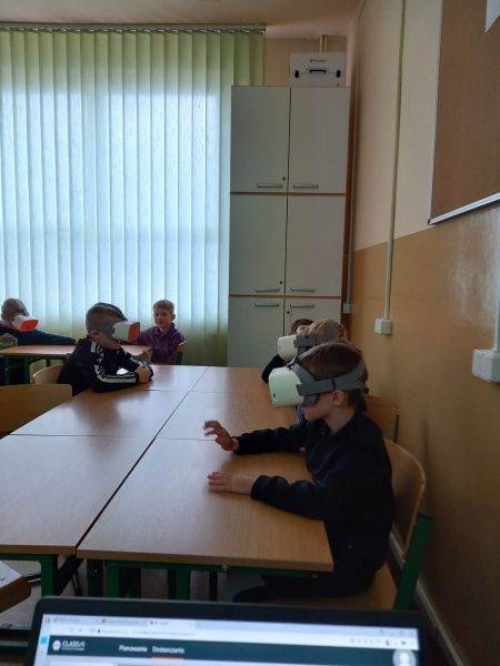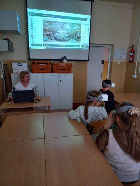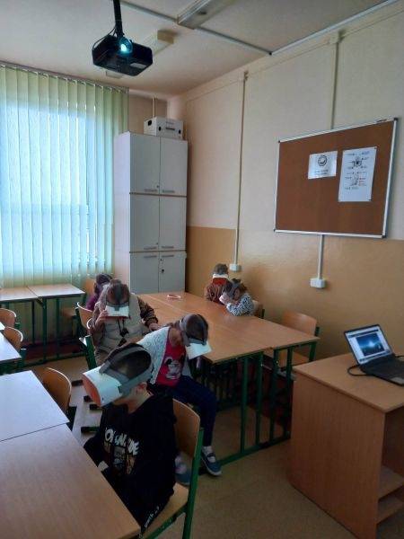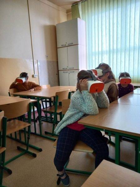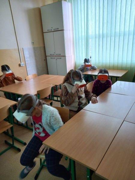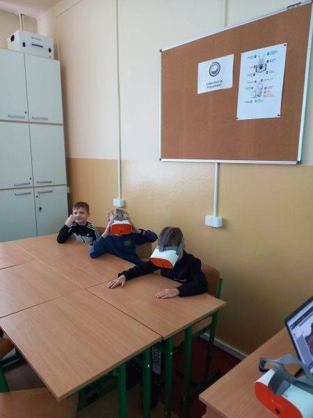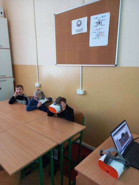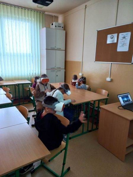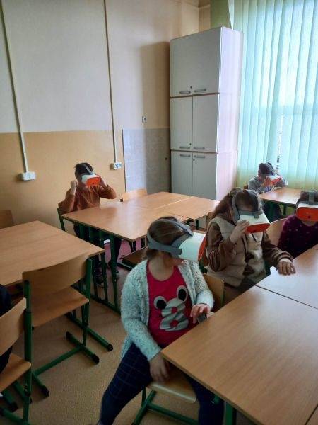 1 lutego 2023r. uczniowie klasy 2c wybrali się do pracowni komputerowej wyposażonej w nowoczesny sprzęt zakupiony w ramach programu „Laboratoria przyszłości”. Uczestniczyli w lekcji prowadzonej przez Pana Arkadiusza Krasonia – nauczyciela informatyki oraz wychowawcę klasy Panią Anetę Krawczyk. Tematem zajęć było poznawanie odległych zakątków świata z wykorzystaniem okularów Class VR, które uatrakcyjniły zdobywanie wiedzy przez uczniów oraz pomogły w lepszym jej przyswojeniu. Uczniowie nie tylko widzieli wirtualny świat na ekranie, ale praktycznie stali się jego częścią, co sprzyjało przeżywaniu i zapamiętywaniu wiadomości.