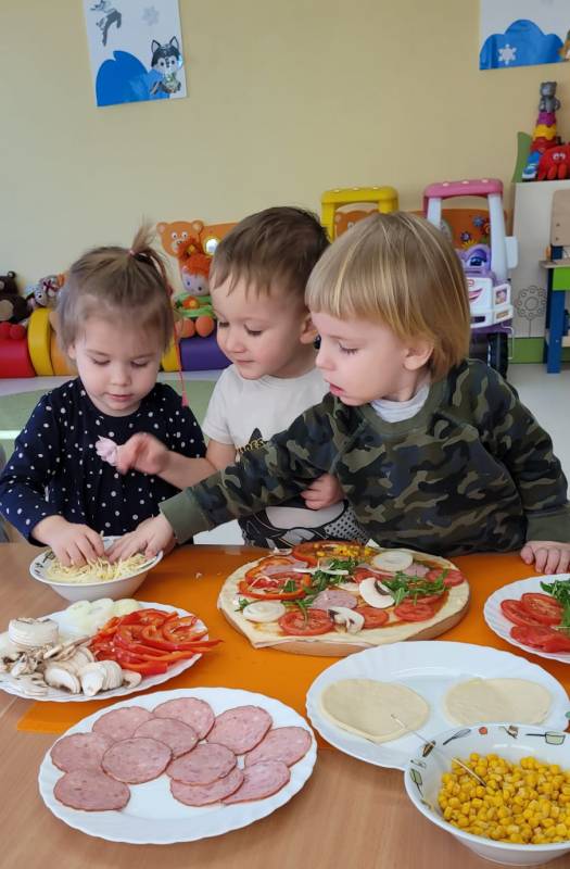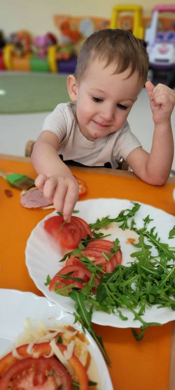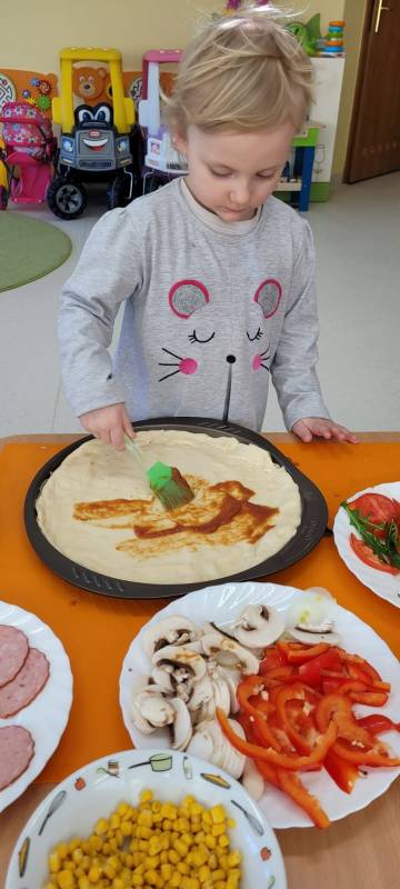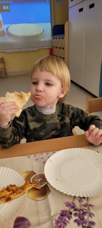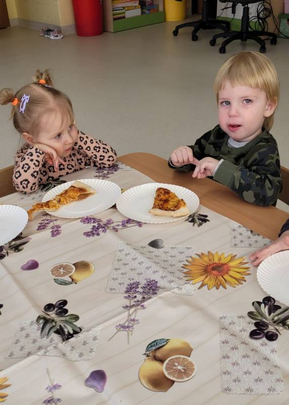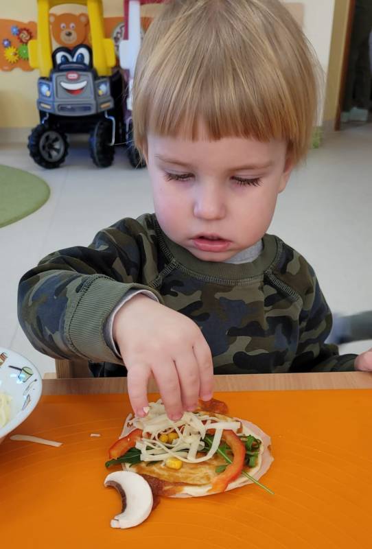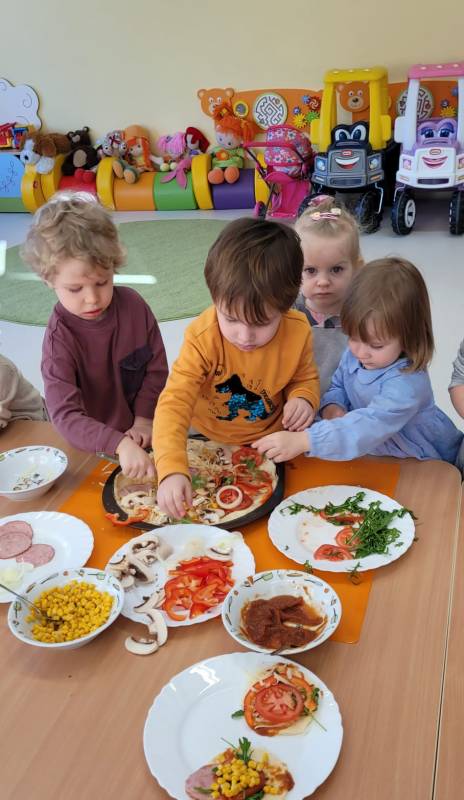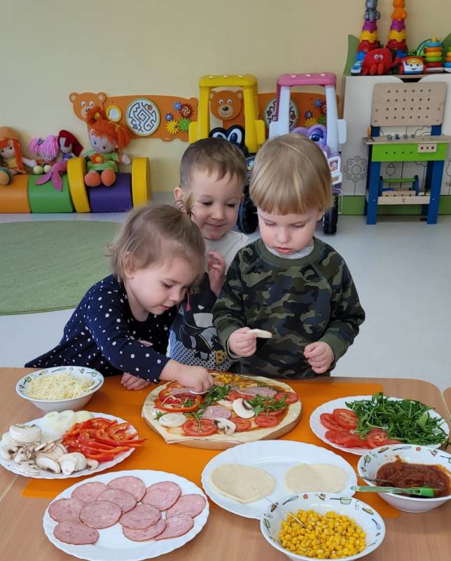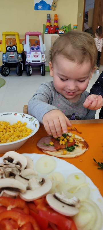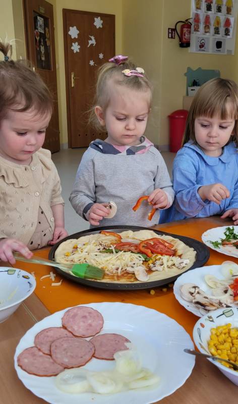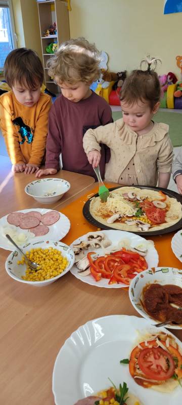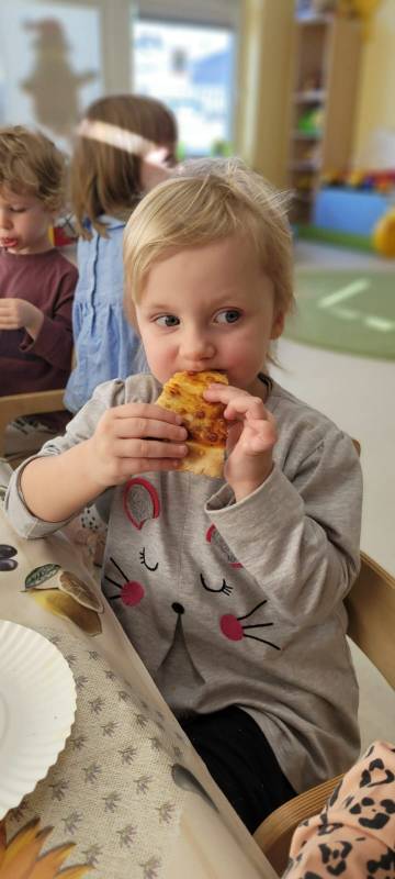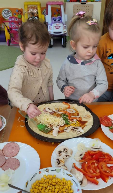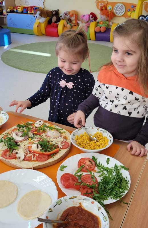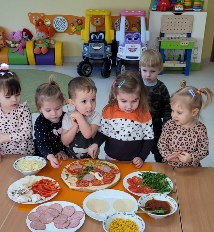 9 lutego obchodzimy Dzień Pizzy. Tego dnia sala naszego klubiku zamieniła się we włoską pizzerię. Maluszki wspólnie z ciociami bawiąc się w kucharzy przygotowały pizzę. Wielką frajdę dzieciom sprawiły już same przygotowania: smarowanie sosem pomidorowym ciasta, nakładanie ulubionych składników i posypywanie serem. Gdy wszystko było już gotowe, pizze powędrowały do kuchni, aby się upiec. Następnie dzieci z wielkim apetytem próbowały własnoręcznie przygotowanych pyszności. Cały dzień upłynął w miłej i radosnej atmosferze. Dzieci poznały historię pizzy, dowiedziały się z jakiego kraju pochodzi. To był niezwykle smakowity dzień! Zapraszamy do galerii na fotorelację.