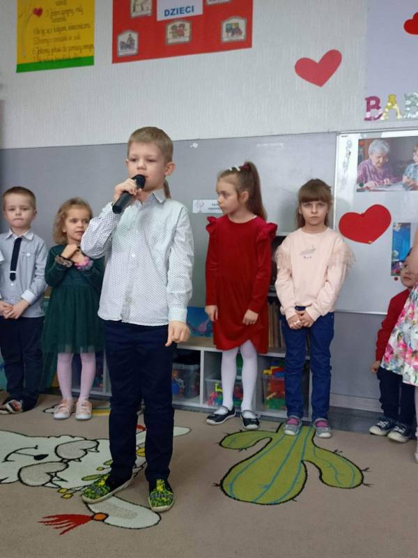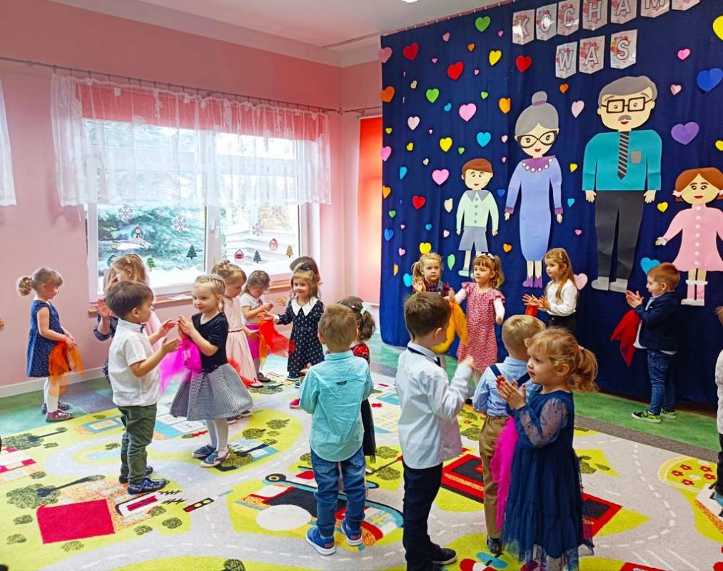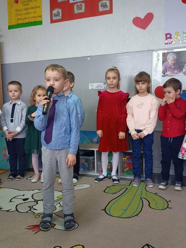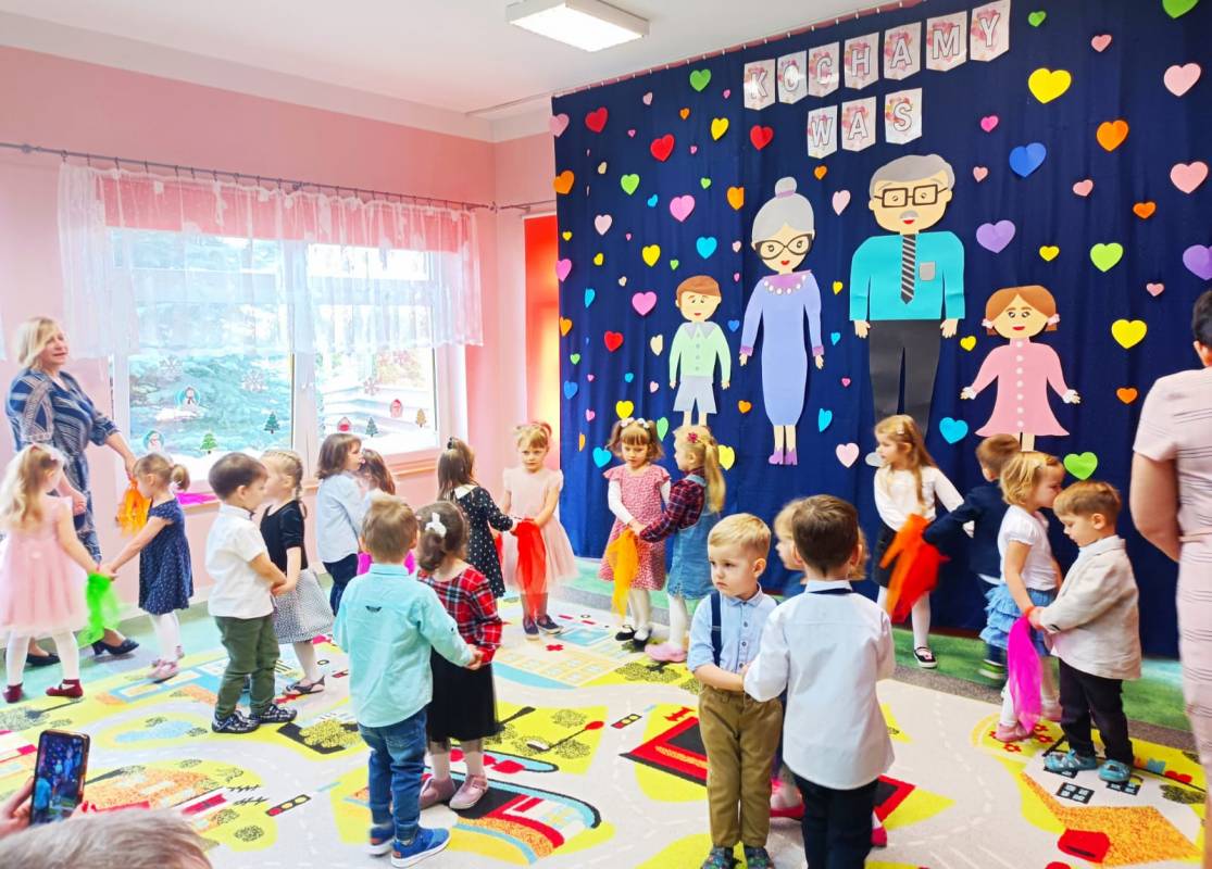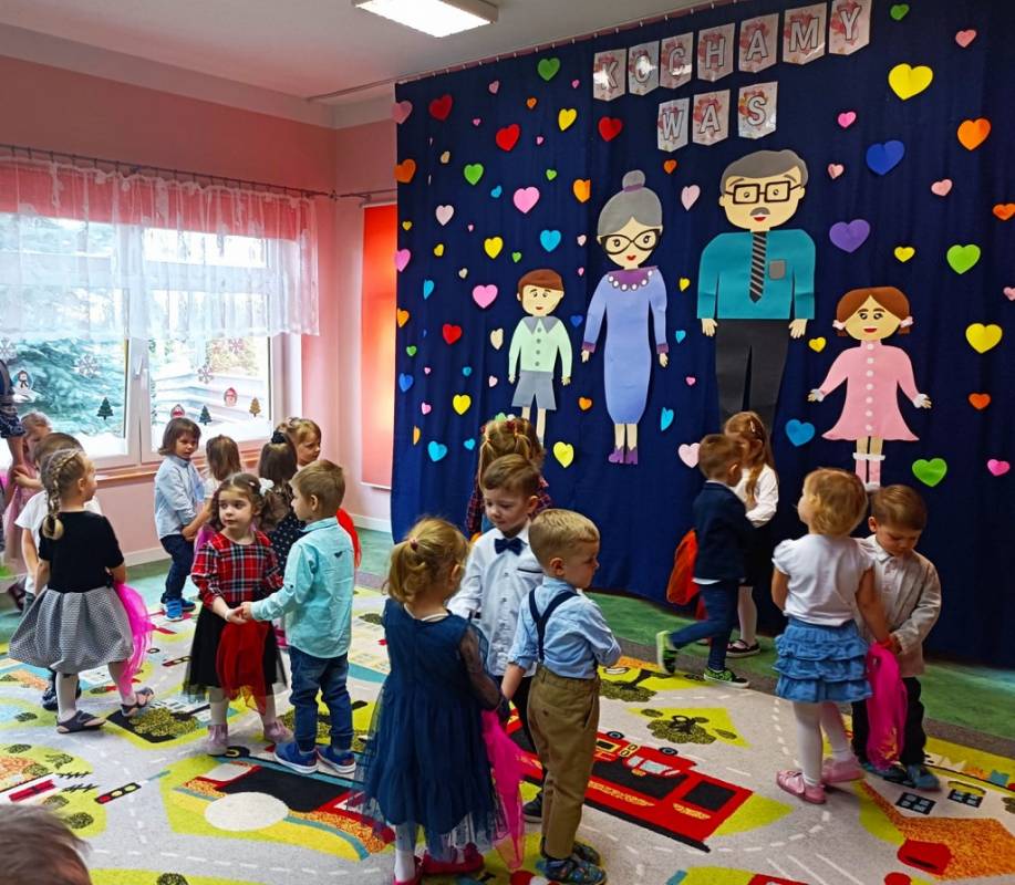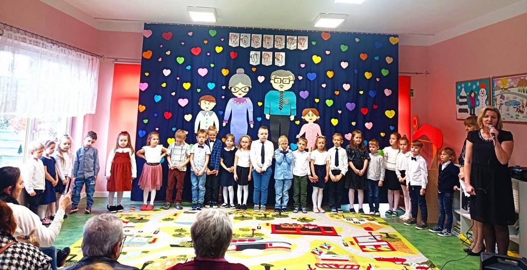 Uroczystość z okazji Dnia Babci i Dziadka to bardzo ważna tradycja w naszym przedszkolu. Dziadkowie bowiem to wielki skarb. To oni czynią dzieciństwo bardziej pełnym, udanym i szczęśliwym. Babcia i dziadek to słowa, które każdemu dziecku kojarzą się z ciepłem, miłością i wszystkim, co dobre. To im należy się szczególne podziękowanie za miłość, cierpliwość i zrozumienie. Przedszkolaki dołożyły starań, aby ten dzień był wyjątkowy. W pięknych strojach, w pięknej scenografii zaprezentowały krótkie repertuary przygotowane specjalnie dla swoich babć i dziadków. Były wierszyki, piosenki i tańce oraz życzenia. Dziadkowie ze wzruszeniem przyglądali się występom swoich najukochańszych wnuków. Po części artystycznej wnuczęta obdarowały babcie i dziadków własnoręcznie wykonanymi upominkami oraz zaprosiły na słodki poczęstunek.