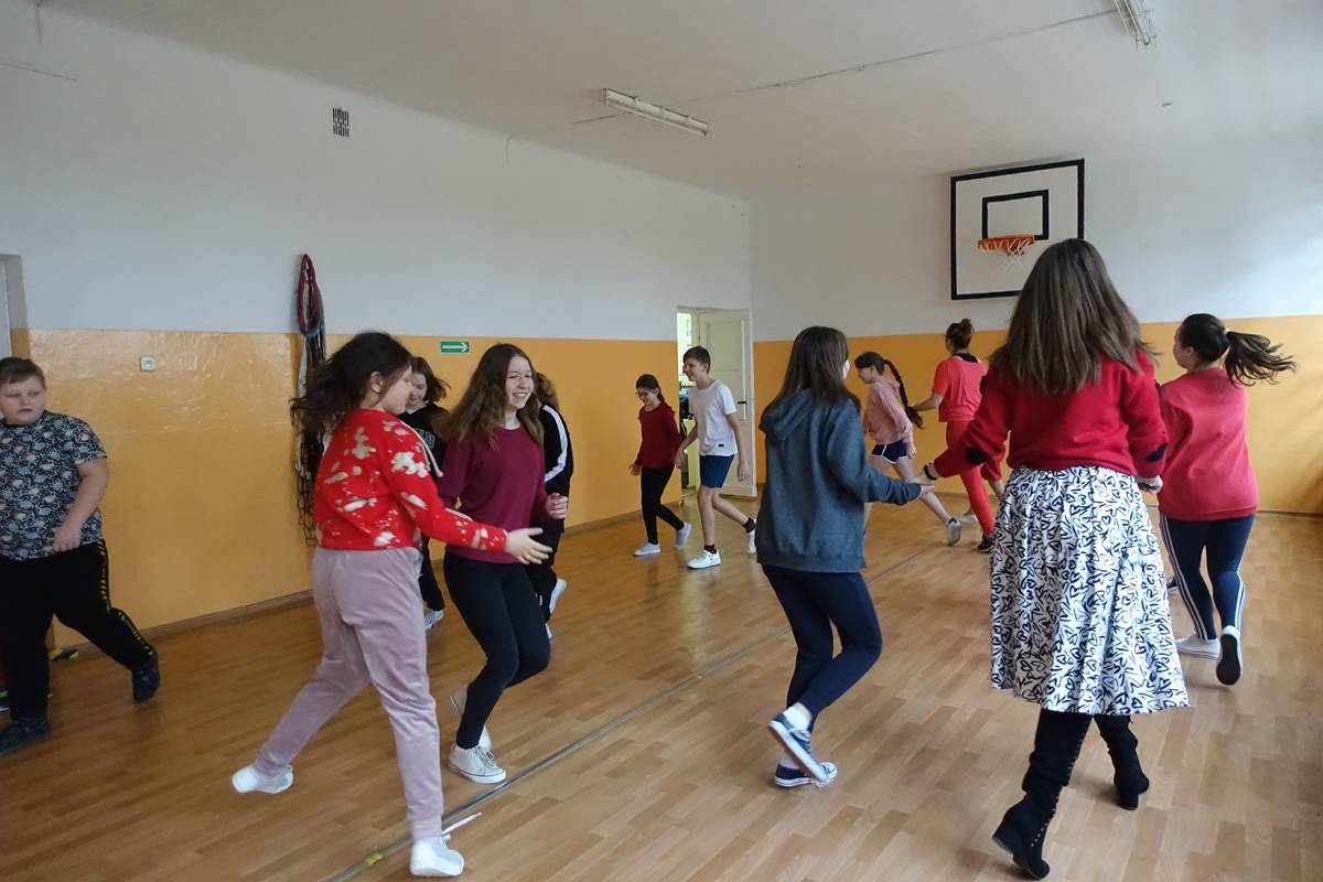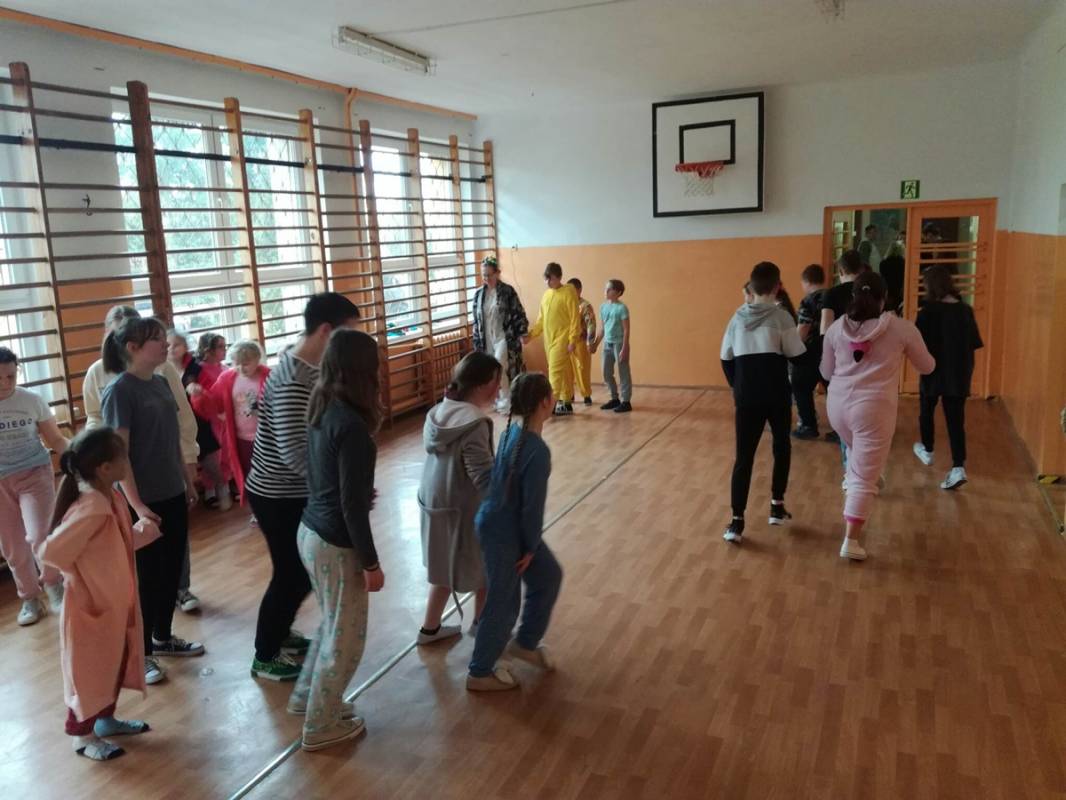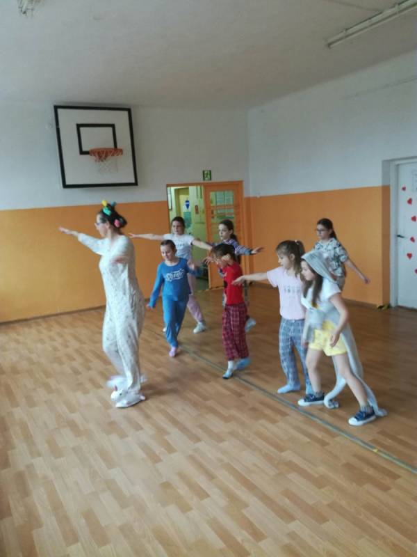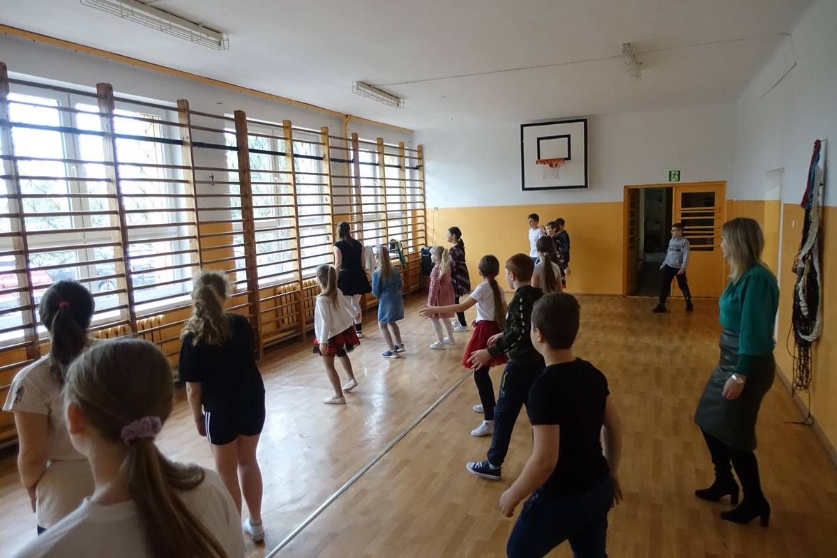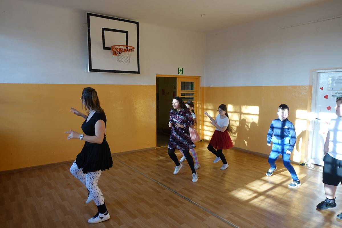 Karnawałowemu szaleństwu towarzyszyła oczywiście muzyka i tańce. Na każdej przerwie przez cały tydzień uczniowie pod okiem Pani Beaty Gniewaszewskiej ćwiczyli różnorodne układy choreograficzne. Nie zabrakło naszych ulubionych rytmów latino, popularnej macareny, zorby czy tańca „Chocolate”. Niekwestionowaną królową naszego szkolnego parkietu została jednak belgijka, której rytmiczne kroki i radosny charakter porwały do tańca nawet najbardziej opornych!