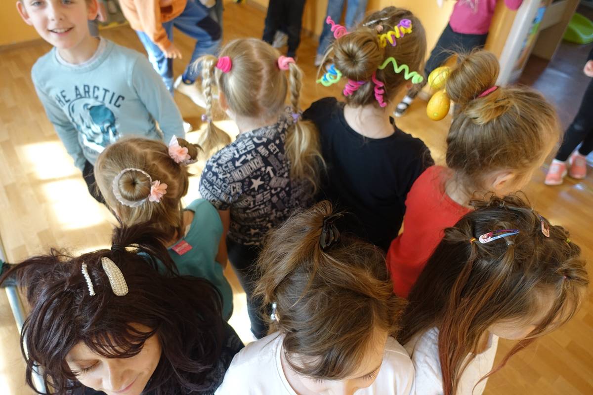 Chcąc podkreślić radosny charakter tego czasu, Samorząd Uczniowski Szkoły Podstawowej w Krzemieniewicach zainicjował w dniach 13.02-17.02.2023r. Tydzień Karnawałowy, w ramach którego chętni uczniowie, a także nauczyciele, przebierali się zgodnie z przypisaną każdemu dniowi tematyką. I tak, pierwszego dnia, w poniedziałek królowały sukienki i spódnice. Hasłem przewodnim tego dnia było: „Czyś chłopakiem, czyś dziewczyną, przyjdź w sukience z fajną miną”. Przyznajemy, że choć nieliczni, to znaleźli się odważni, kreatywni chłopcy, którzy tego dnia zaskoczyli swoimi stylizacjami Wtorek upłynął oczywiście pod znakiem stroju walentynkowego. Na szkolnych korytarzach rządziła czerwień i motyw serca. Środa była dniem rzeczy, które do siebie nie pasują. I tu się działo! Skarpetki do sandałów, skarpetki nie do pary, mieszanka wzorów, kolorów i faktur! W tym dniu powiedzenie „im gorzej, tym lepiej” nabrało szczególnego znaczenia. Czwartek ogłoszony został dniem szalonej fryzury. Tutaj również nasi uczniowie (i nie tylko!) wykazali się nie lada fantazją i udowodnili, że w kwestii stylizacji włosów ogranicza nas tylko wyobraźnia. Dniem, na który wszyscy najbardziej czekali, był piątek – dzień piżamy i szlafroka! Dzieci z utęsknieniem wypatrywały nadejścia końca tygodnia, kiedy mogły założyć swoje ulubione, wygodne stroje, łącząc je niejednokrotniez domowymi kapciami. Niewątpliwie, tego dnia mogły poczuć się w szkole jak w domu! Na szczęście, przyodzianie tych ubrań nie sprawiło, że ktokolwiek zasnął na lekcji