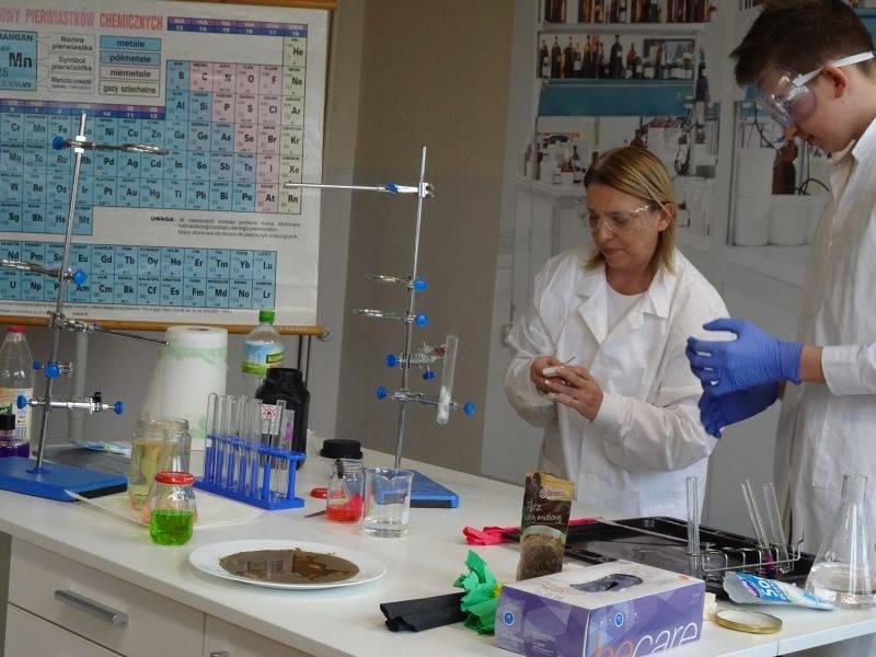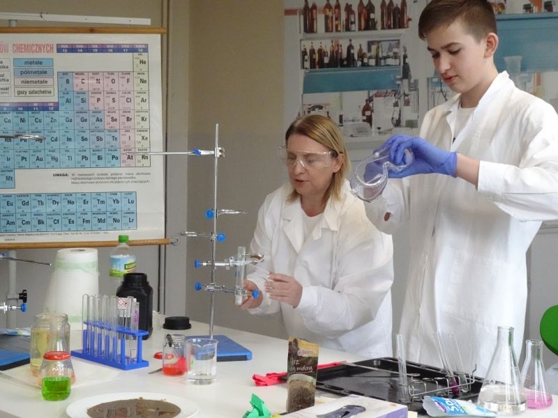 W przededniu Święta Nauki Polskiej uczniowie Szkolnego Koła Zainteresowań Chemią wraz z opiekunką p. Agnieszką Ziembą przygotowali dla uczniów kl.2. i 3. naszej szkoły ekscytujące spotkanie z nauką.