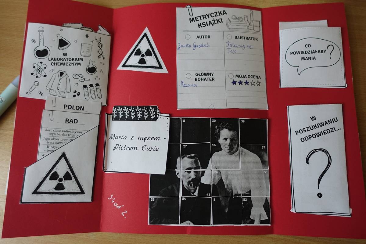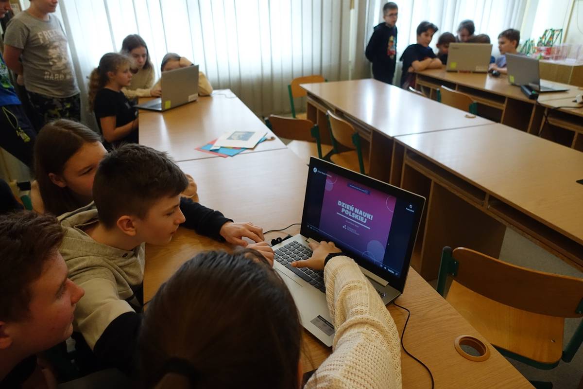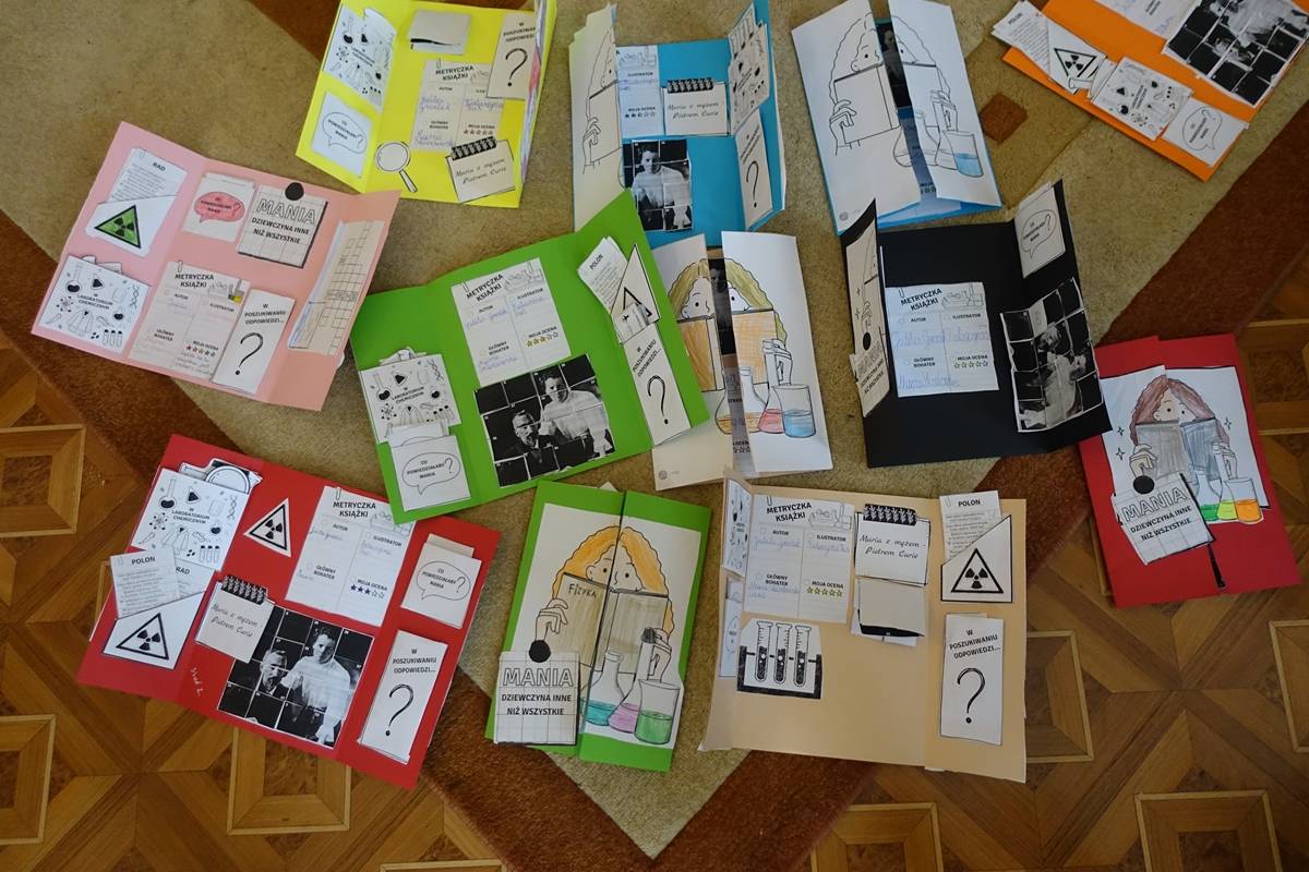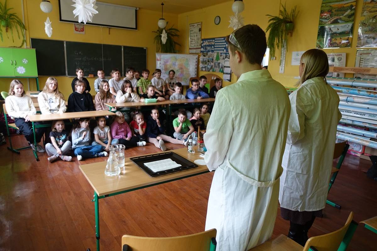 Pani Agnieszka Ziemba przygotowała dla uczniów wiele ciekawych doświadczeń i eksperymentów, które miały na celu zachęcić młodzież do poznania świata nauki. Następnie uczniowie klas I-III, po wysłuchaniu audiobooku ,,Mania, dziewczynka inna niż wszystkie”, rozwiązywali zagadki, rebusy i odpowiadali na pytania związane z lekturą. Kolejną częścią obchodów było stworzenie przez młodszych uczniów lapbooka, dotyczącego życia wybitnej polskiej uczonej- Marii Skłodowskiej – Curie. Na koniec uczniowie klas IV- VIII wykorzystując narzędzia TIK, rywalizowały ze sobą rozwiązując quiz o wybitnych polskich wynalazcach.
