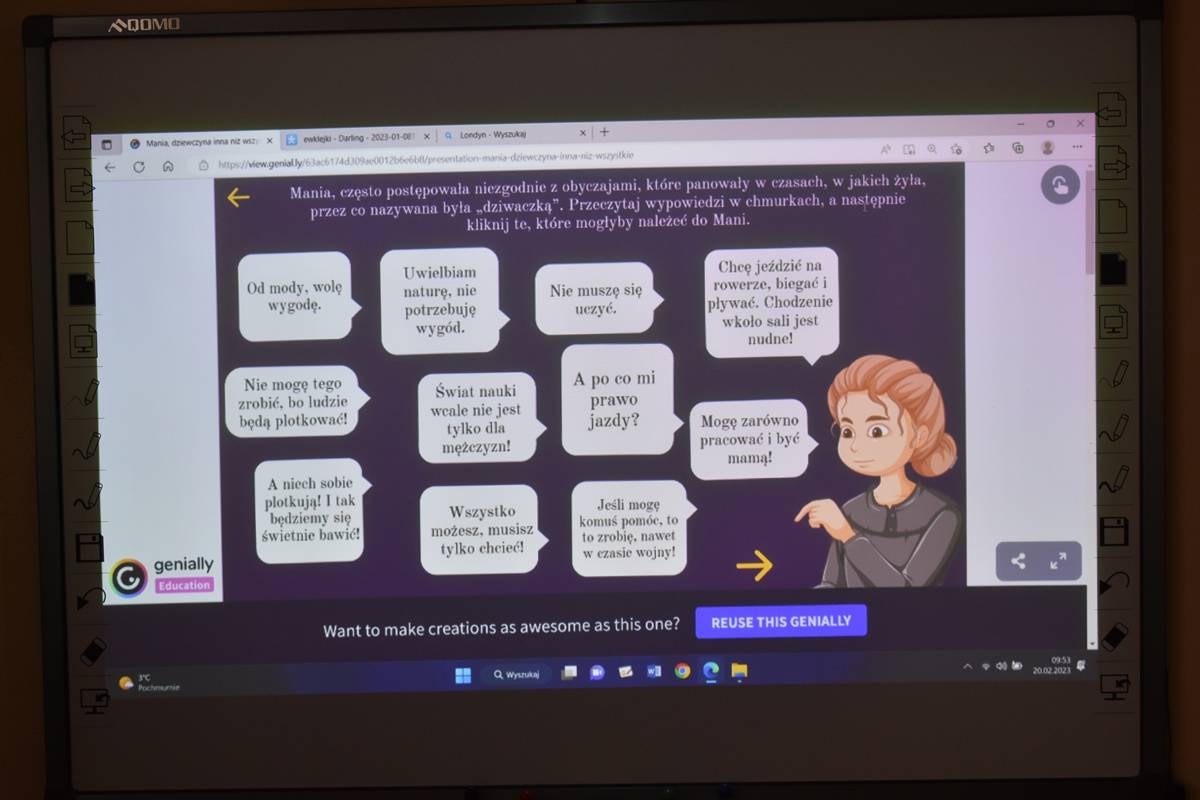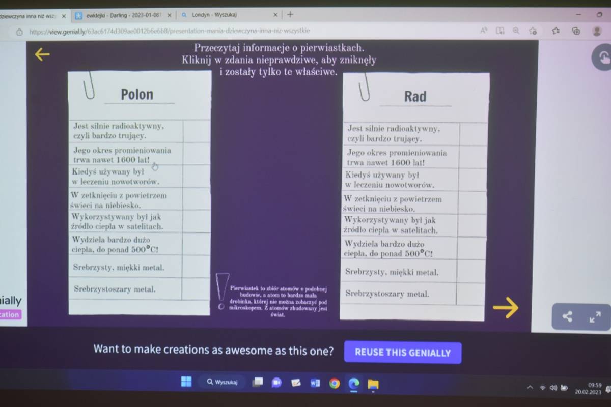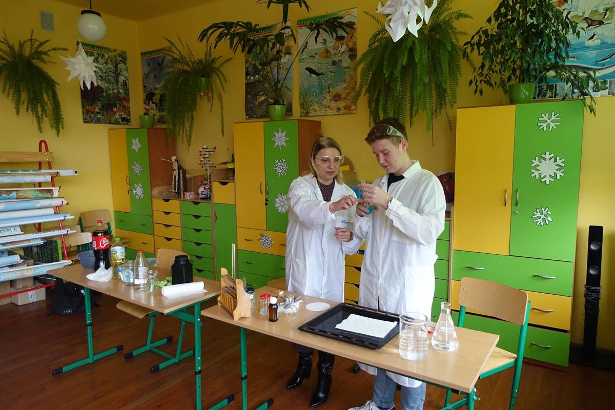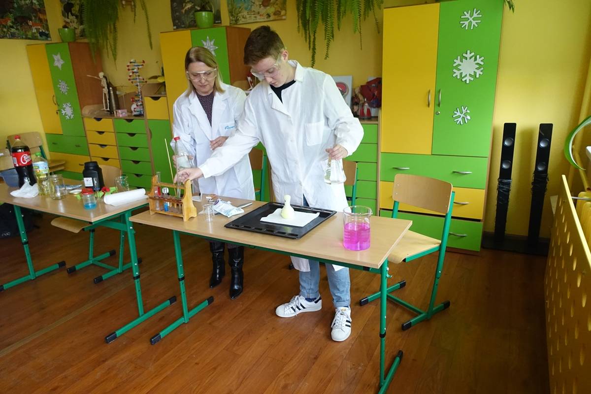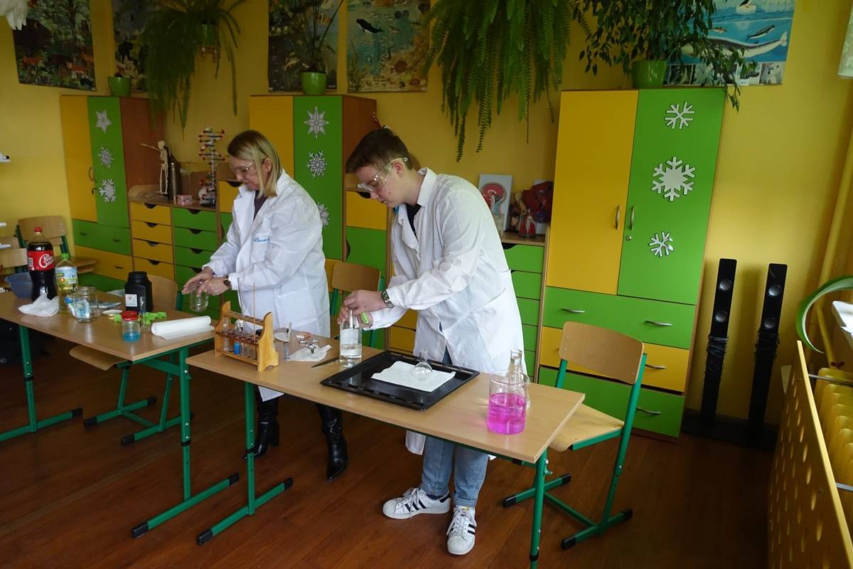 Pani Agnieszka Ziemba przygotowała dla uczniów wiele ciekawych doświadczeń i eksperymentów, które miały na celu zachęcić młodzież do poznania świata nauki. Następnie uczniowie klas I-III, po wysłuchaniu audiobooku ,,Mania, dziewczynka inna niż wszystkie”, rozwiązywali zagadki, rebusy i odpowiadali na pytania związane z lekturą. Kolejną częścią obchodów było stworzenie przez młodszych uczniów lapbooka, dotyczącego życia wybitnej polskiej uczonej- Marii Skłodowskiej – Curie. Na koniec uczniowie klas IV- VIII wykorzystując narzędzia TIK, rywalizowały ze sobą rozwiązując quiz o wybitnych polskich wynalazcach.