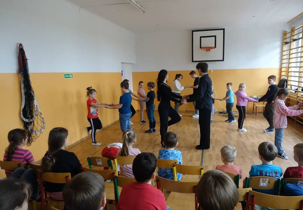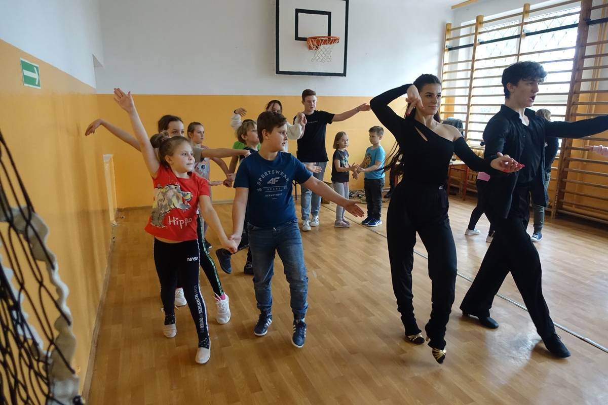 Ostatnie dni karnawału to znakomity moment, aby salę gimnastyczną zamienić na salę taneczną. Tak też się stało w Szkole Podstawowej w Krzemieniewicach za sprawą znakomitych tancerzy - pani Natalii i pana Szymona. Nasi goście w zabawny sposób nauczyli nas kroków tanecznych cha-chy, rumby i jiava. Ta niesamowita lekcja dostarczyła nam nie tylko wspaniałej zabawy, ale także wprawiła w radosny, karnawałowy nastrój.