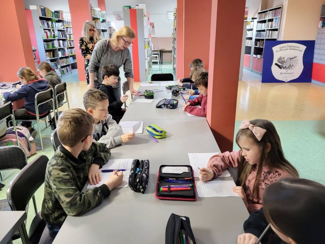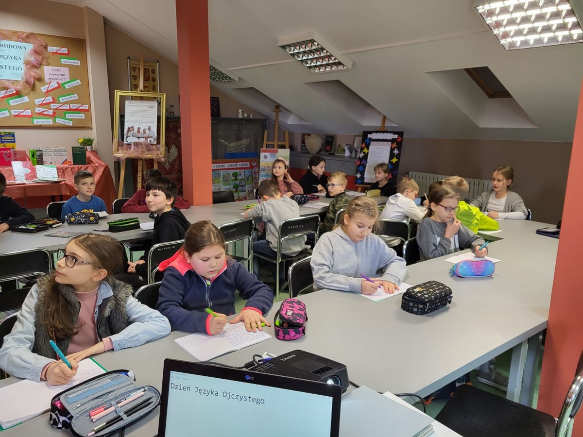 Z okazji Dnia Języka Ojczystego w naszej szkole odbył się również konkurs ortograficzny, którego celem było sprawdzenie znajomości zasad ortografii. Z „gżegżółką” i „ohydnymi chmurzyskami” zmagali się uczniowie z klas IV.