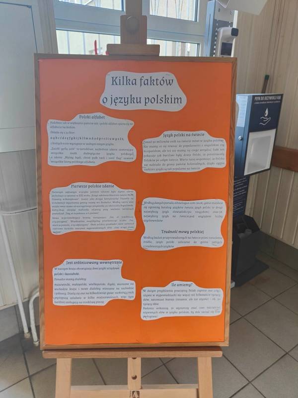 Nauczyciele języka polskiego przygotowali także wystawkę, na której zostały zaprezentowane alfabetyczne informacje i ciekawostki dotyczące języka polskiego.