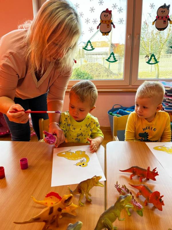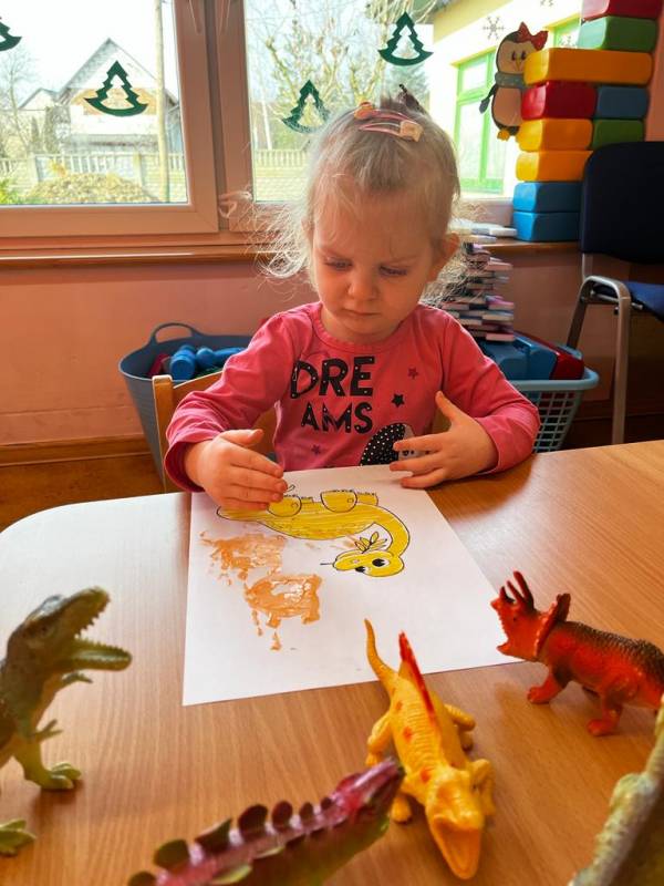 Luty jak każdy miesiąc jest pełen niespodzianek, a także okazji do zdobywania wiedzy o świecie. 26 luty to Dzień Dinozaura. Dzieci z Samorządowego Klubu Dziecięcego w Gorzkowicach obchodziły święto znanych prehistorycznych stworzeń. Maluszki poznały historię dinozaurów, dowiedziały się kiedy żyły, czym się żywiły i jak wyglądały. Następnie malowały farbami kolorowanki przedstawiające dinozaury. Dzień Dinozaura przeniósł nas w odległy, fascynujący i wciąż tajemniczy świat.