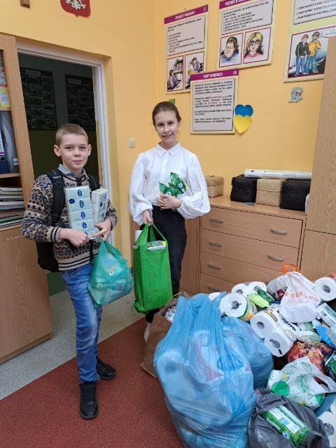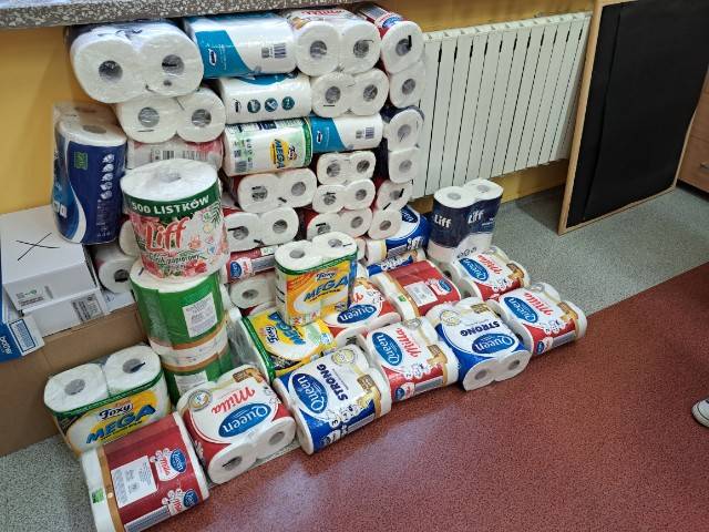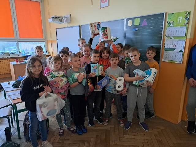 W związku z obchodzonymi świętami w naszej szkole została zorganizowana zbiórka produktów higienicznych m.in.: ręczników papierowych, chusteczek nawilżonych i zwykłych, papieru toaletowego.