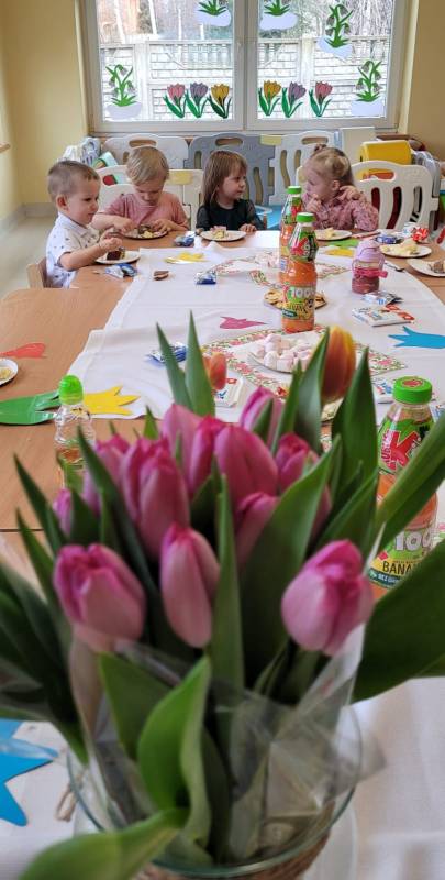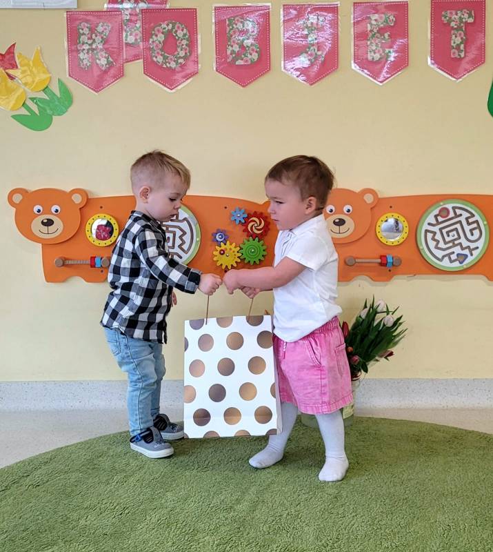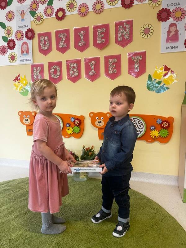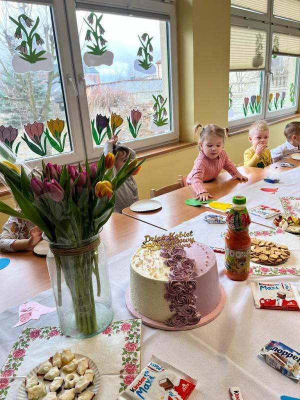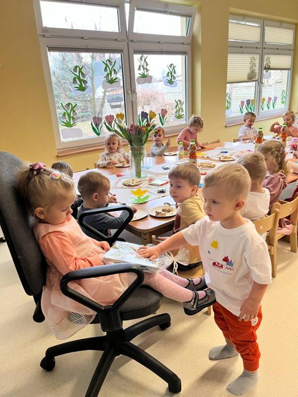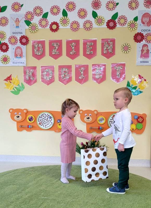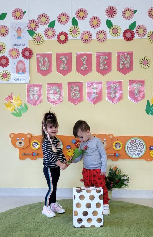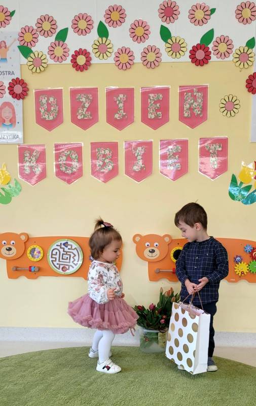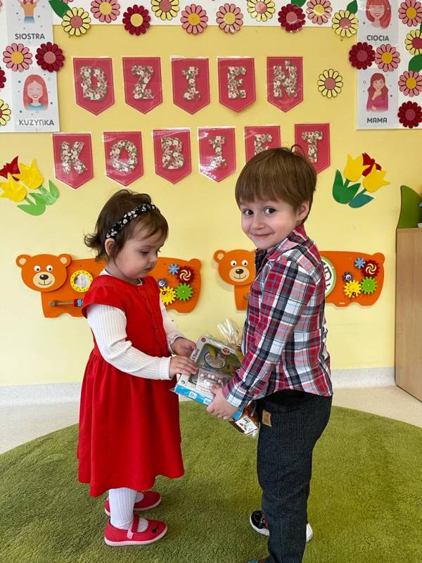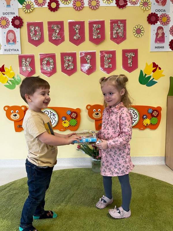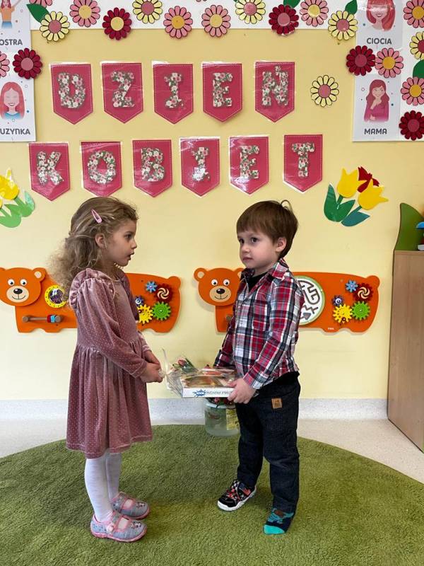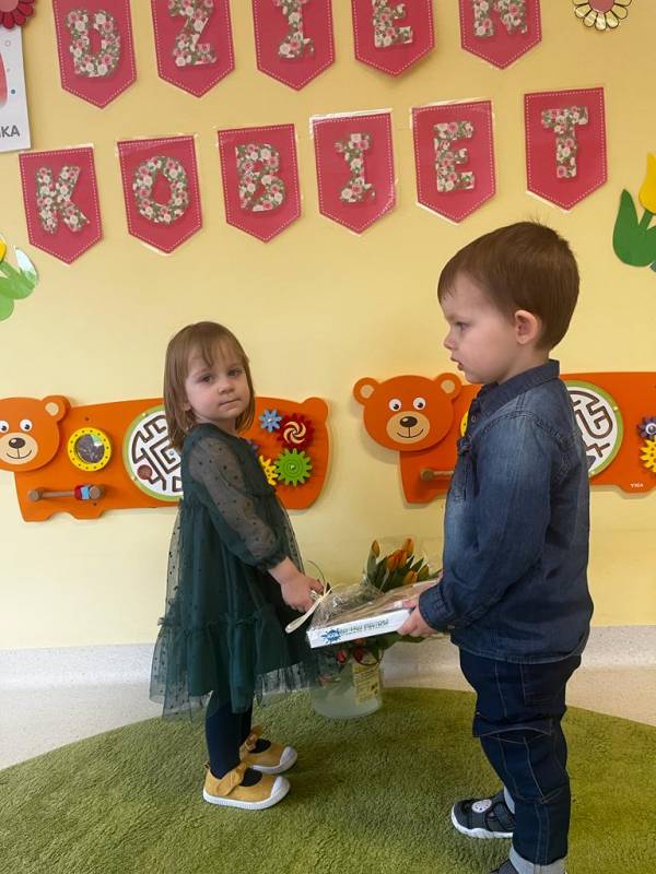 8 marca to wyjątkowy dzień, szczególnie dla wszystkich pań, zarówno tych dużych jak i małych. W tym dniu jest obchodzony Dzień Kobiet. Nasze małe dziewczynki także świętowały ten wyjątkowy dzień. W tym uroczystym dniu chłopcy z wielką elegancją złożyli swoim koleżankom, ciociom najserdeczniejsze życzenia i wręczyli drobne upominki. Na dziewczęcych buziach uśmiech gościł przez cały dzień, a chłopcy okazali się niezwykle szarmanccy i uczynni.