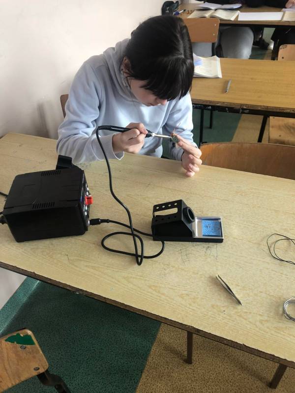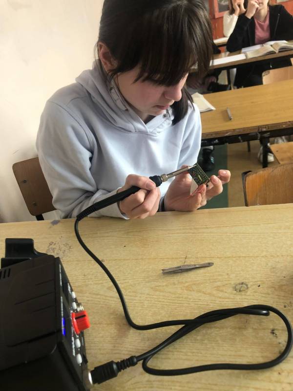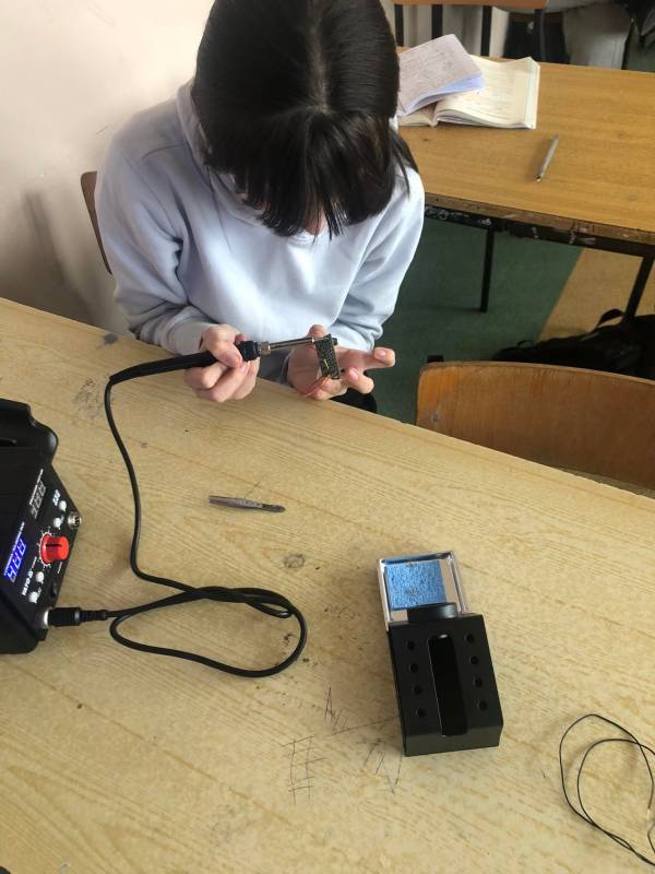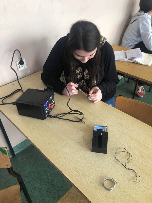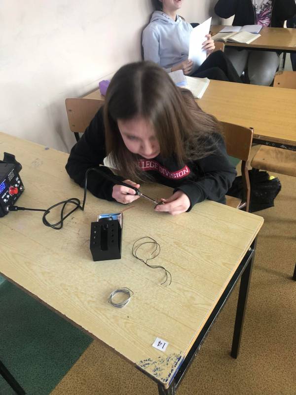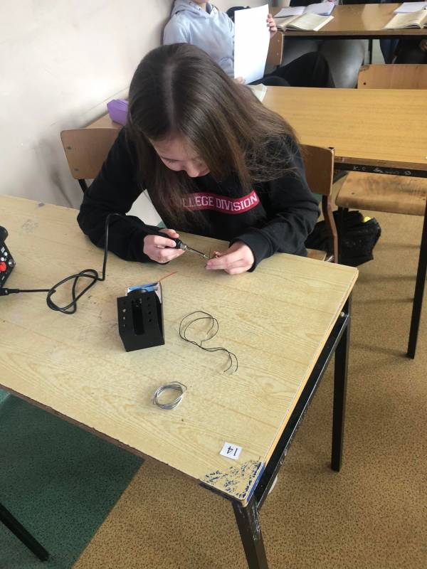 Podczas poniedziałkowej lekcji fizyki uczennice klasy 8b Szkoły Podstawowej w Gorzkowicach zapoznały się z zasadą działania stacji lutowniczej HotAir oraz podjęły swoje pierwsze próby lutowania. Urządzenie zostało zakupione w ramach programu #LaboratoriaPrzyszłości. Mimo początkowych obaw dziewczyny poradziły sobie wyśmienicie. Na pewno jeszcze kiedyś powtórzymy nasze zmagania z tym urządzeniem.