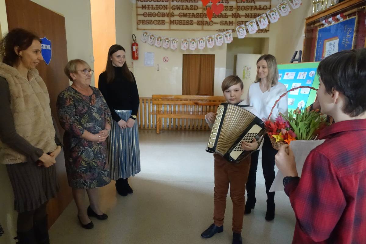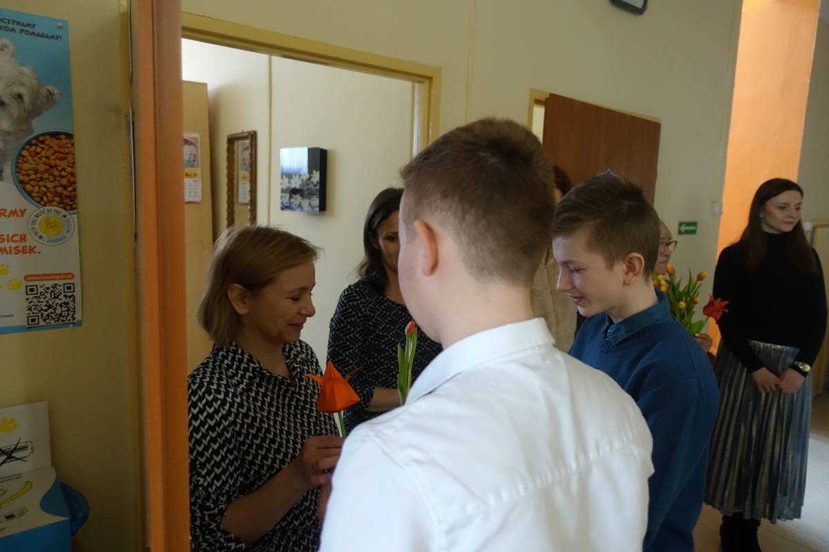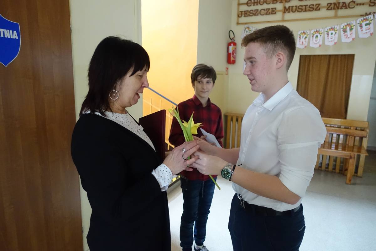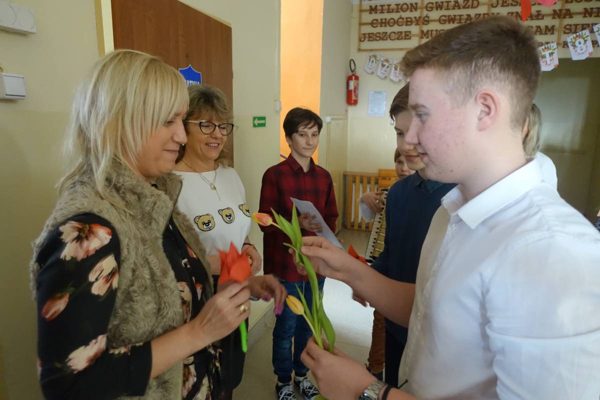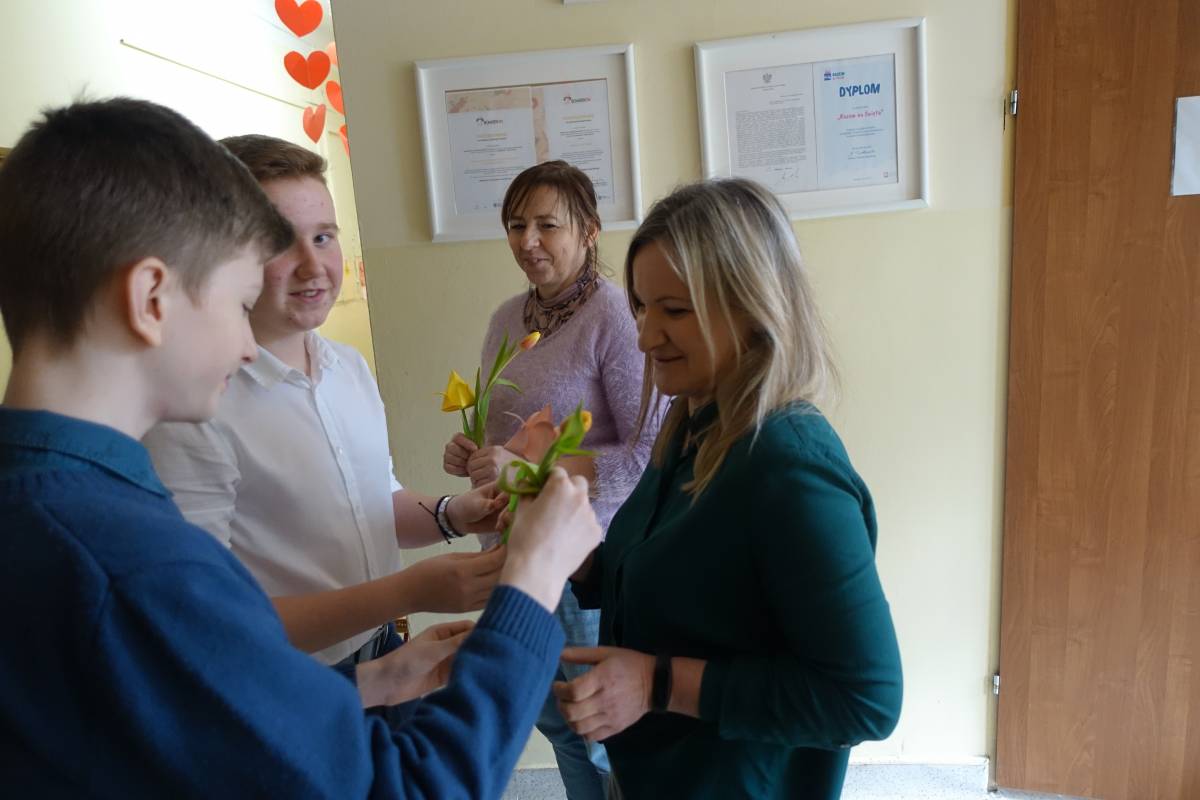 Chłopcy zadbali o każdy drobiazg, by ich koleżanki i wszystkie panie czuły się wyjątkowo. Muzyka na żywo, która towarzyszyła składaniu życzeń, wręczaniu kwiatów oraz upominków wprawiła wszystkich w doskonały nastrój.