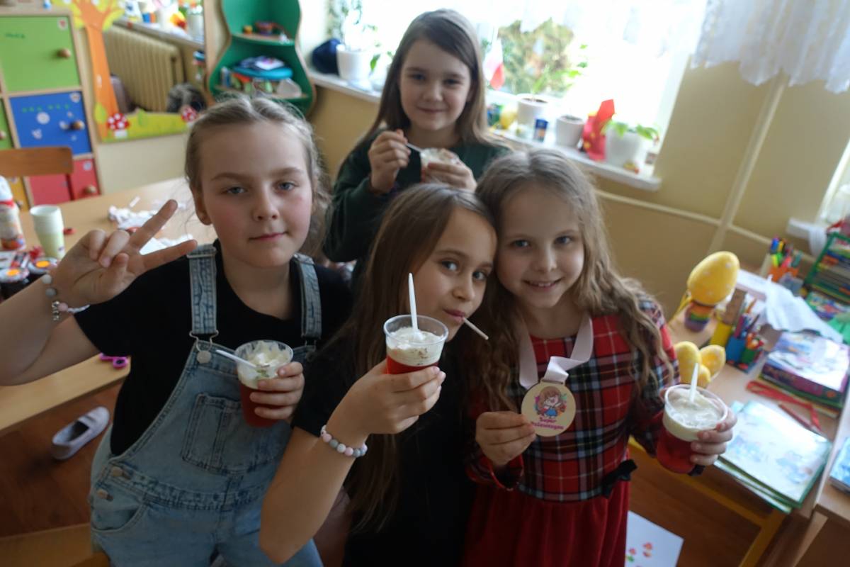 Wybory „Super Dziewczyny” przyniosły dużo radości i uśmiechu. Super Dziewczyny: Maja Włodarczyk z klasy II i Milena Pechta z klasy V otrzymały pamiątkowe medale. Nie zabrakło również słodkich przyjemności – galaretki z bitą śmietaną i owocami, którą zajadały się zarówno dziewczynki jak i chłopcy.