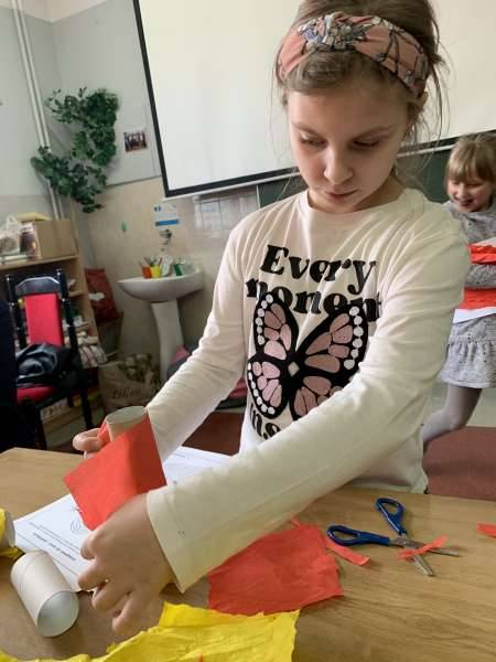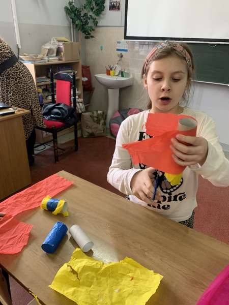 Po obejrzeniu ciekawej prezentacji, uczniowie zlokalizowali na mapie świata Australię oraz odnaleźli kontur tegoż kontynentu i przykleili na naszej specjalnej mapie. Mogli również sprawdzić swoje wiadomości, rozwiązując różnorakie quizy i zagadki związane tematycznie z omawianym kontynentem. Zajęcia uatrakcyjniła zabawa ruchowa z piłką, nawiązująca do różnic czasowych między Australią, a Polską. Didgeridoo to instrument dęty australijskich Aborygenów opisywany często jako naturalna drewniana trąbka. Idąc za przykładem również wykonaliśmy swoje własne instrumenty muzyczne.