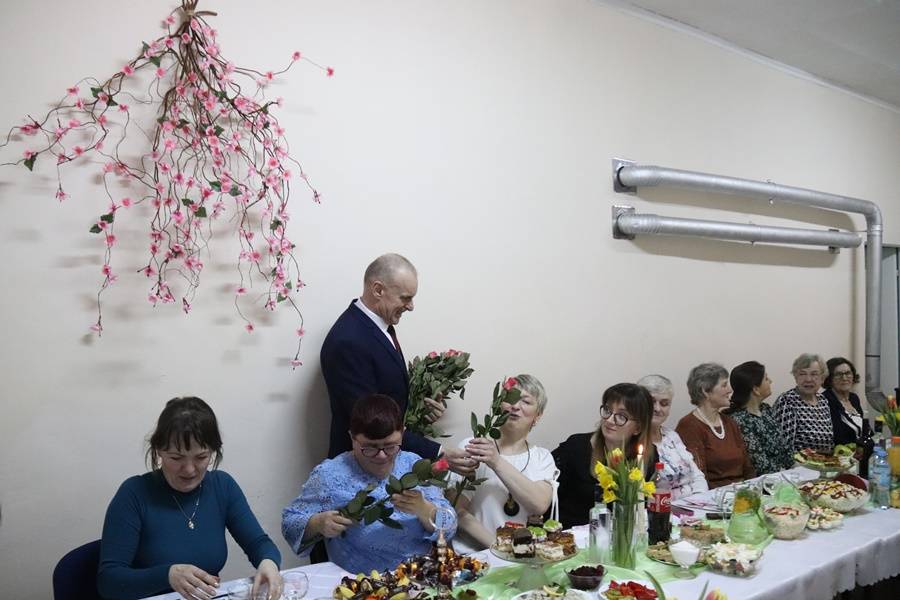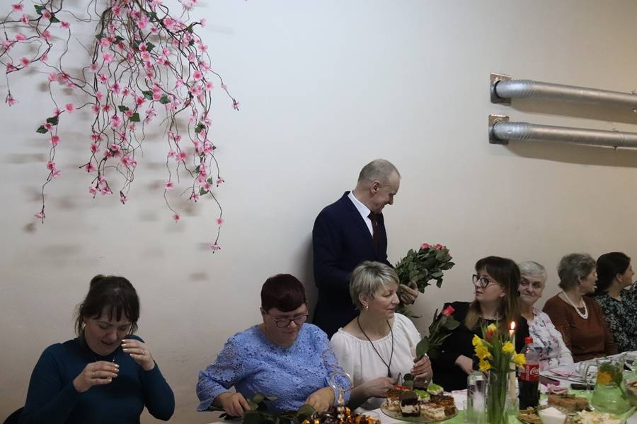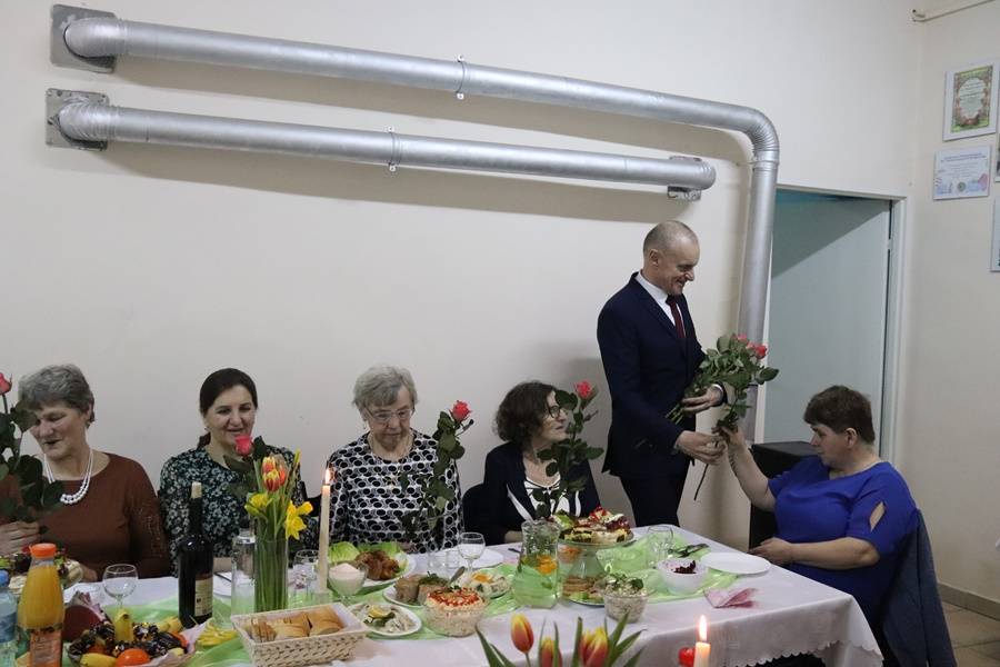 Pan Wójt podziękował za zaproszenie i złożył Paniom najserdeczniejsze życzenia z okazji ich święta. Życzył dużo radości, spełnienia marzeń i sukcesów w życiu rodzinnym i zawodowym. Następnie wszyscy przy słodkim poczęstunku spędzili miły i sympatyczny wieczór.