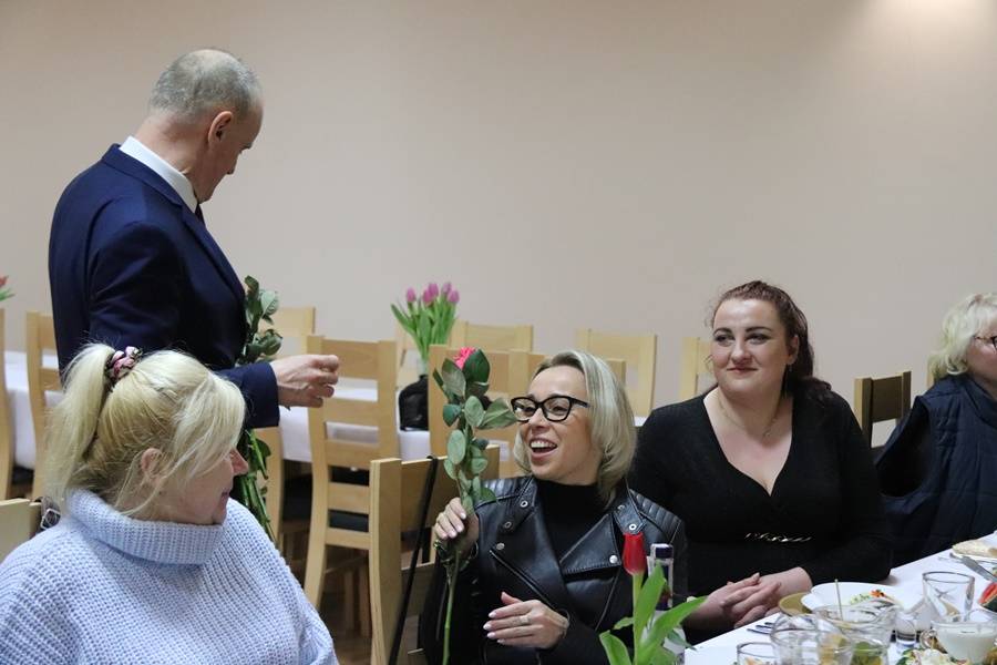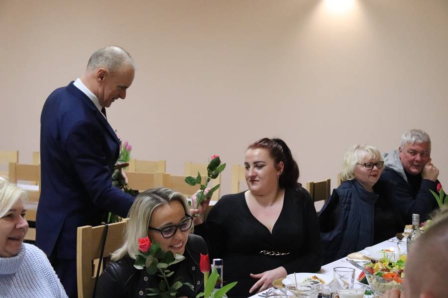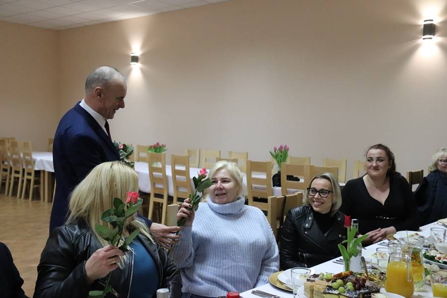 Pan Wójt życzył wszystkim paniom dużo zdrowia, radości, optymizmu i aby czuły się docenione zarówno w życiu zawodowym, jak i w życiu osobistym. Każda z pań otrzymała kwiatek. Takie spotkania są doskonałą okazją do integracji i odpoczynku od codziennych zajęć i trosk. Spotkanie przebiegło w serdecznej atmosferze.