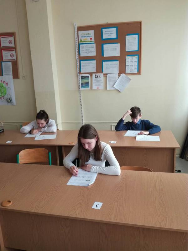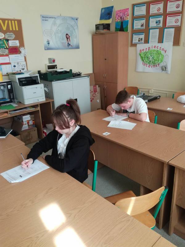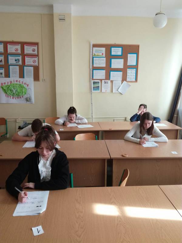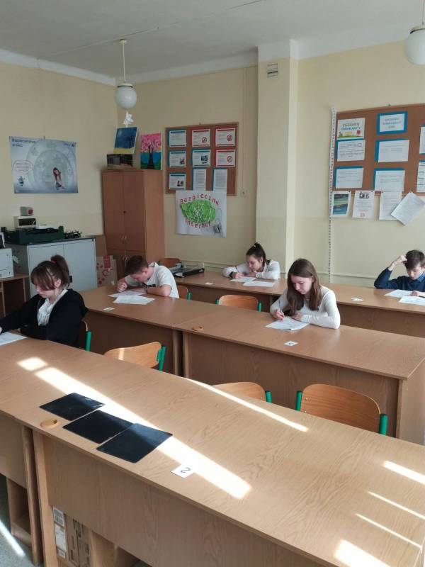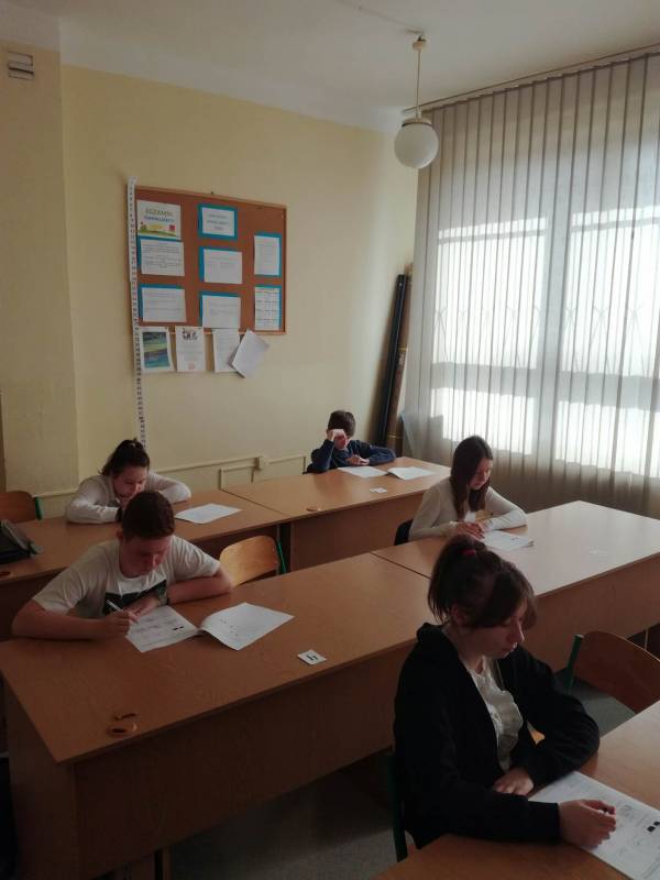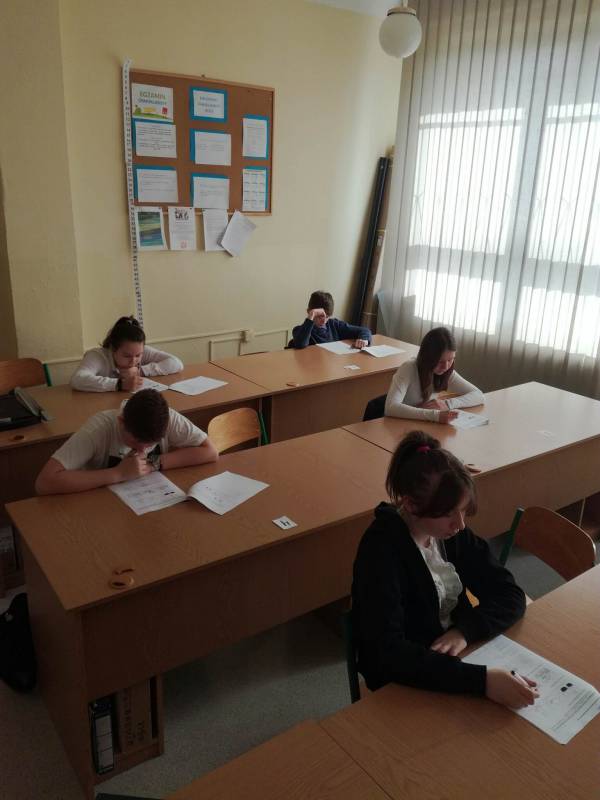 W dniach 13 – 15 marca 2023 roku uczniowie klasy 8 Szkoły Podstawowej przystąpili do próbnych egzaminów ósmoklasisty. Każdego dnia mierzyli się z innym przedmiotem. Pierwszego dnia rozwiązywali arkusz z języka polskiego, drugiego – z matematyki, by zakończyć pisanie testem z języka angielskiego w trzecim dniu.