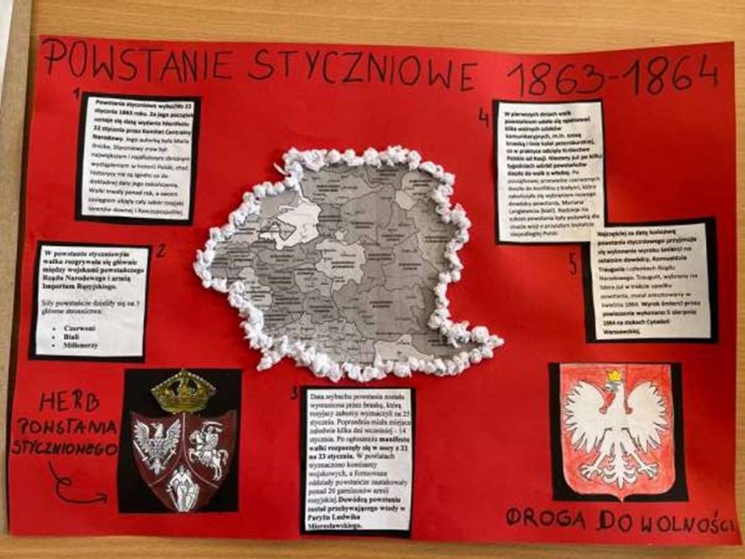 Uczniowie z klas 1-3 Szkoły Podstawowej im. Henryka Sienkiewicza w Gorzkowicach wzięli udział w konkursie plastycznym „Drogi do wolności”, którego organizatorem jest Miejska Biblioteka Publiczna w Piotrkowie Trybunalskim. Zadaniem uczniów było wykonanie pracy plastycznej, nawiązującej do 160. rocznicy wybuchu Powstania Styczniowego.