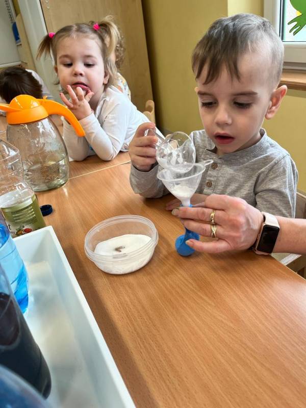 22 marca w naszym Klubiku odbył się Dzień Wody. W tym dniu wspólnie odkrywaliśmy tajemnice wody i jej znaczenie dla życia ludzi, zwierząt i roślin. Postanowiliśmy połączyć zajęcia edukacyjne ze świetną zabawą. W czasie zabaw badawczych bliżej przyjrzeliśmy się wodzie. Badaliśmy rozpuszczalność różnych substancji w wodzie oraz co pływa, a co tonie. Rozwiązywaliśmy zagadki, rozpoznawaliśmy odgłosy deszczu, strumyka, burzy, morza…,. Po tych ciekawych zajęciach dzieci wiedzą, jak ważną rolę odgrywa woda w życiu człowieka i rozumieją, dlaczego i w jaki sposób należy oszczędzać wodę.