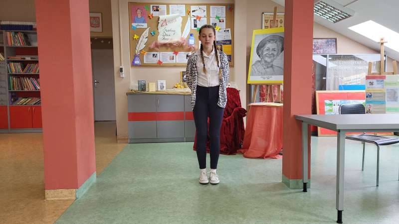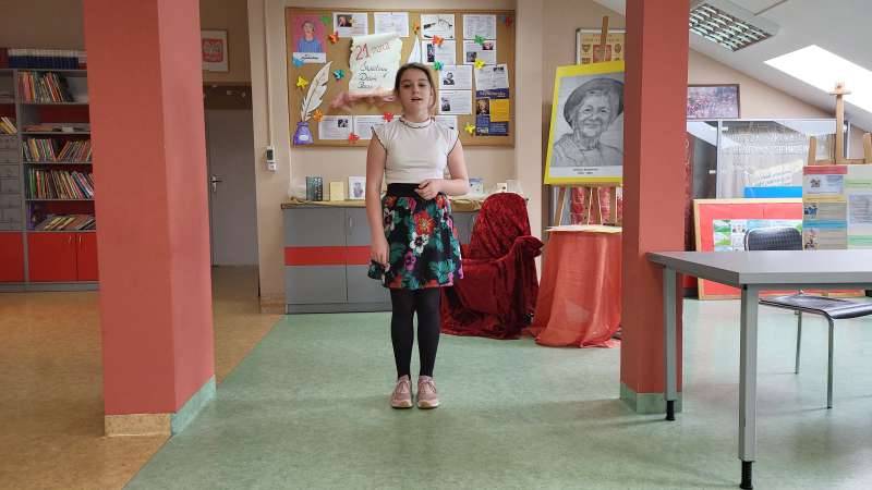 W konkursie mogli wziąć udział uczniowie klas piątych, szóstych i siódmych. Ich zadaniem było zaprezentowanie zdolności recytatorskich. Najpiękniej zaprezentowały się uczennice: Natalia Stasiak kl. 6C, Anna Korzela kl. 6C, Anna Łęgowiak kl. 6C oraz Maja Korpas kl. 6c. Nagrody i dyplomy zostaną rozdane na uroczystym apelu szkolnym. Gratulujemy zwyciężczyniom i życzymy wielu niezapomnianych chwil w odbiorze utworów poetyckich.