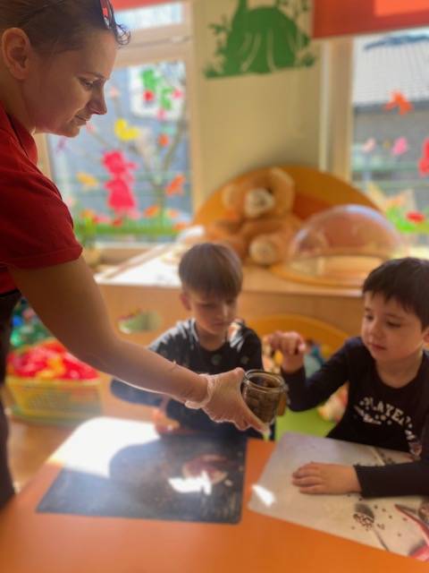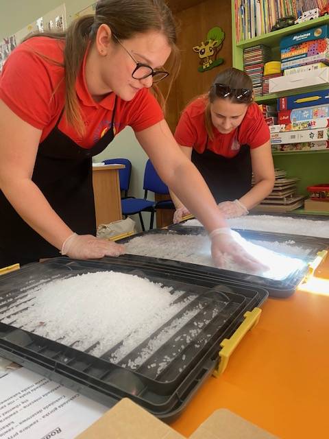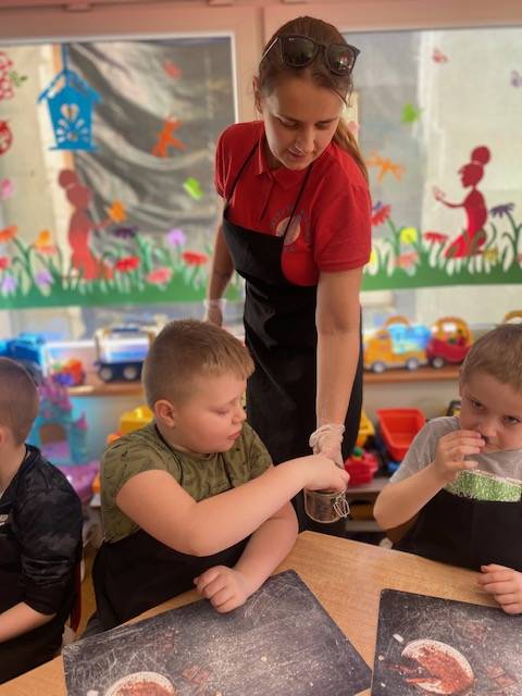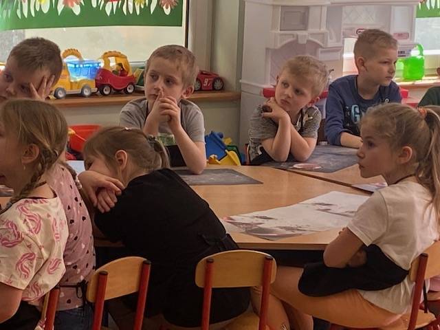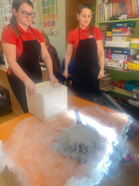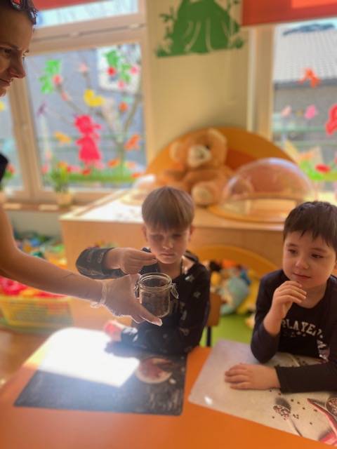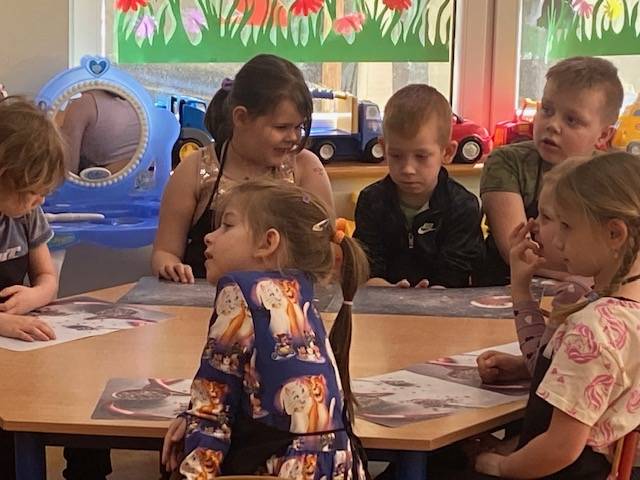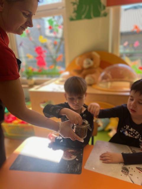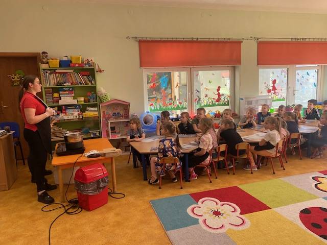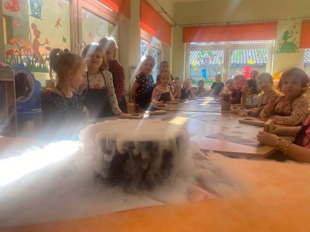 Dzieci mogły również obserwować dodatkowe doświadczenia prezentowane przez panie. Warsztaty prowadziła firma Wizyta Klauna Żaka. Za zorganizowanie warsztatów dla naszych przedszkolaków dziękujemy rodzicom z Rady Rodziców.