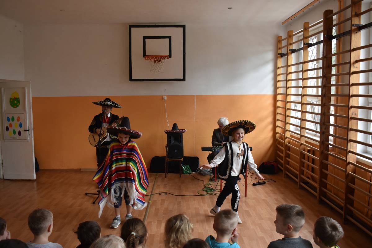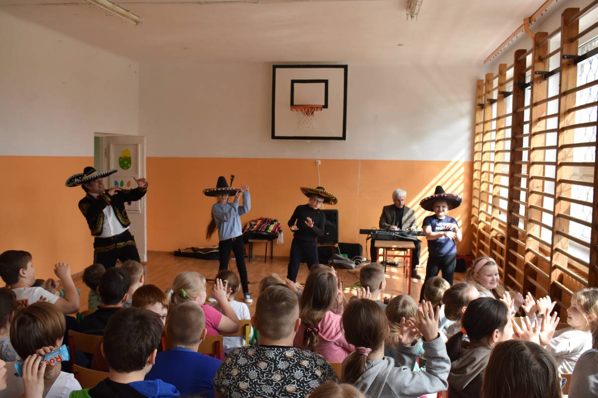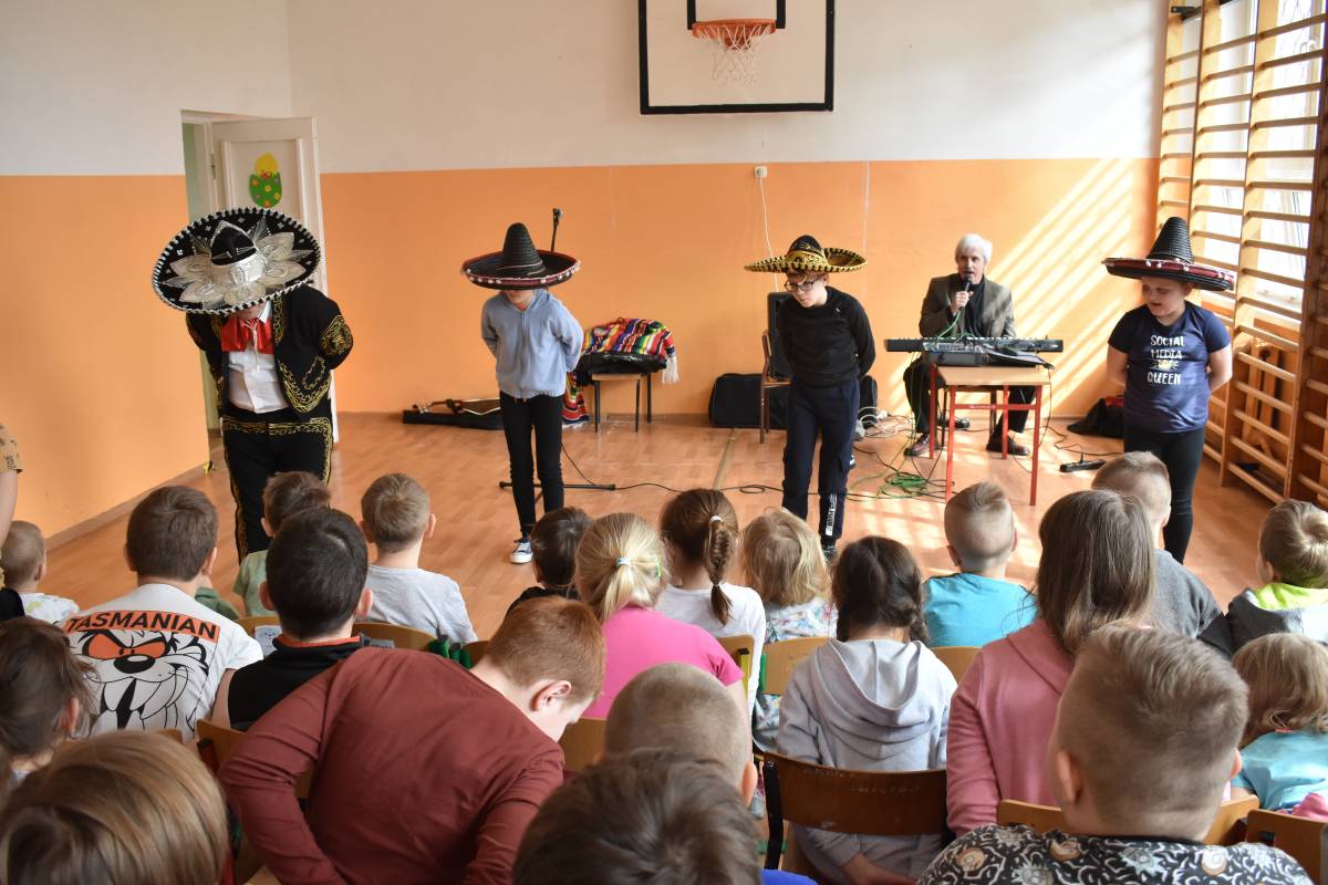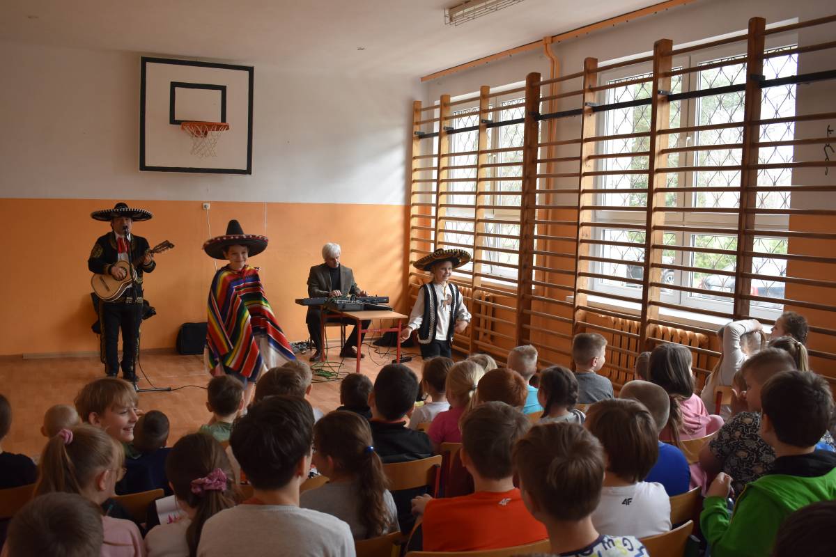 Każdy wie, że podróże kształcą i dlatego często marzymy, aby znaleźć się w jakimś pięknym zakątku świata. Tak też się stało 30 marca w Szkole Podstawowej w Krzemieniewicach. Na chwilę przenieśliśmy się do Meksyku za sprawą pana H. Kowalczyka i jego gościa p. Rafaela – meksykańskiego mariachi. Meksykańscy muzycy są jednym z symboli kraju, ich muzyka rozbrzmiewa na ulicach od rana do wieczora: między bazarowymi straganami, w autobusie, na plaży, podczas festynu, lunchu czy wieczornej potańcówki w parku. Pan Rafael zapoznał nas ze swoją muzyką, charakterystycznym instrumentem oraz pięknym kolorowym strojem. Jak zwykle nie zabrakło zabaw muzyczno- tanecznych oraz wesołych konkursów. Swój talent wokalny mogliśmy wykazać śpiewając wspólnie meksykańską przyśpiewkę „La Cucaracha”.