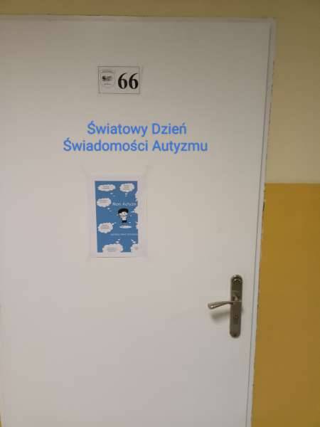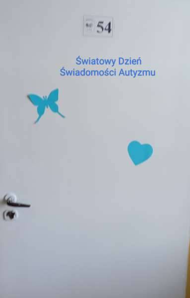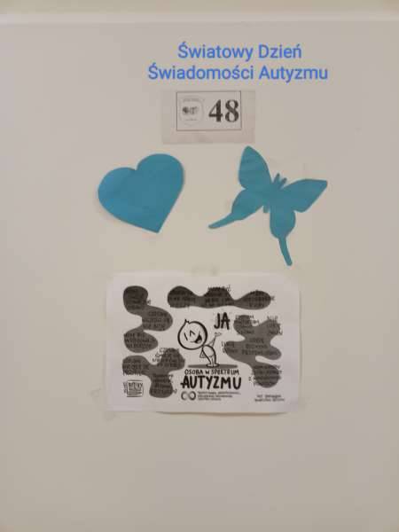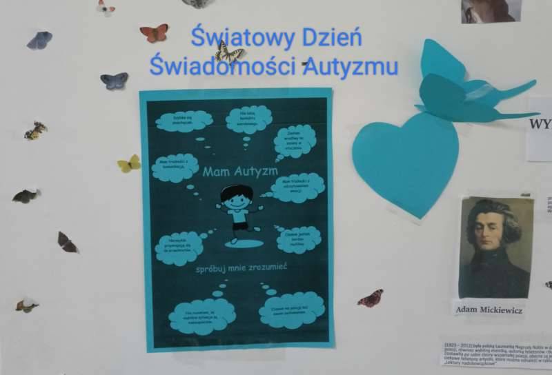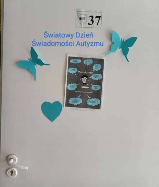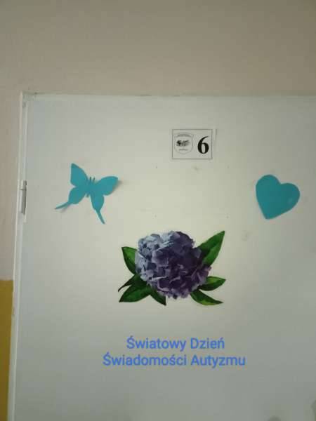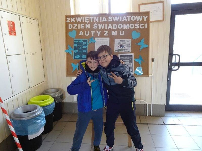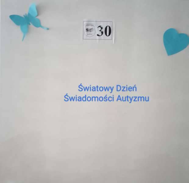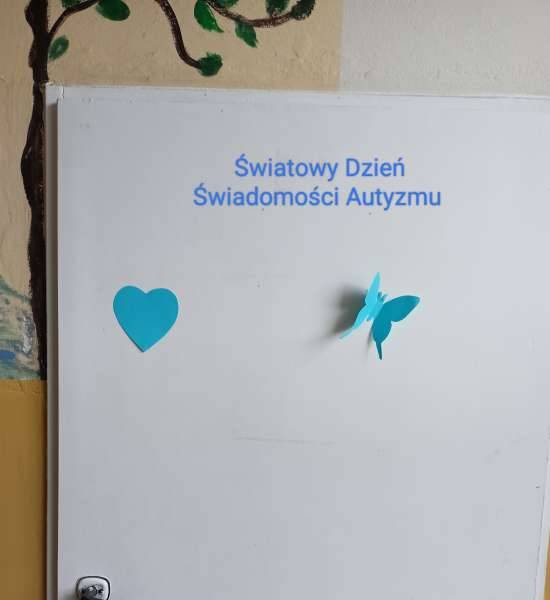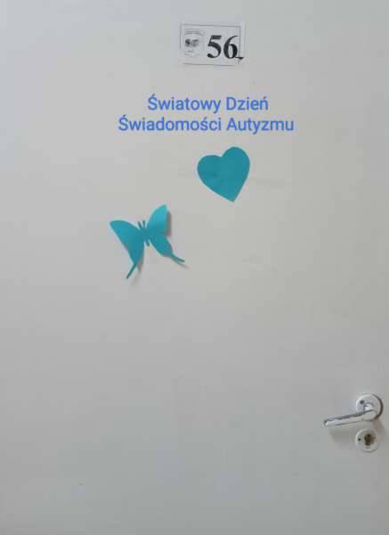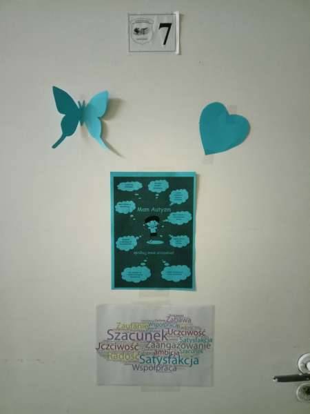 Na drzwiach klas uczniowie umieścili symbole tego dnia: czyli niebieskie serca i motyle, a także plakaty informujące o spektrum autyzmu.
