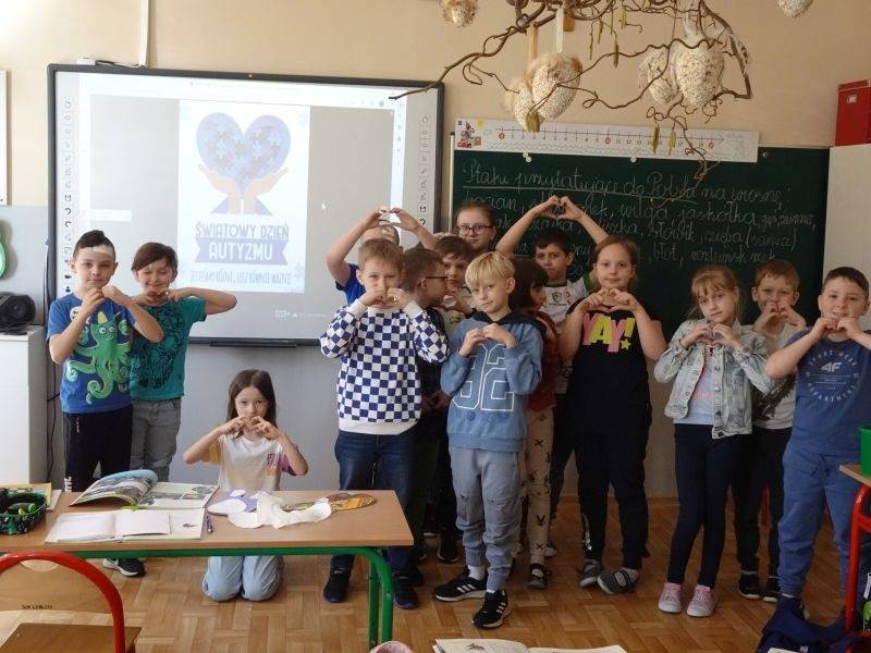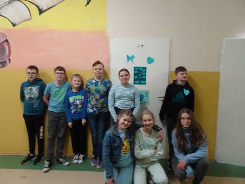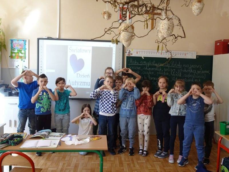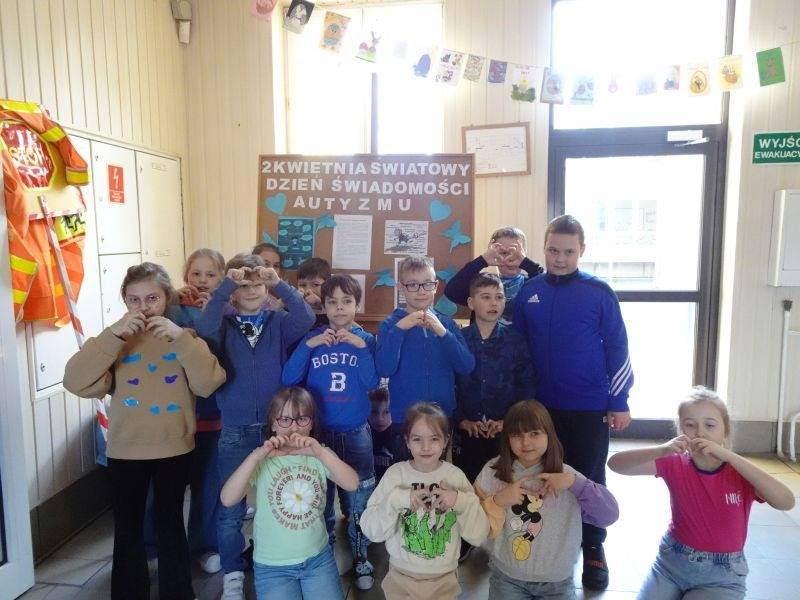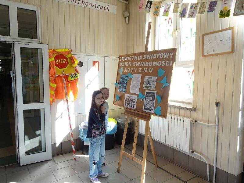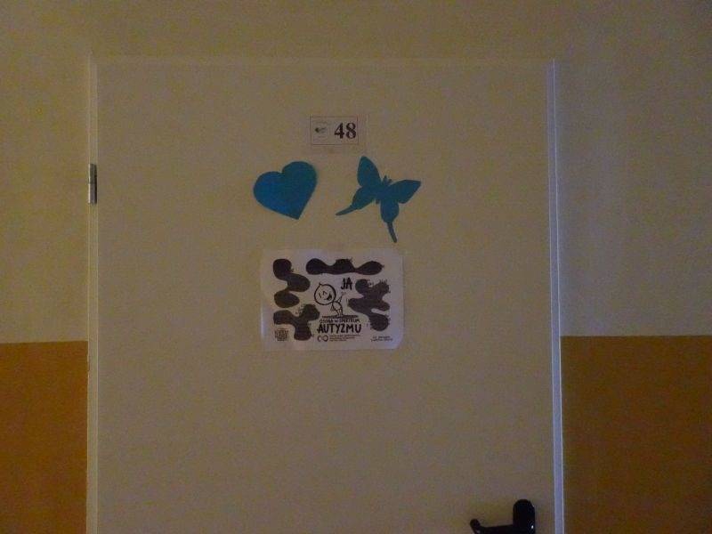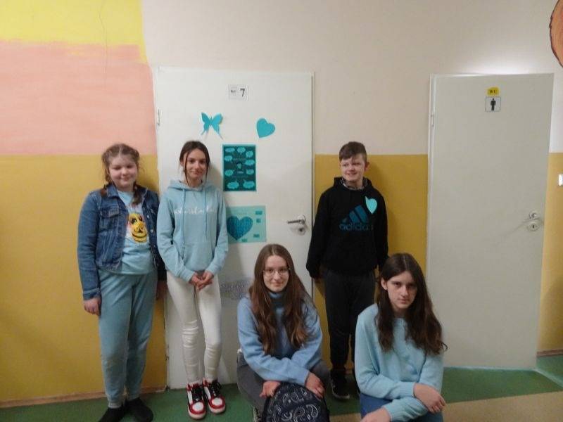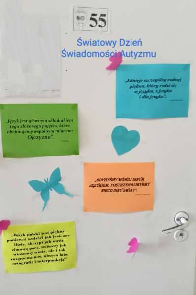 Na drzwiach klas uczniowie umieścili symbole tego dnia: czyli niebieskie serca i motyle, a także plakaty informujące o spektrum autyzmu.