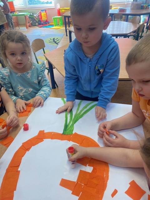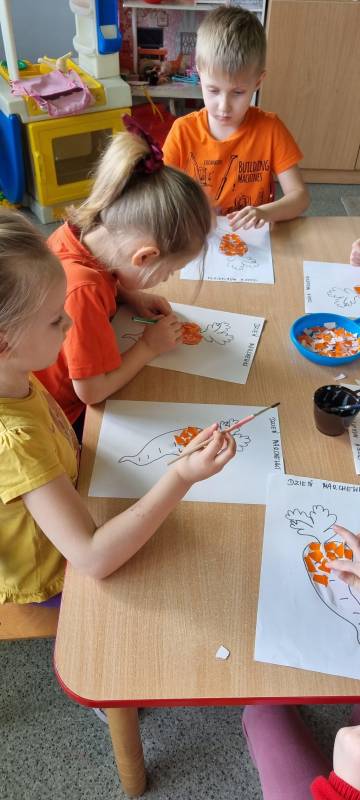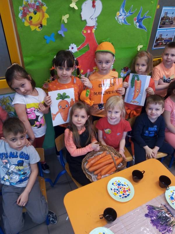 Dnia 4 kwietnia 2023 roku w ramach realizacji ogólnopolskiego programu „Kubusiowi Przyjaciele Natury”, dzieci z Przedszkola Samorządowego w Gorzkowicach obchodziły Dzień Marchewki. Celem zajęć było kształtowanie nawyków prozdrowotnych poprzez zabawę, doskonalenie umiejętności pracy w grupie, poszerzanie wiedzy na temat marchwi i jej odmian. Świętując ten dzień dzieci z wszystkich grup były ubrane w kolorze pomarańczowym. Przedszkolaki przyniosły piękne okazy marchewek, które były wykorzystane w trakcie zabaw, piosenek, zagadek, konkursów i prac plastycznych. Największą radość sprawiła wszystkim degustacja marchewkowych potraw i soków. Ten dzień na długo pozostanie nam w pamięci. Dziękujemy bardzo serdecznie rodzicom za poświęcony czas i przygotowanie marchewkowych pyszności dla naszych przedszkolaków.