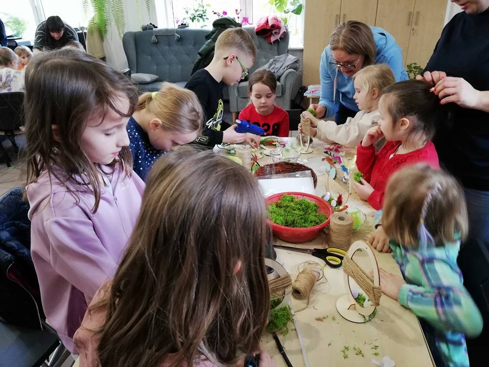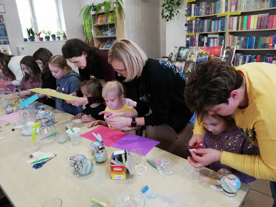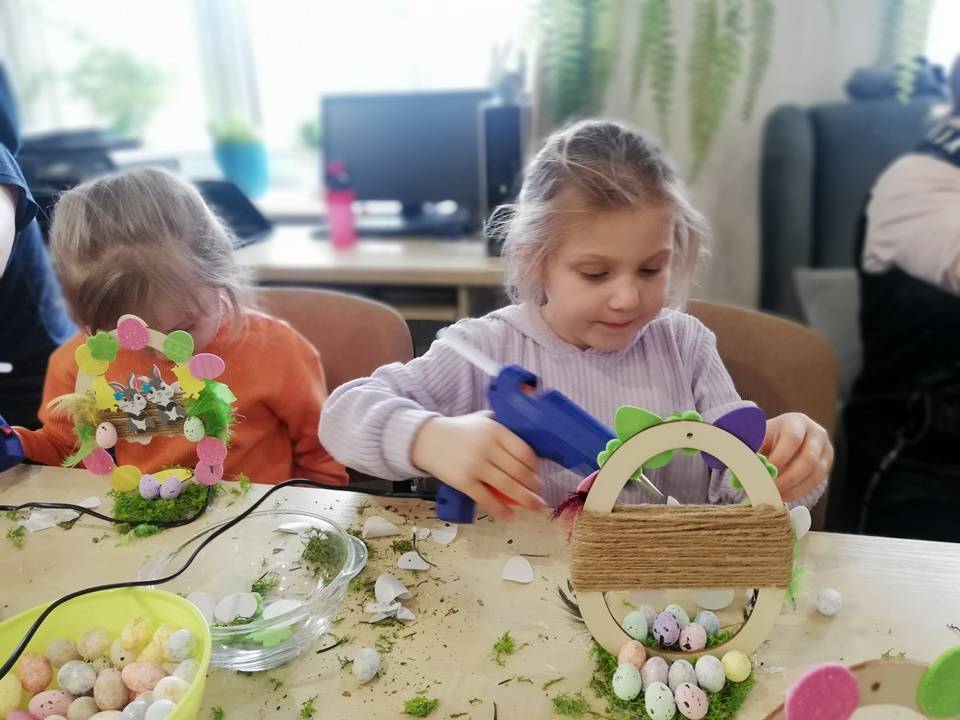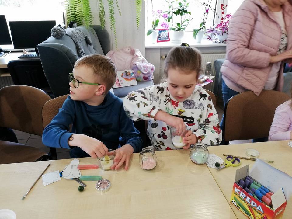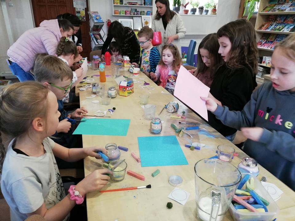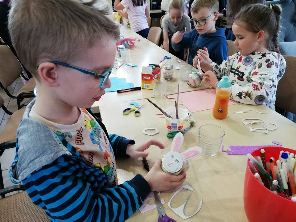 Święta Wielkanocne to radosny czas, na który dzieci czekają z niecierpliwością. To święta pełne tradycji i zwyczajów, które chcemy przekazywać naszym młodszym pokoleniom. Z tej okazji w bibliotece w Gorzkowicach zorganizowałyśmy dla dzieci warsztaty tworzenia świątecznych stroików i kolorowych zajączków. W ruch poszły kolorowe wstążki, jajka, kurki, sól, kreda i wiele innych ciekawych, a czasem zaskakujących materiałów. Wszystkie prace zostały wykonane z dużą starannością i fantazją, bo uczestnicy naszych warsztatów wiedzą, że najpiękniejsze ozdoby to te, które wykonamy własnoręcznie.