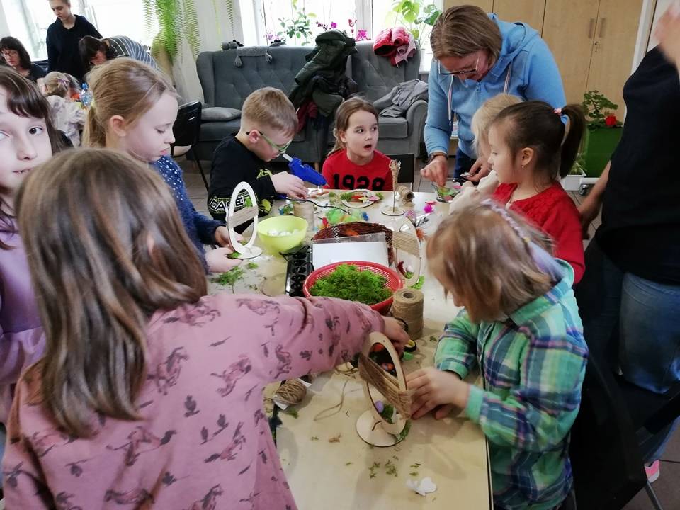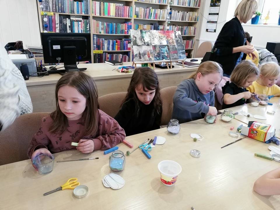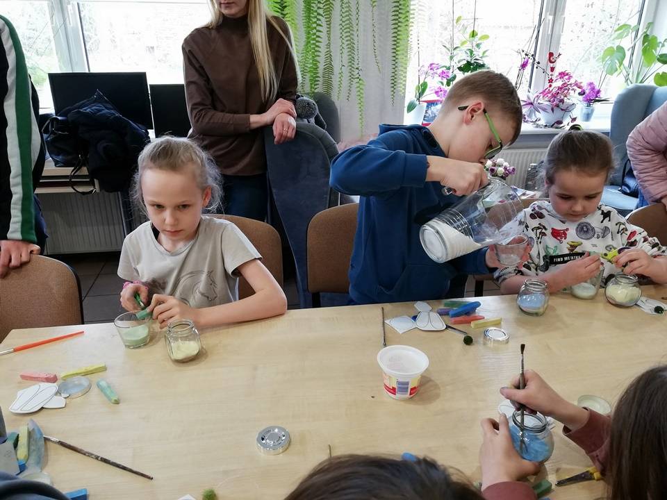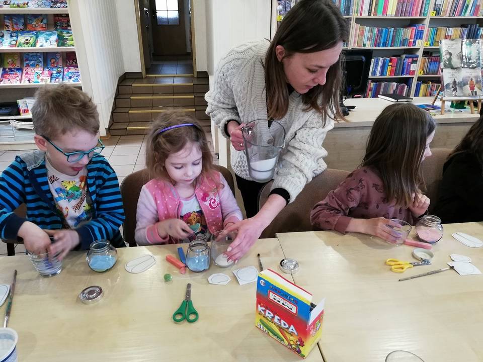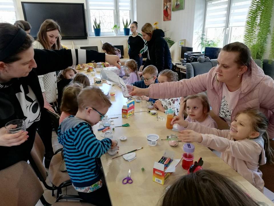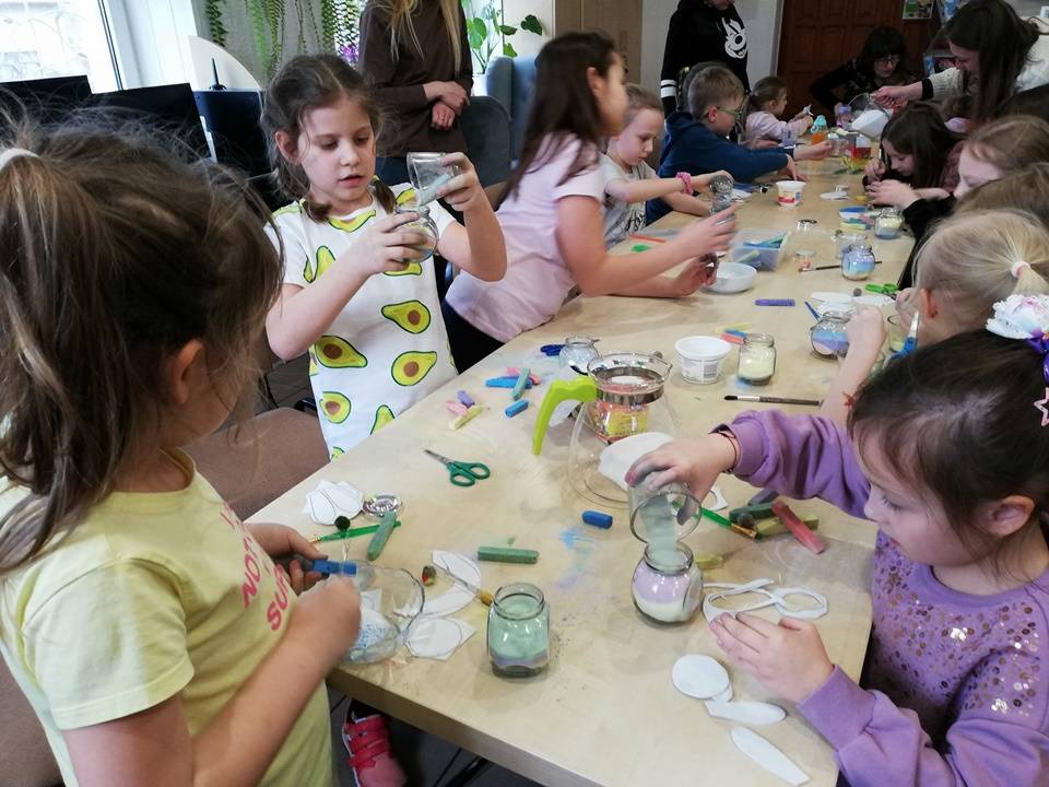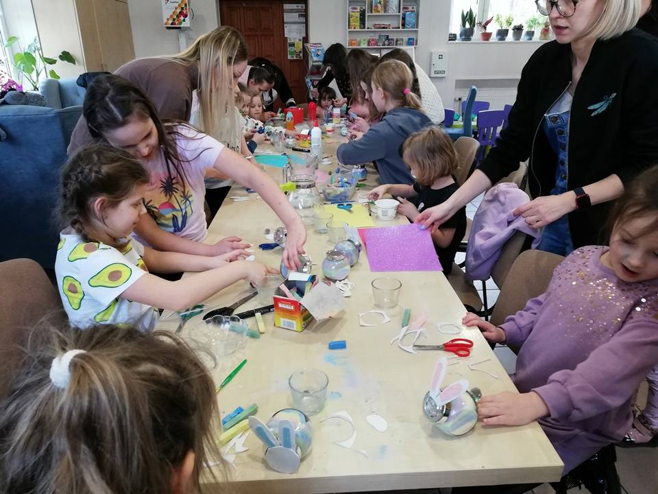 Święta Wielkanocne to radosny czas, na który dzieci czekają z niecierpliwością. To święta pełne tradycji i zwyczajów, które chcemy przekazywać naszym młodszym pokoleniom. Z tej okazji w bibliotece w Gorzkowicach zorganizowałyśmy dla dzieci warsztaty tworzenia świątecznych stroików i kolorowych zajączków. W ruch poszły kolorowe wstążki, jajka, kurki, sól, kreda i wiele innych ciekawych, a czasem zaskakujących materiałów. Wszystkie prace zostały wykonane z dużą starannością i fantazją, bo uczestnicy naszych warsztatów wiedzą, że najpiękniejsze ozdoby to te, które wykonamy własnoręcznie.