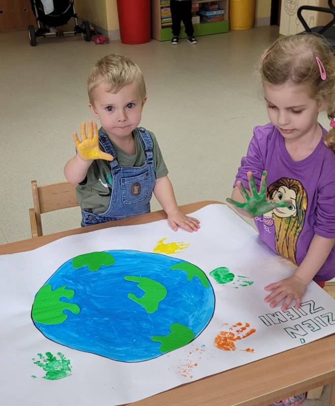Z okazji Międzynarodowego Dnia Ziemi w naszym Klubiku odbyły się zajęcia, które miały na celu zrozumienie przez dzieci znaczenia ochrony przyrody. Maluszki dowiedziały się o niebezpieczeństwach grożących środowisku przyrodniczemu ze strony człowieka. Poznały ekologiczny sposób wyrzucania śmieci czyli segregacji odpadów. Najważniejszy wniosek z naszych zajęć – wszyscy ludzie muszą dbać o środowisko naturalne.