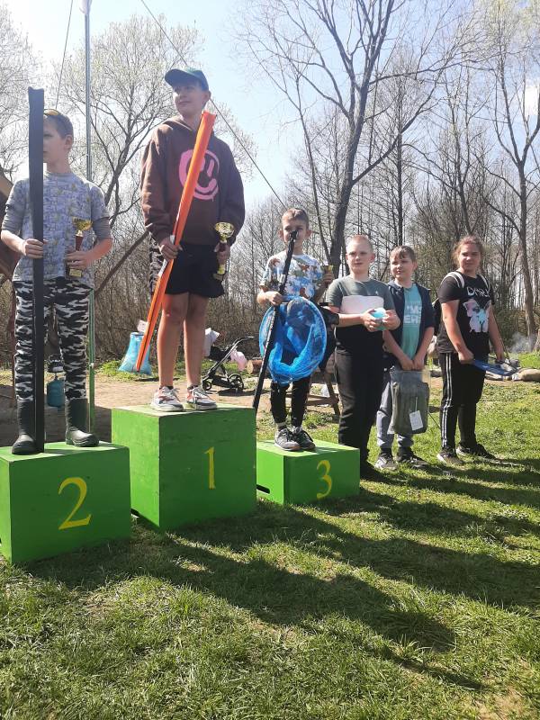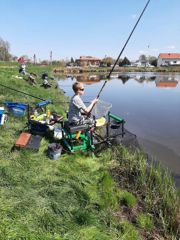 z półmetrowym karpiem. Niestety, lądowanie ryby do podbieraka odbyło się już po sygnale oznaczającym koniec zawodów. Ryba nie mogła zostać uznana. Ogólnie bardzo dobra impreza, świetna pogoda, miła atmosfera i dobra zabawa, a o to przede wszystkim chodzi. Do zobaczenia nad wodą. Zapraszamy dzieciaki do szkółki, być może wędkarstwo okaże się ich życiową pasją.