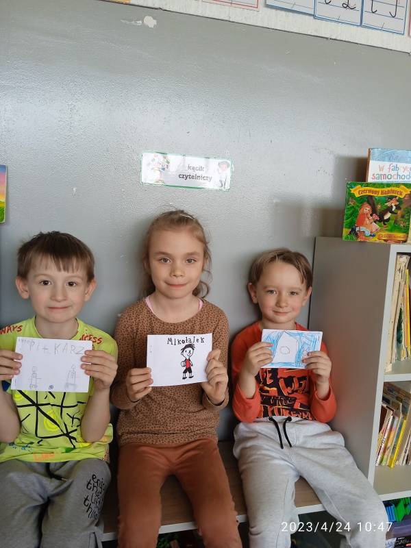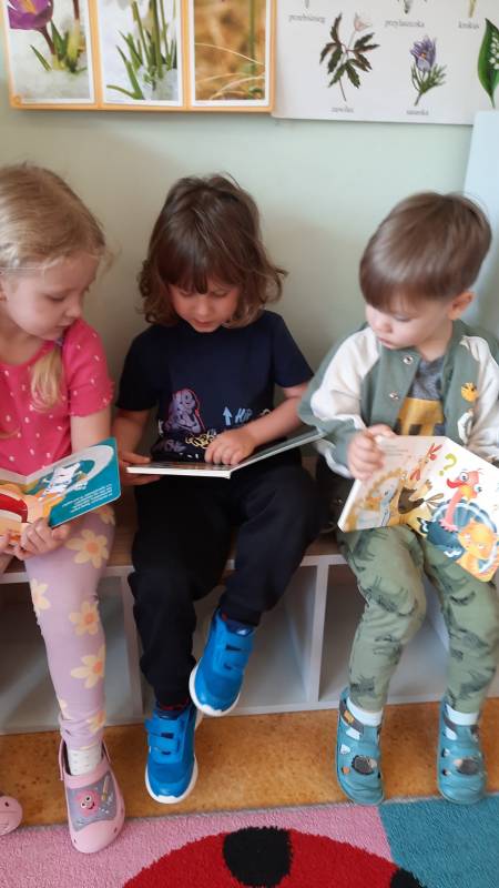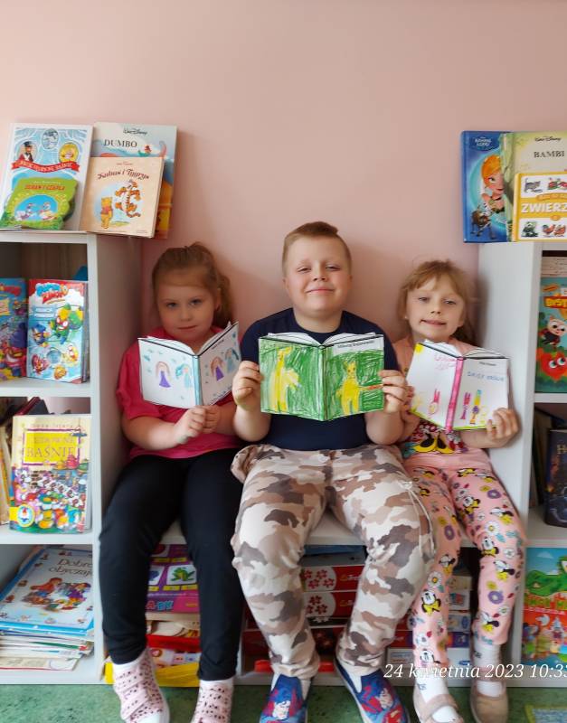 Dzieci zaprezentowały rówieśnikom , swoje ulubione książeczki, przyniesione z domu, opowiedziały historie swoich ulubionych bohaterów literackich. Następnie przygotowały piękną wystawę, którą wszyscy mogli podziwiać. Wykonały również wspólną, grupową książeczkę, projektując okładkę, ilustrując ją oraz łącząc wszystko w jedną całość.