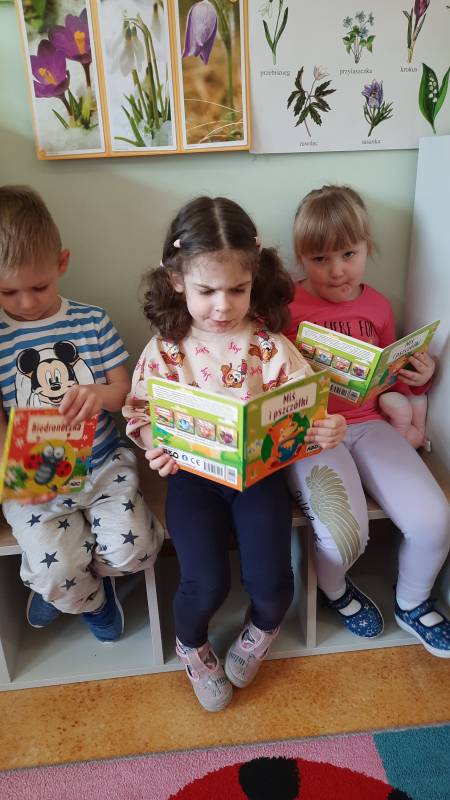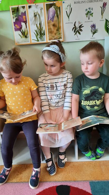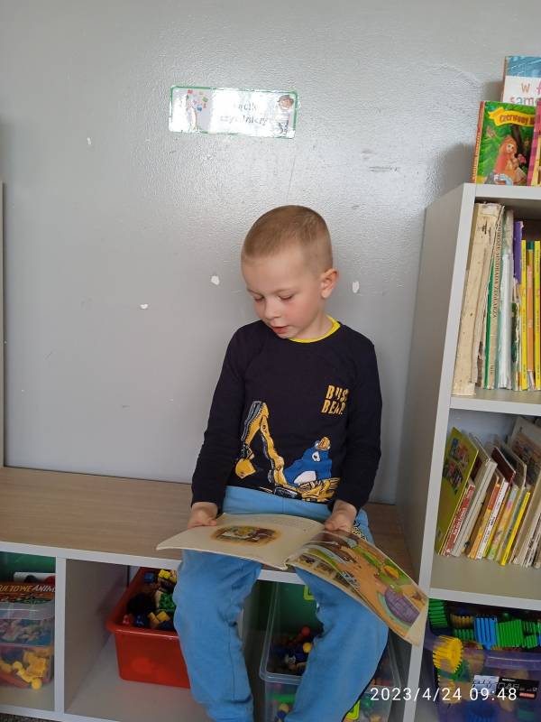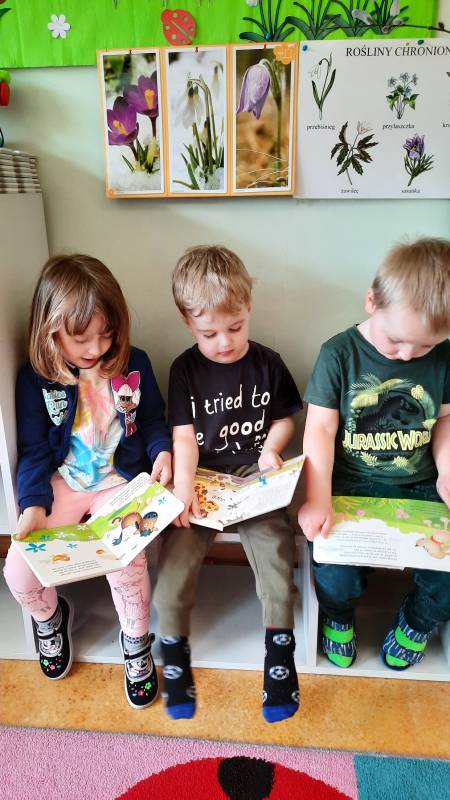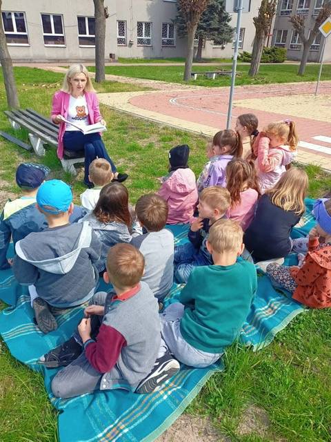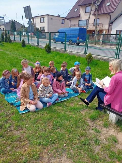 Przed południem dzieci wybrały się na wycieczkę, podczas której odbyło się czytanie pod chmurką. Starsze dzieci mogły pochwalić się umiejętnością pięknego czytania. Natomiast młodsze słuchały z wielkim zainteresowaniem bajek oraz opowiadań w otoczeniu pięknej wiosennej przyrody.