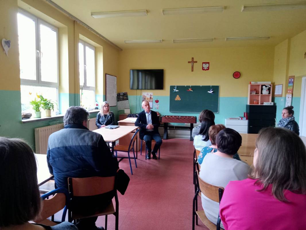 25 kwietnia 2023r., Pan Alojzy Włodarczyk Wójt Gminy Gorzkowice spotkał się z pracownikami obsługi i administracji Szkoły Podstawowej w Gorzkowicach i APO.