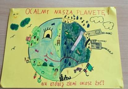 Z okazji tego święta, w naszej szkole odbył się konkurs plastyczny „ Ocalmy naszą planetę”, zorganizowany w dwóch kategoriach: klasy 1 – 4 i klasy 5 - 8.