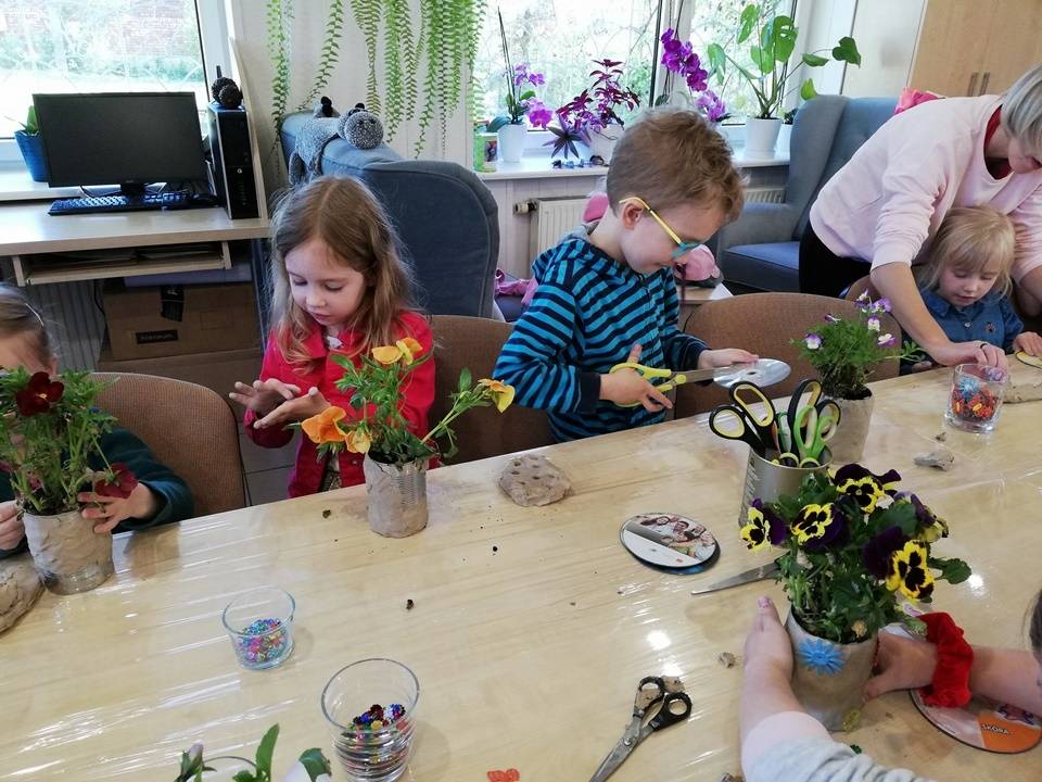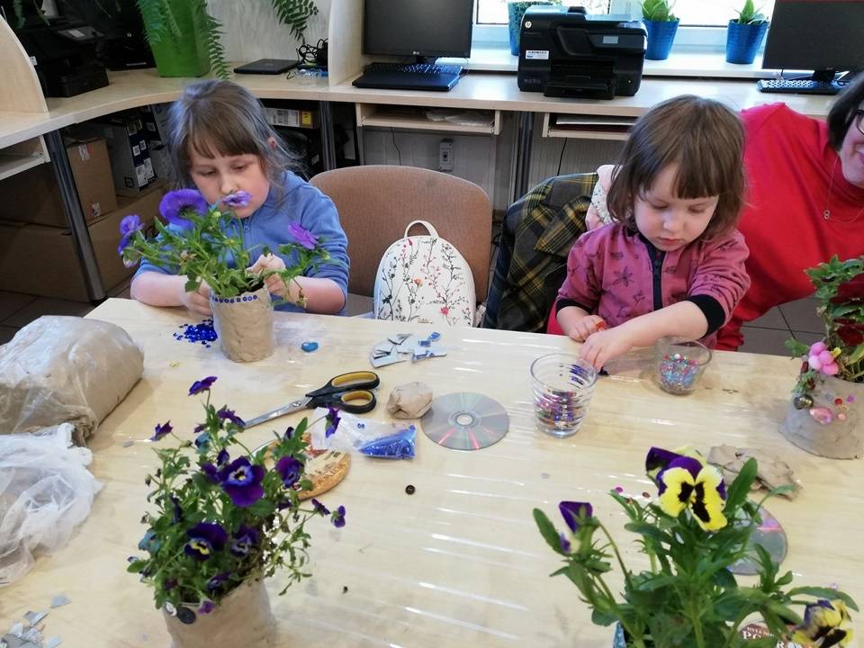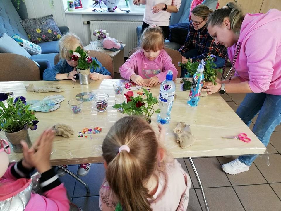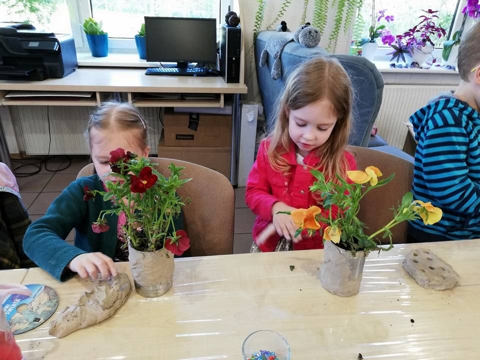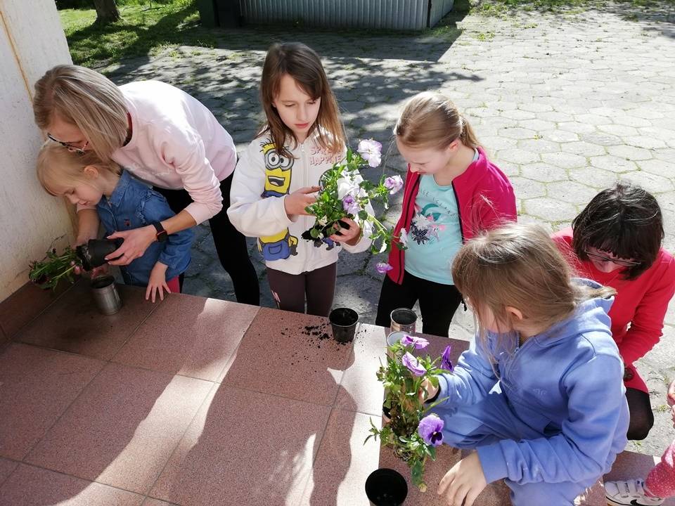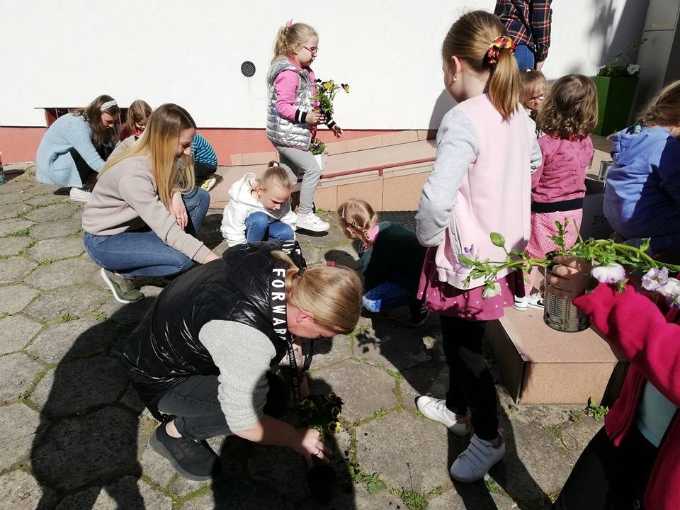 Słoneczna pogoda pozwoliła nam zrealizować część naszych artystyczno-ogrodniczych warsztatów dla dzieci w przestrzeni woków biblioteki w Gorzkowicacach. W pierwszym etapie dzieci przesadzały rośliny do puszek. W drugim, zgodnie z własną wyobraźnią tworzyły mozaikowe doniczki. Na kolejne spotkanie zapraszamy we wtorek, 23 maja.