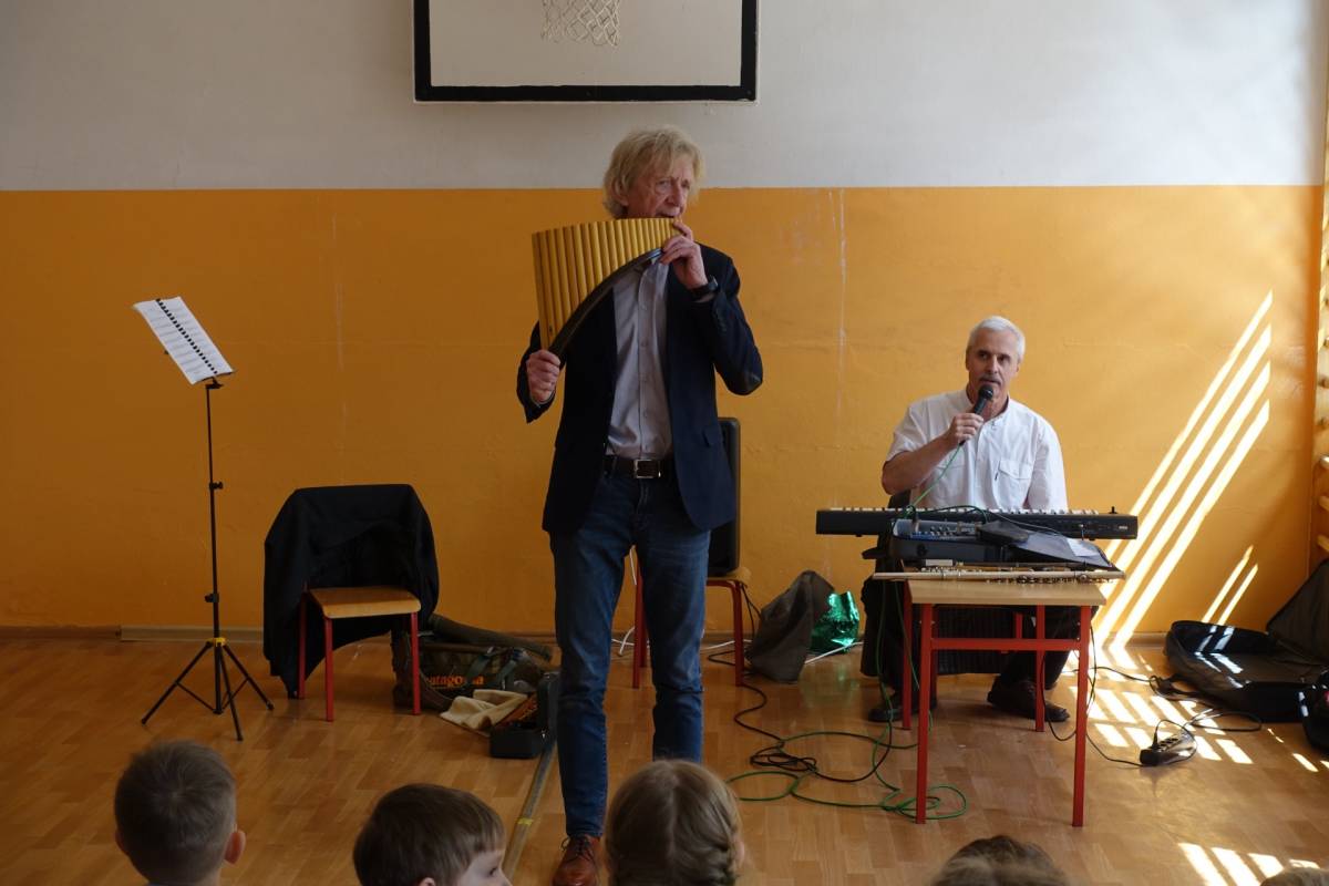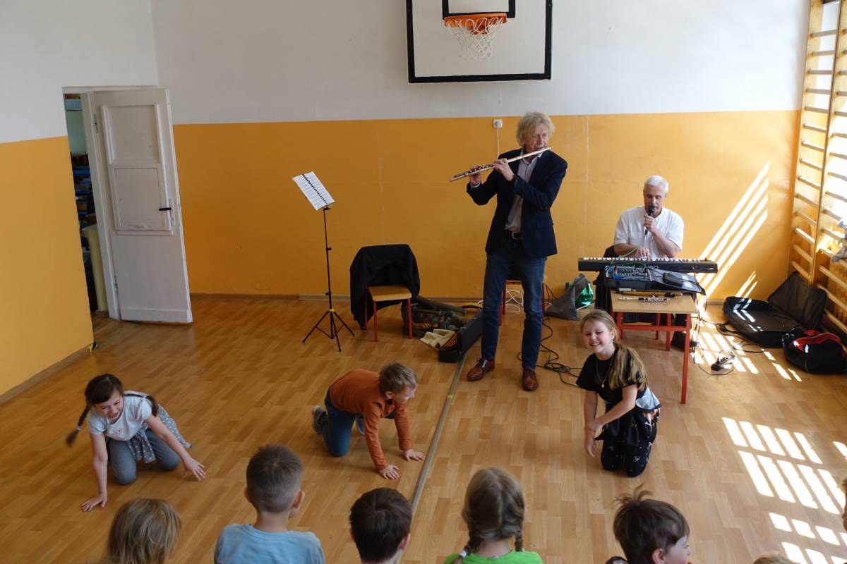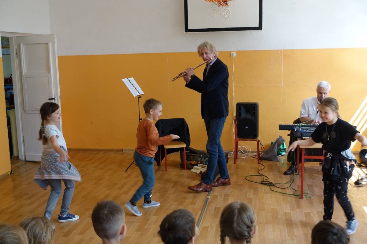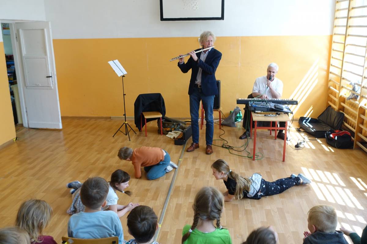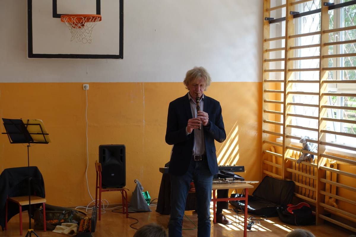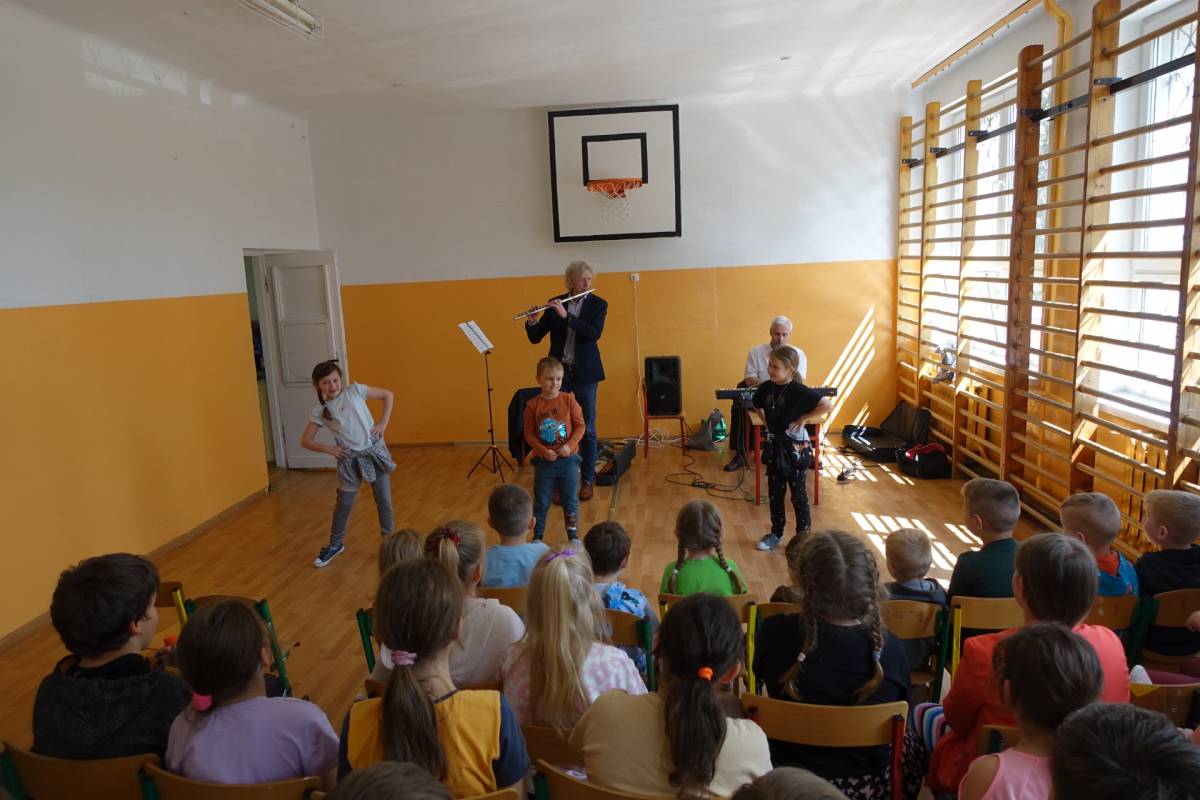 Prowadzący zaprezentowali nam instrumenty dęte drewniane, zapoznali z ich rodzajami i budową. Mieliśmy przyjemność posłuchania brzmienia fletów z różnych części świata m.in. fletu chińskiego, brazylijskiego czy szkockiego. Wysłuchaliśmy wielu znanych utworów pochodzących z filmów Walta Disneya tj. ,,Król Lew”, ,,Kraina Lodu”, ,,Piękna i Bestia”, ,,Aladyn”, ,,Toy Story” czy ,,Myszka Miki” .
