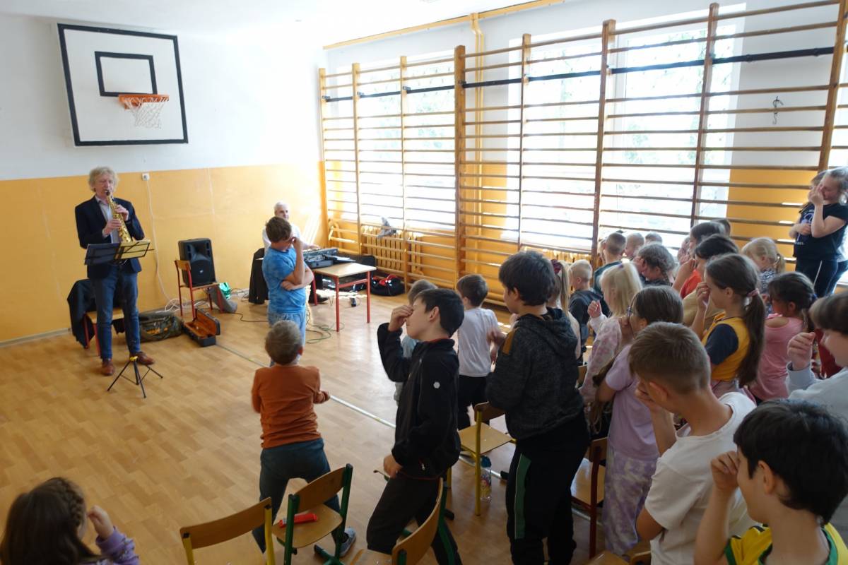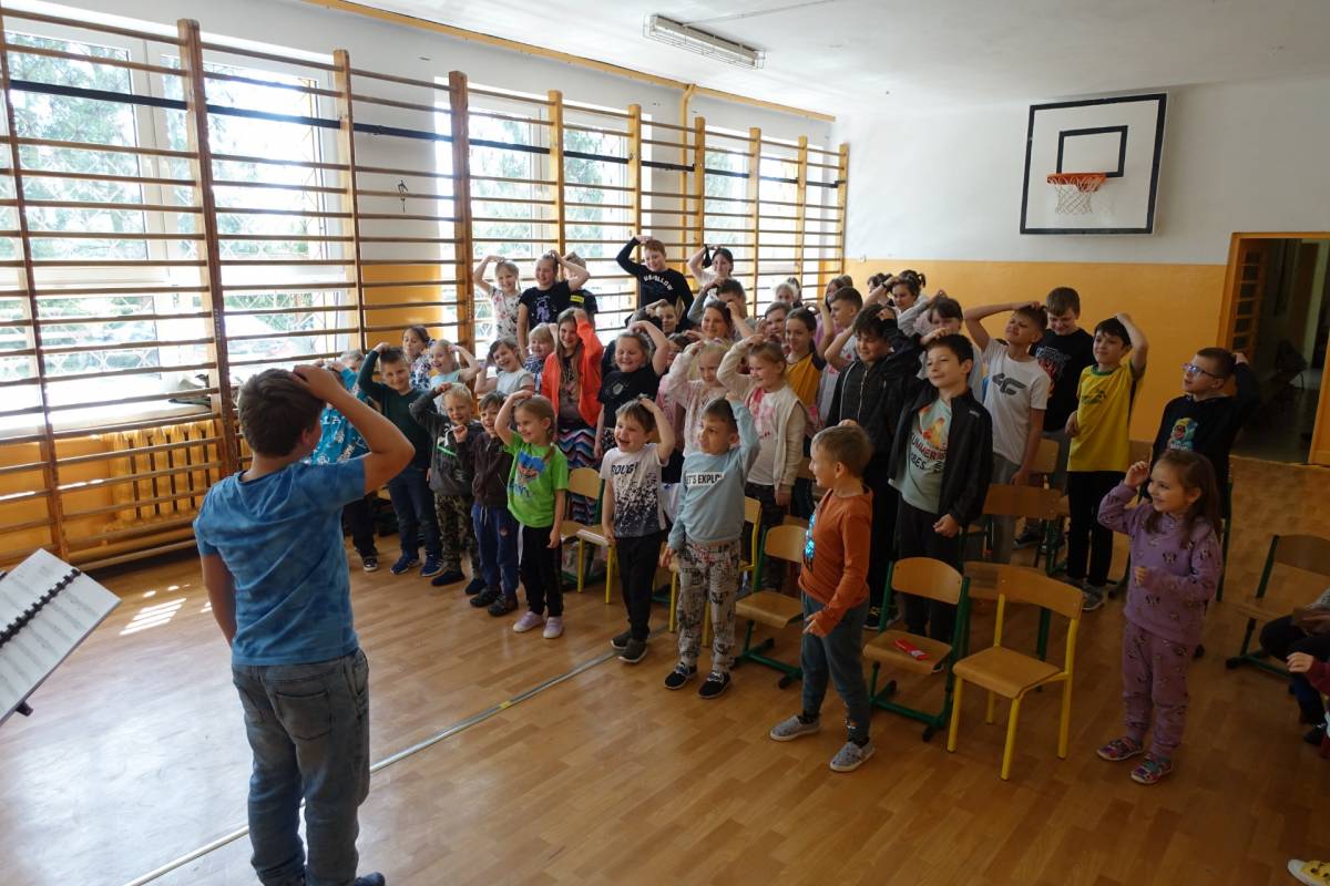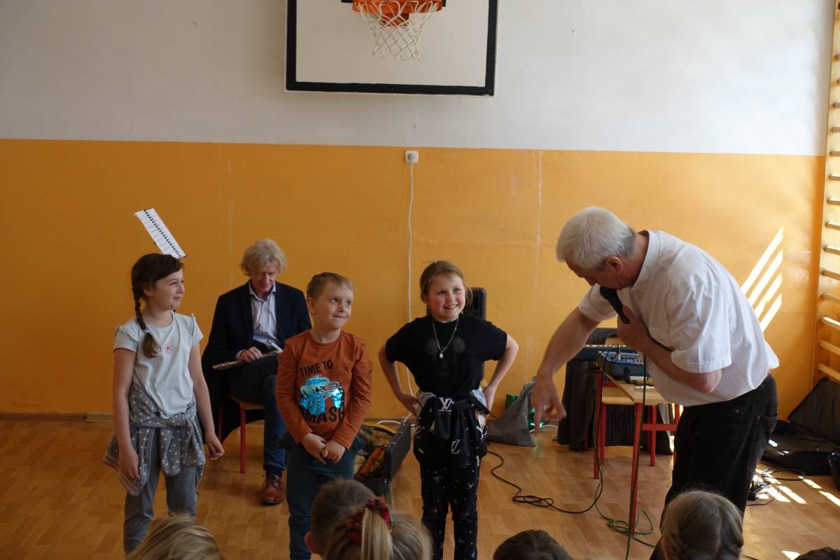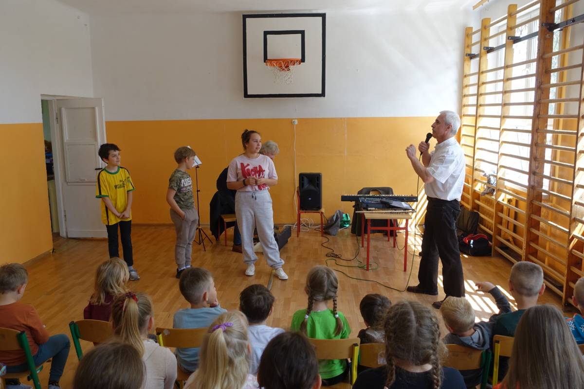 W poniedziałek 8 maja uczniowie Szkoły Podstawowej w Krzemieniewicach uczestniczyli w kolejnej lekcji muzyki przygotowanej przez pana Hanusza Kowalczyka i jego gościa- pana Marka Kubisiaka. Tym razem tematem spotkania było „100 lat Disneya”.